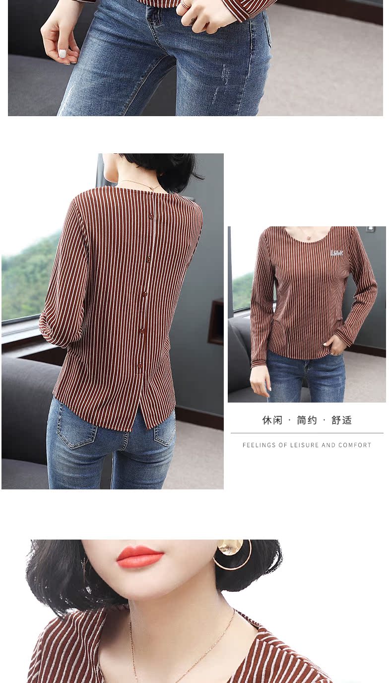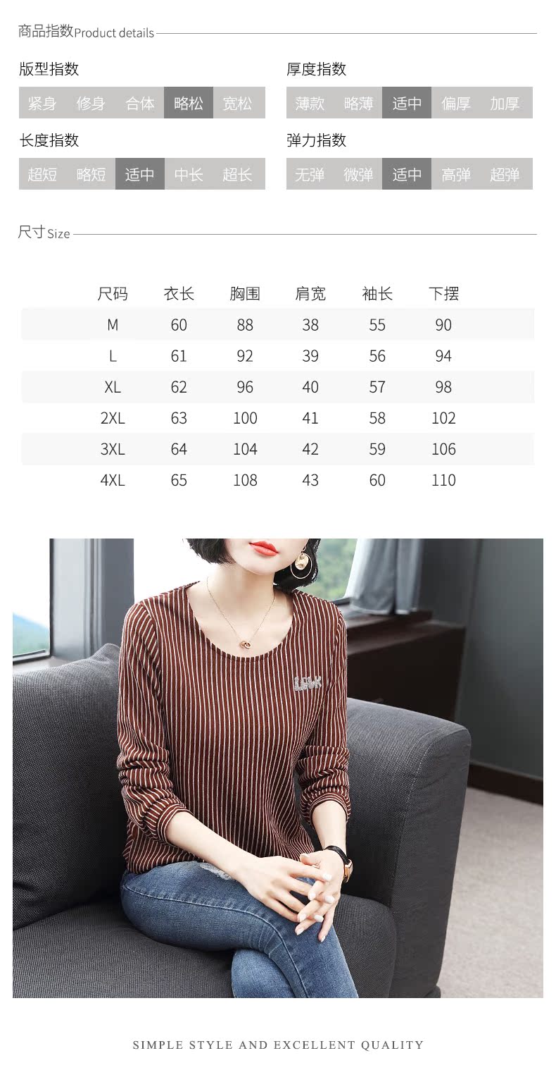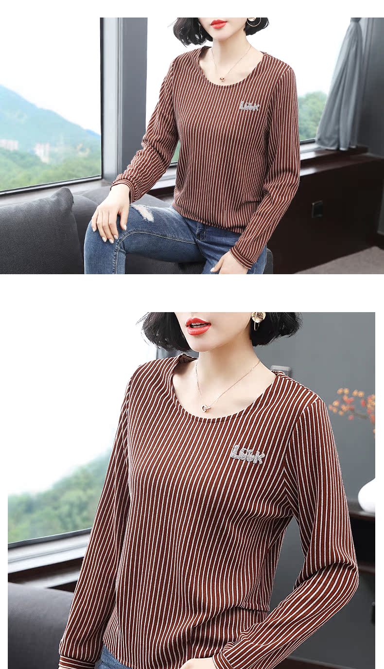 2019新款春裝女裝豎條紋t恤女長袖圓領大碼體恤小衫上衣打底衫潮