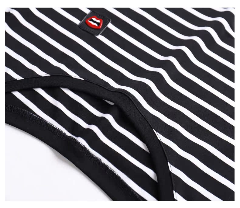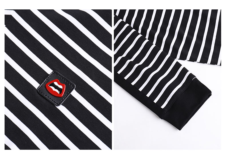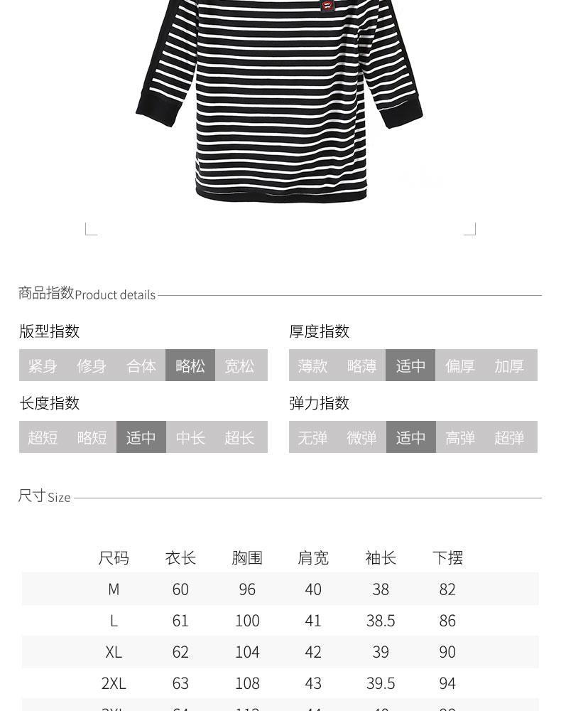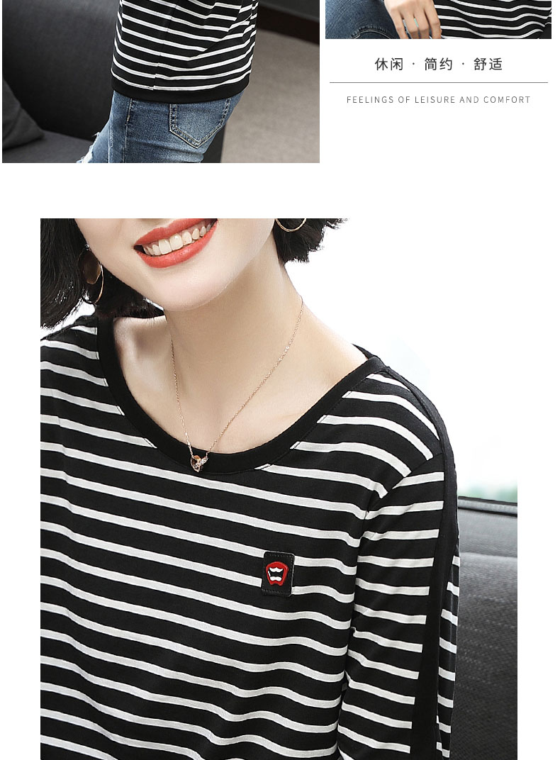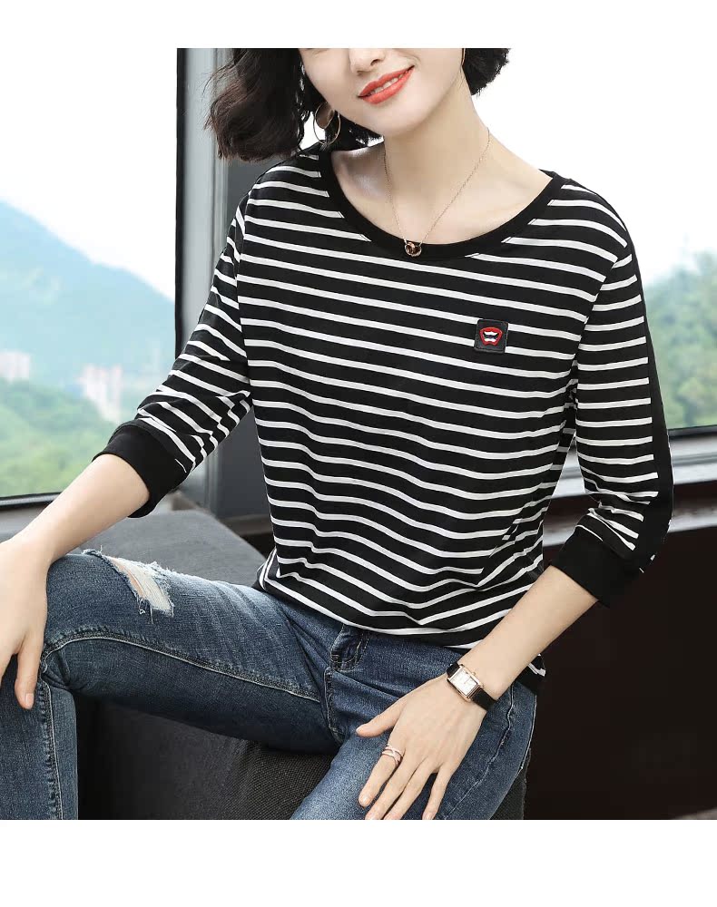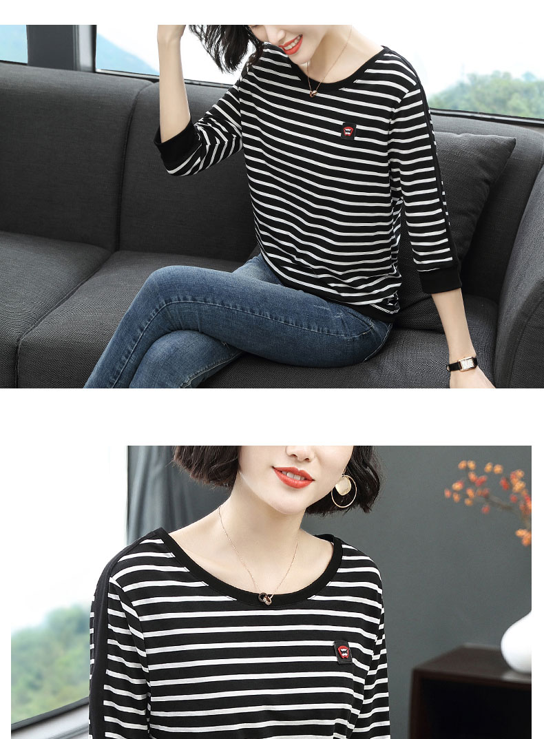 2019新款女裝春裝七分袖t恤女韓版黑白條紋打底衫寬松上衣小衫潮