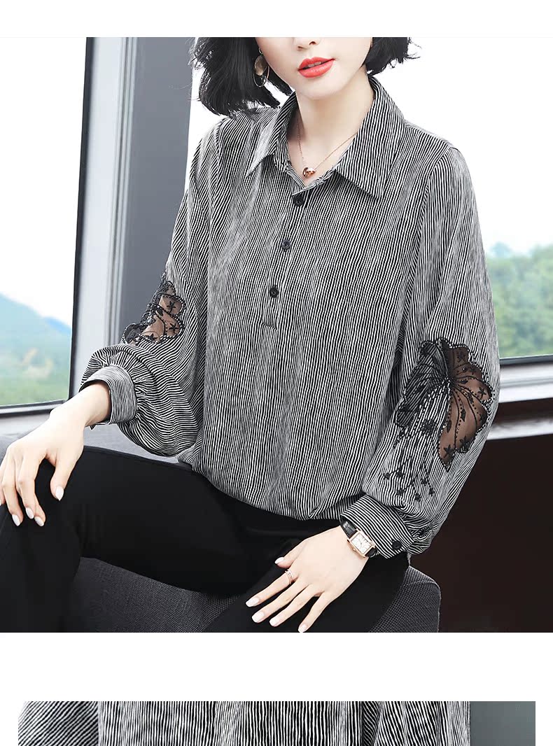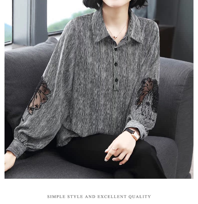 2019春裝新款條紋襯衫女設計感小眾長袖韓版寬松燈籠袖大碼上衣潮