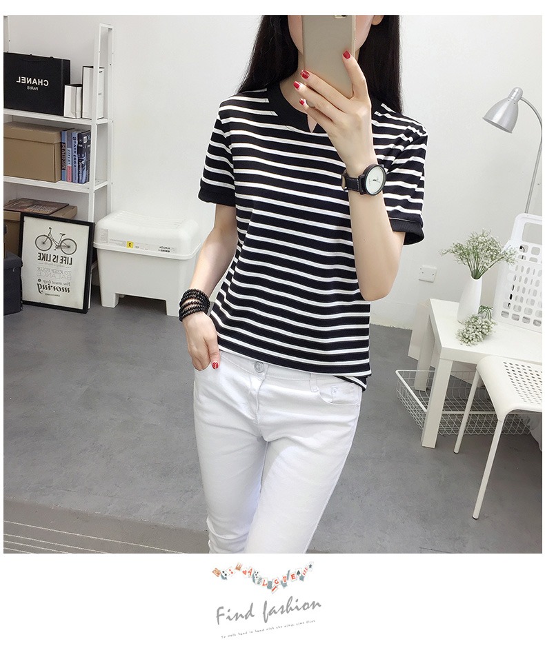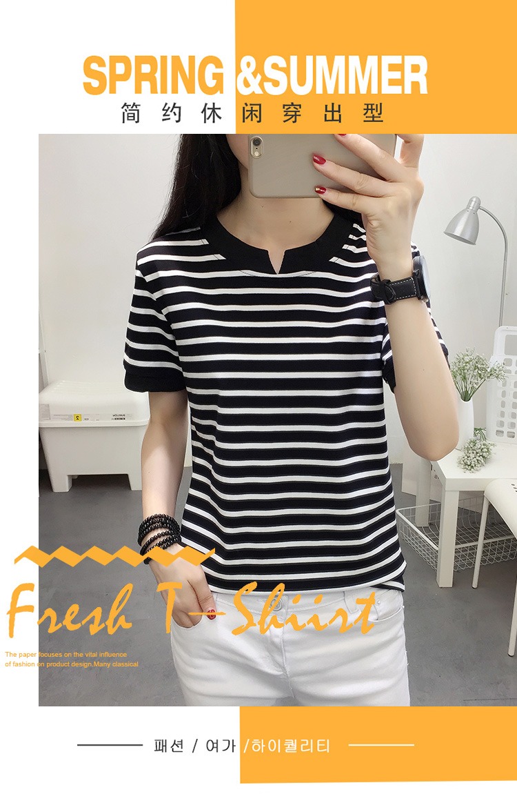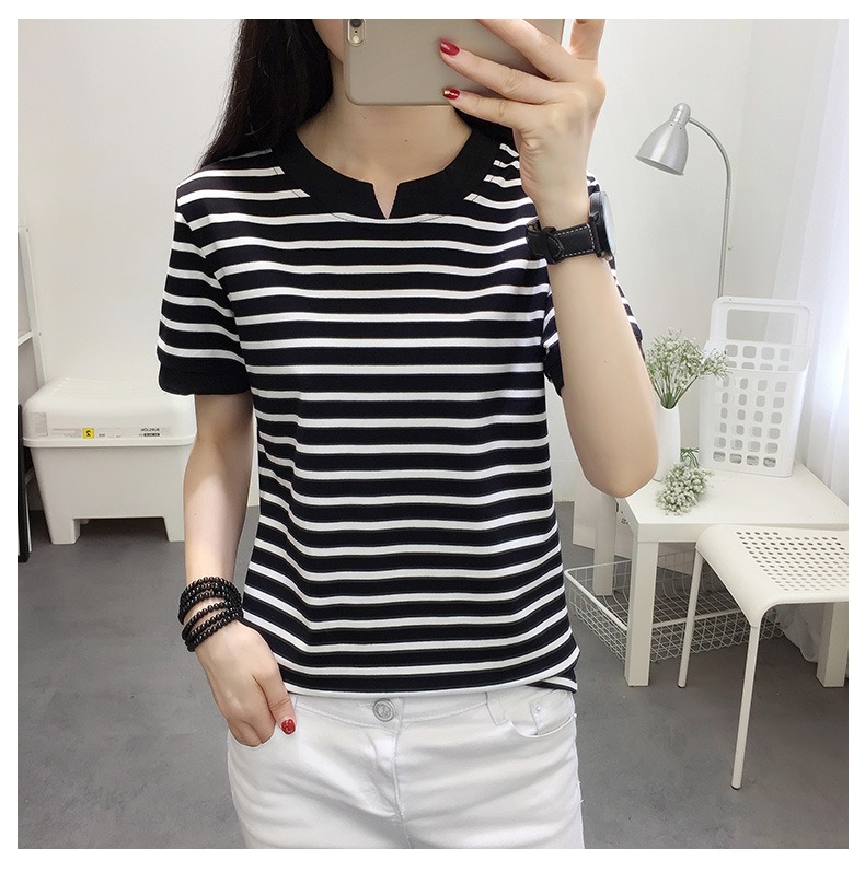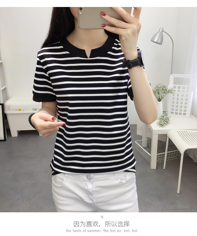 2019夏裝新款韓版大碼女裝條紋t恤女短袖寬松ins潮純棉胖mm上衣服