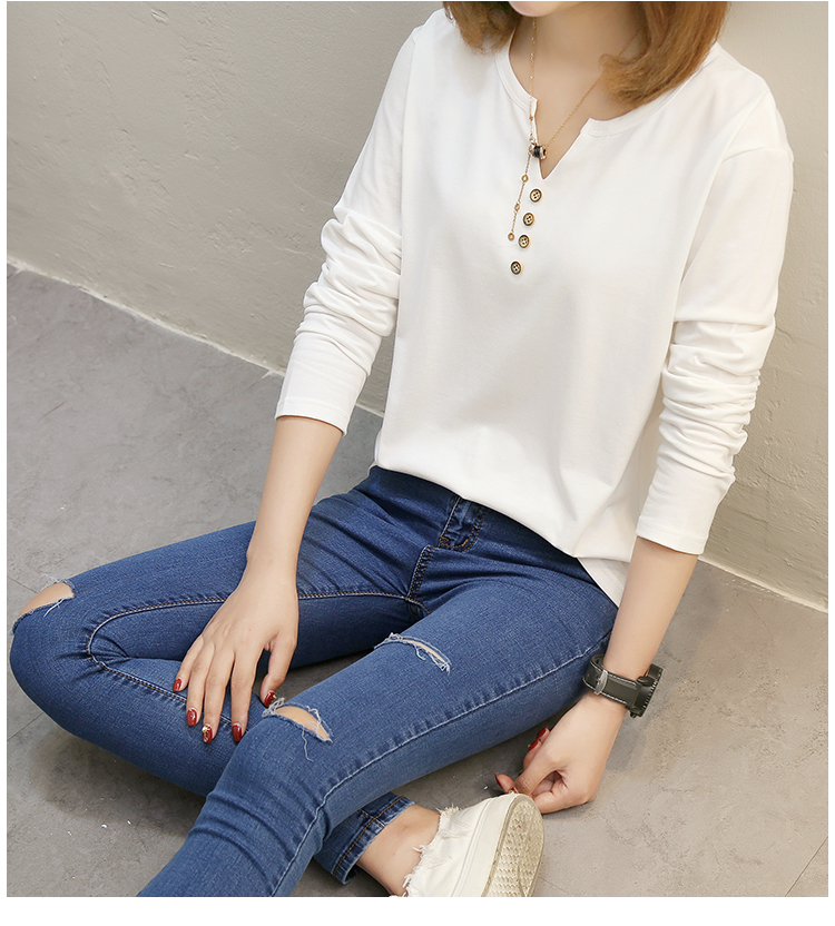 2019春裝新款打底衫長袖T恤寬松?加肥大碼女裝胖mm韓版百搭上衣