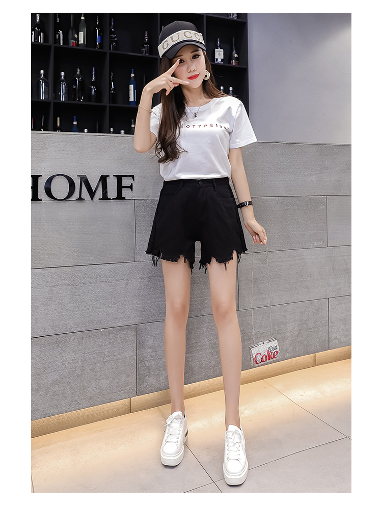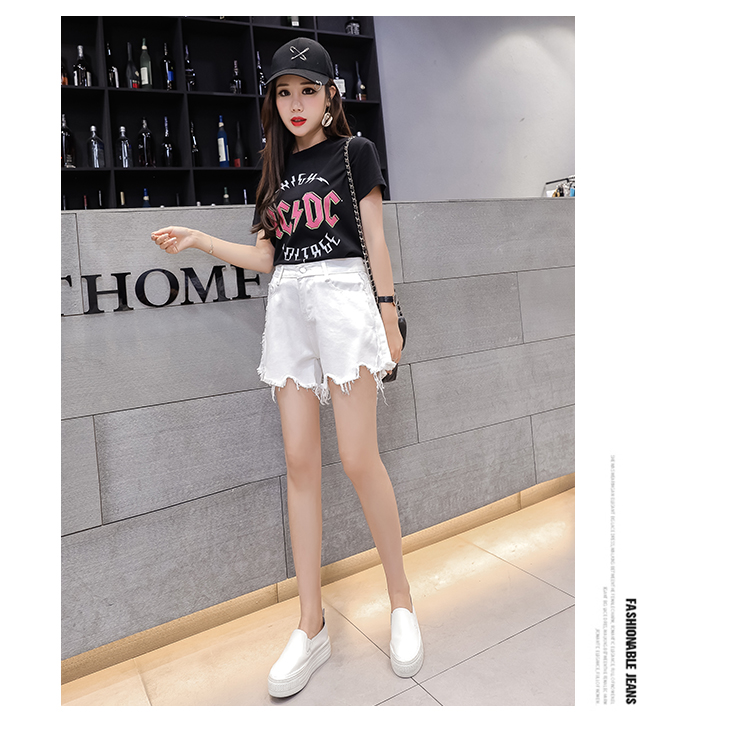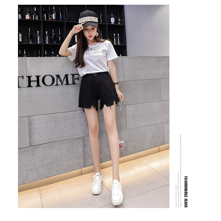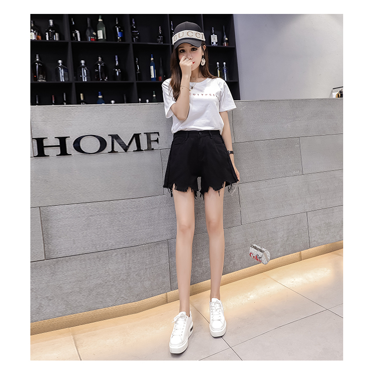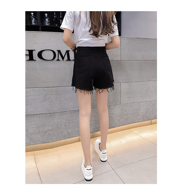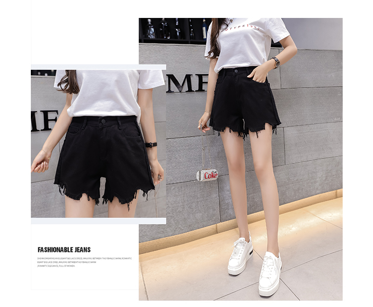 高腰牛仔短褲女夏2019新款韓版寬松學生百搭大碼胖mm破洞闊腿褲子