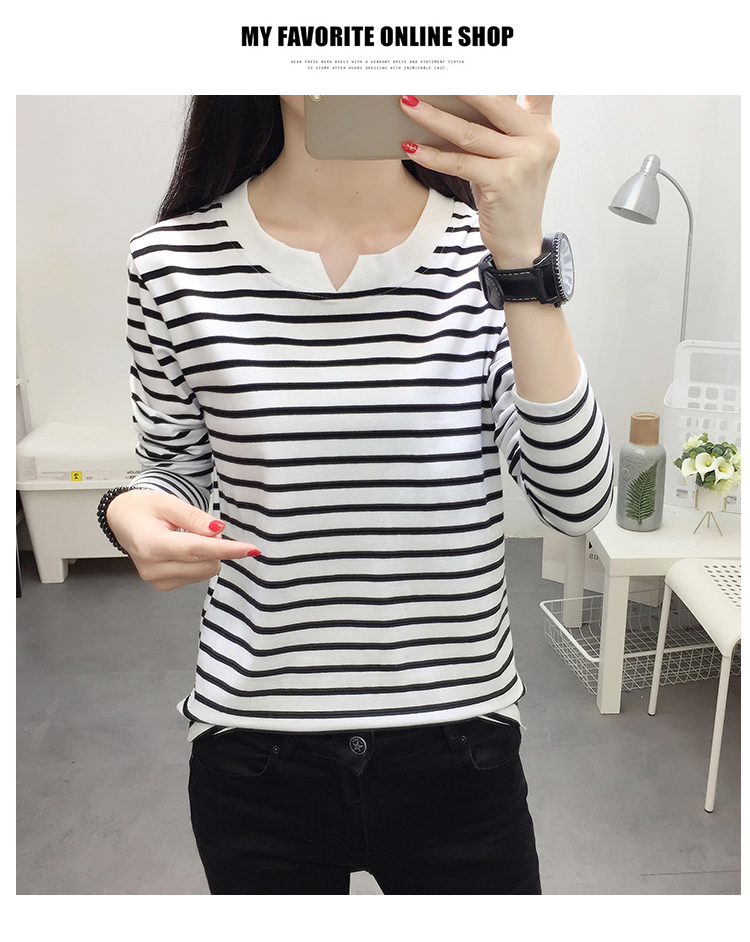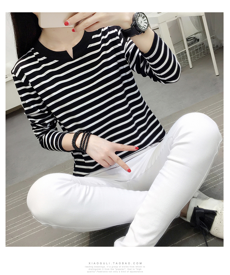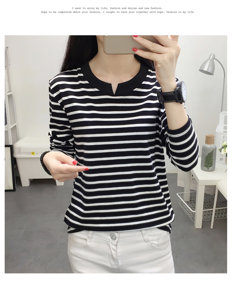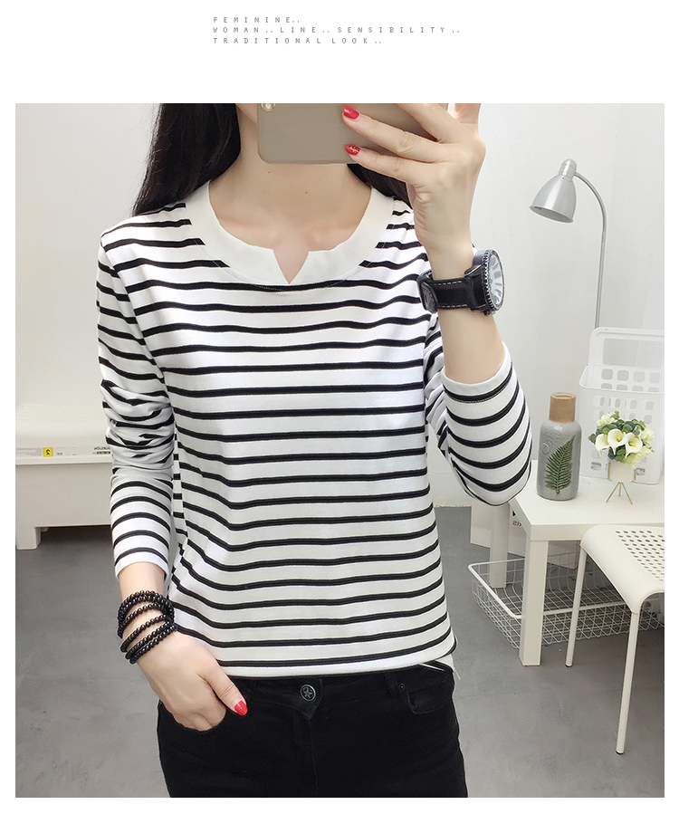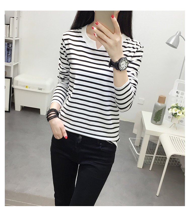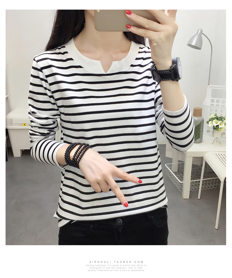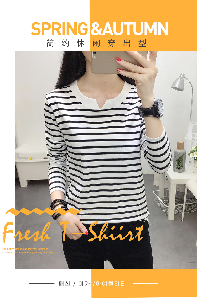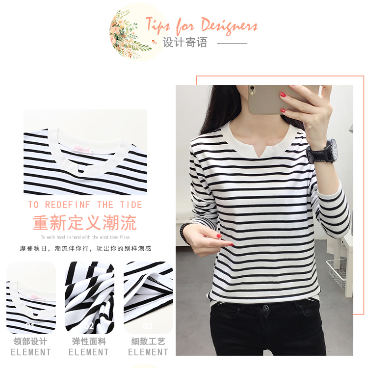 2019春裝新款大碼長袖t恤女寬松韓版ins??百搭條紋很仙的上衣潮
