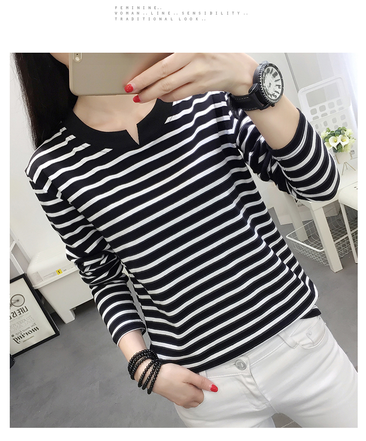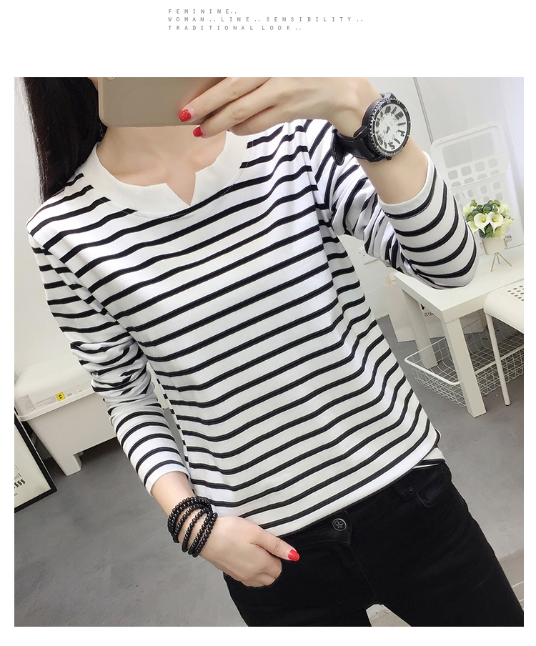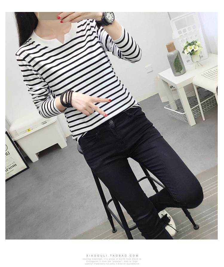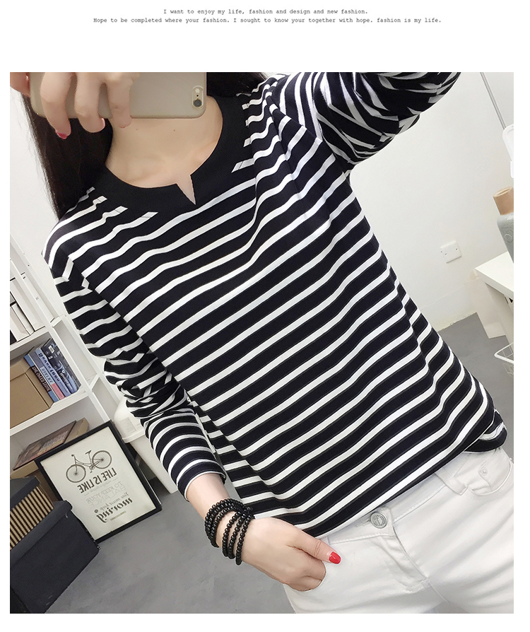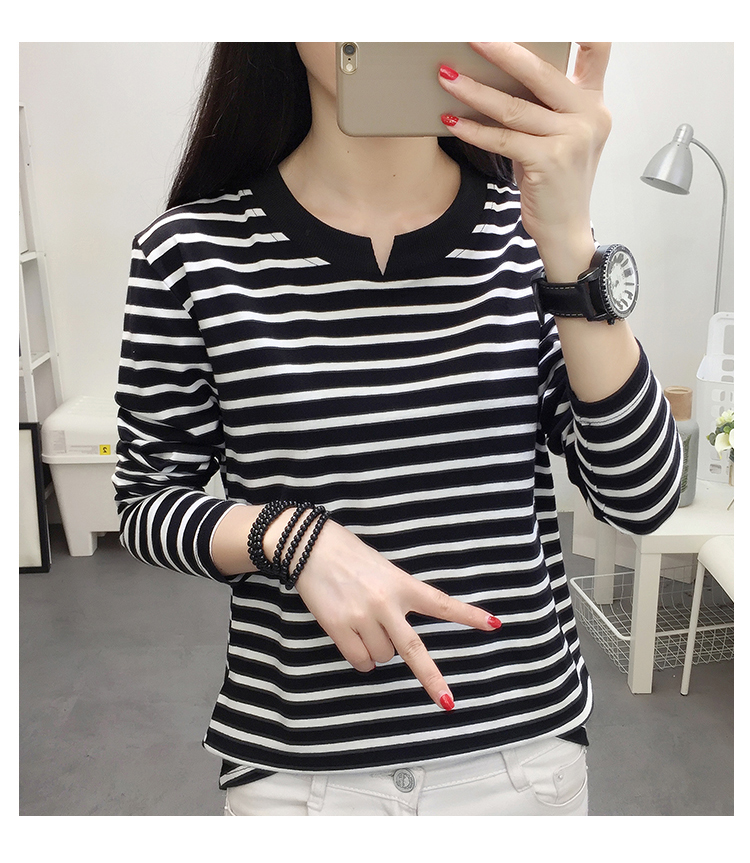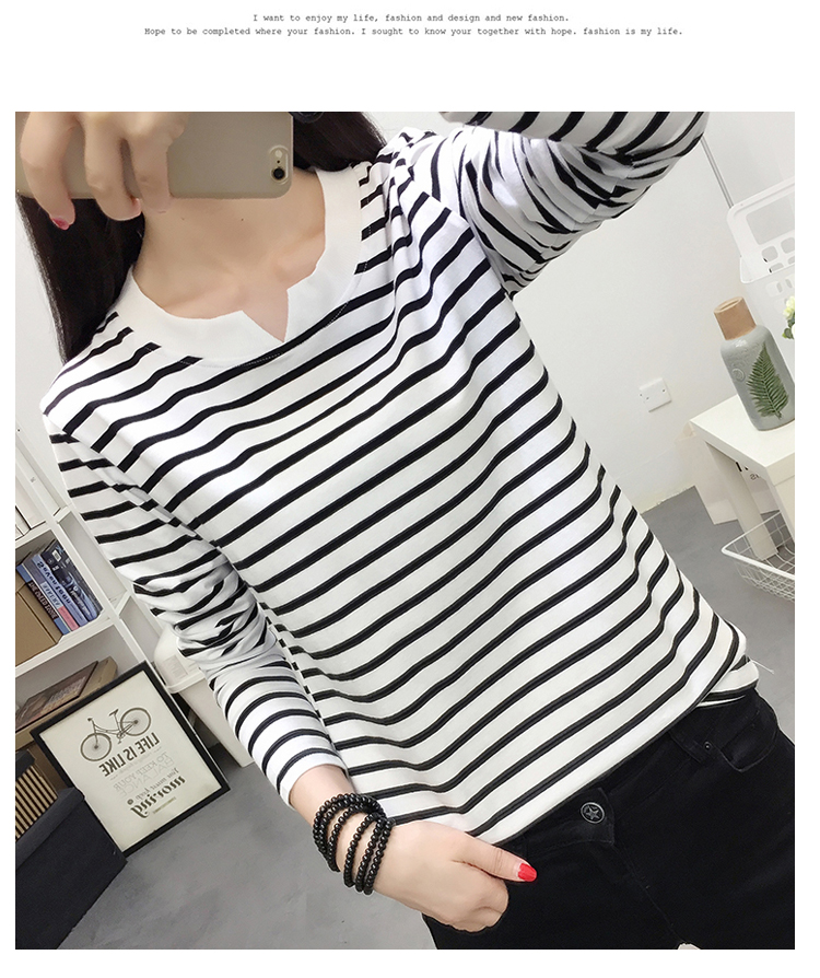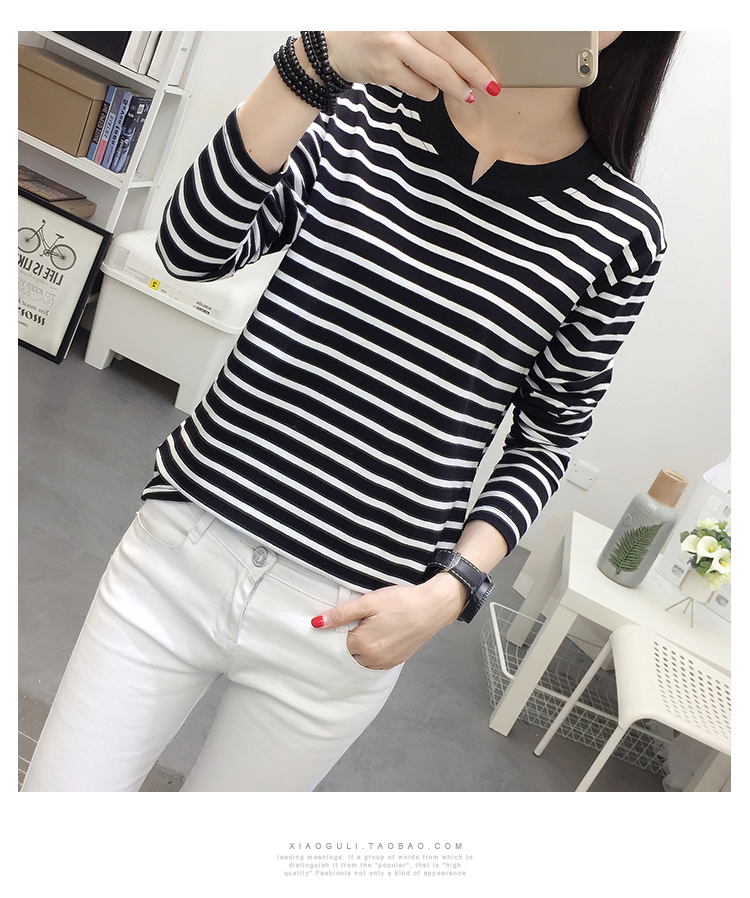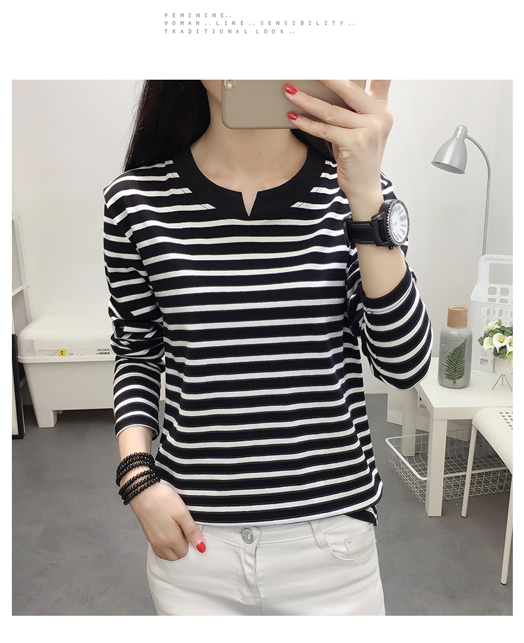 2019春裝新款大碼長袖t恤女寬松韓版ins??百搭條紋很仙的上衣潮