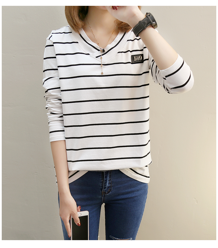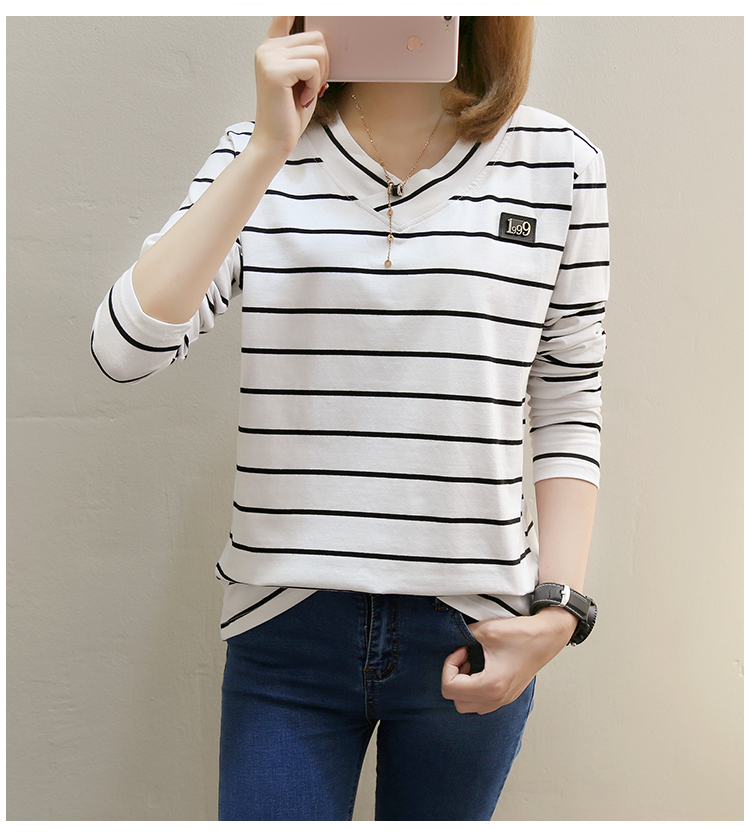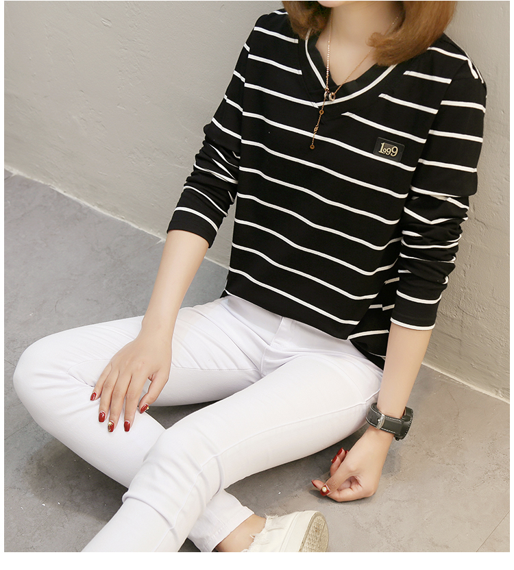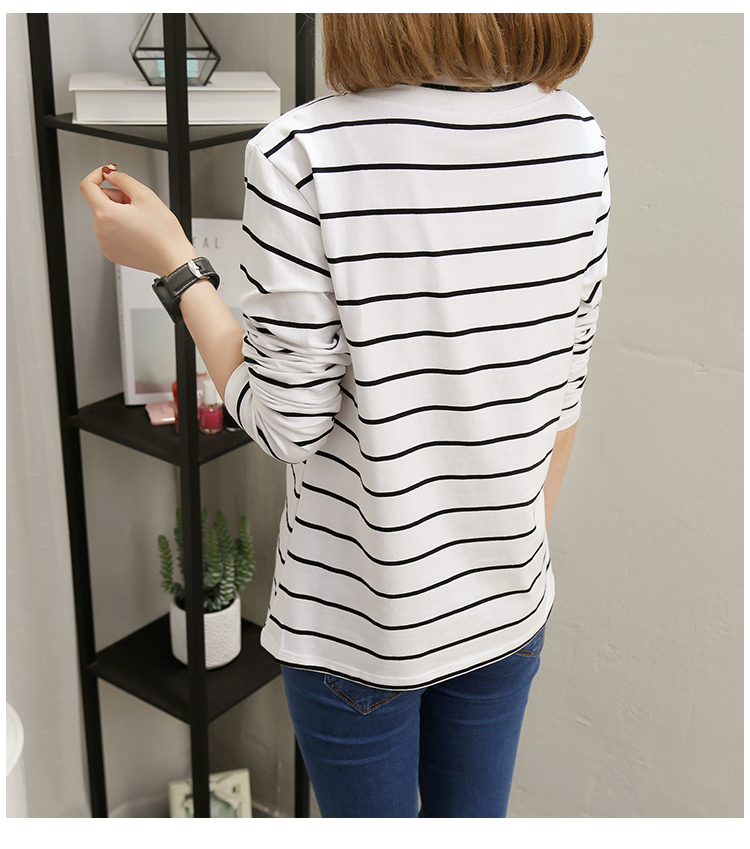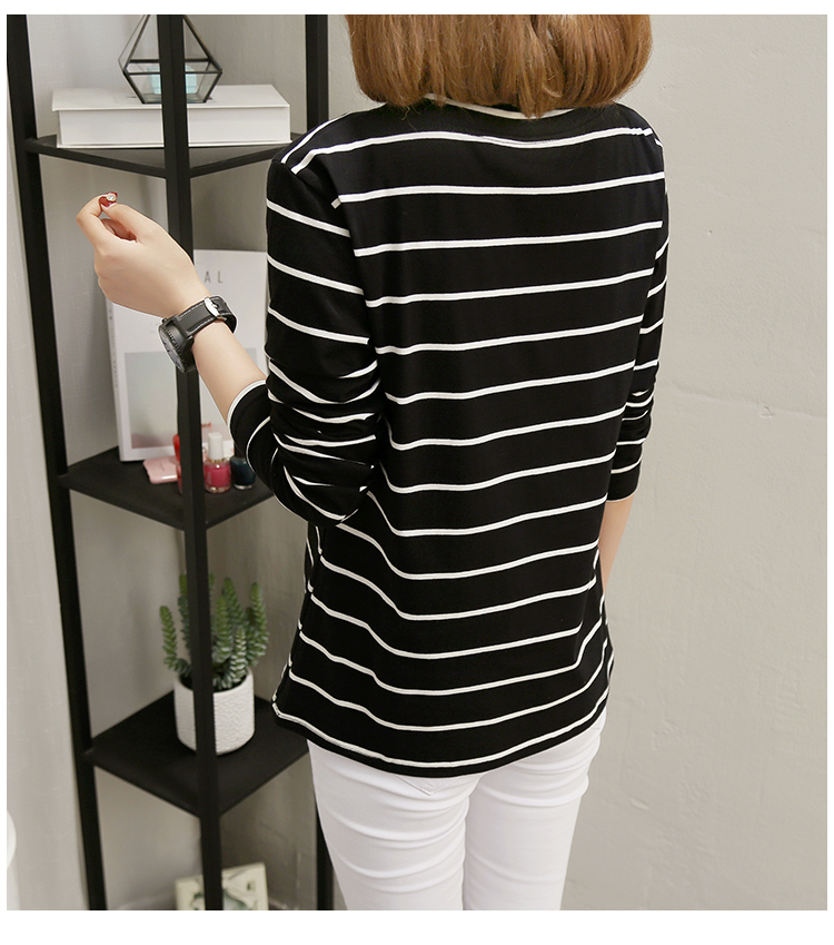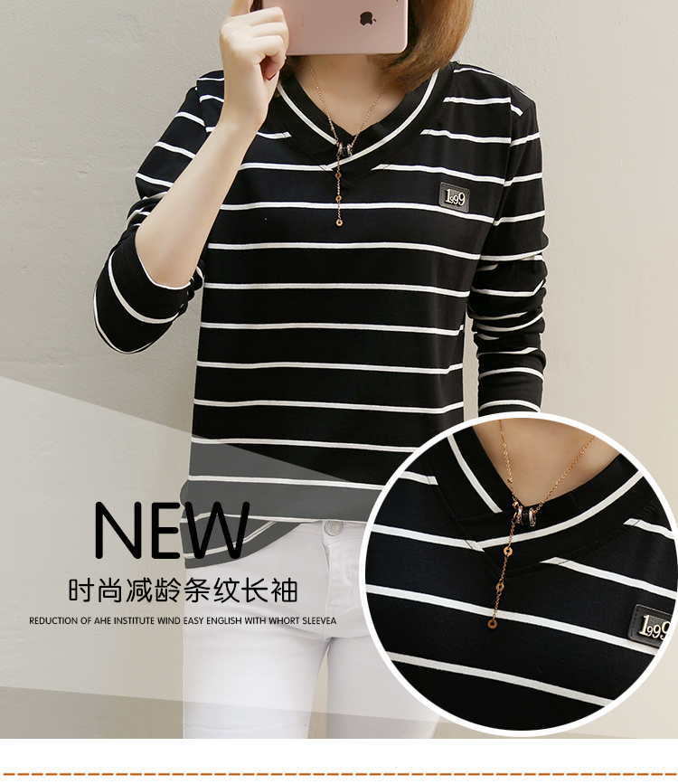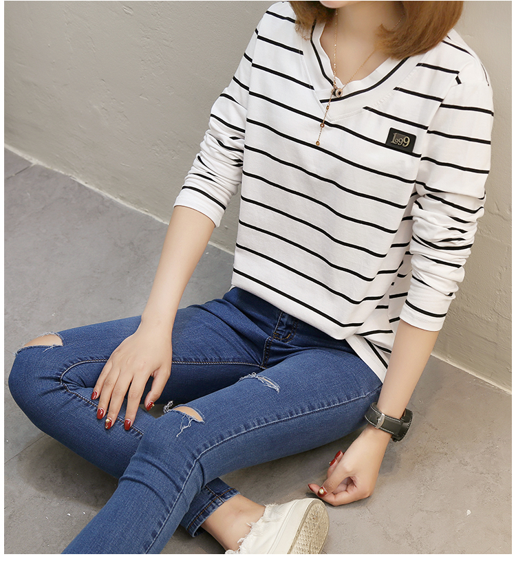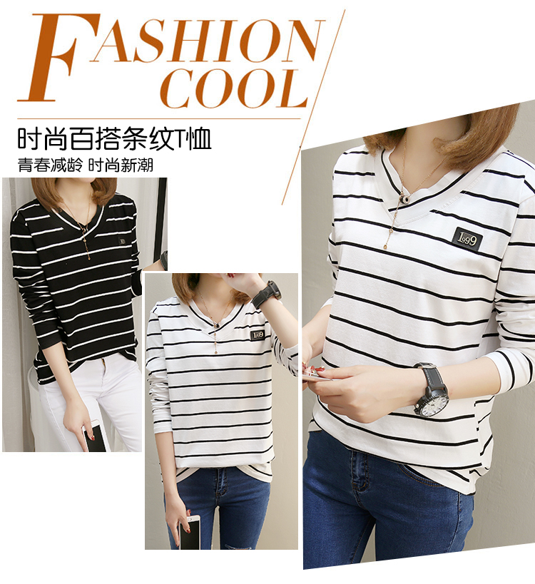 2019春裝新款條紋寬松長袖T恤女裝韓版秋衣外穿上衣打底衫??潮