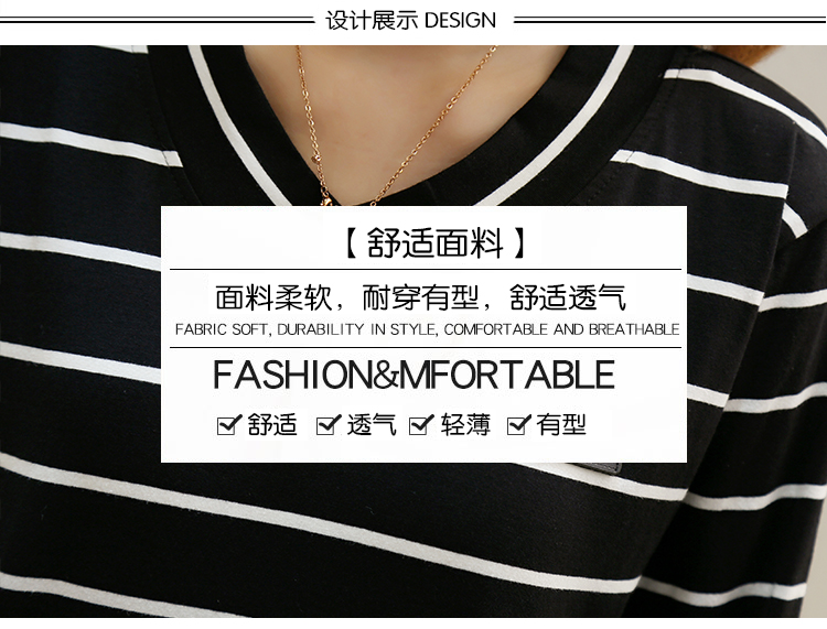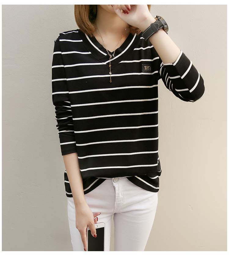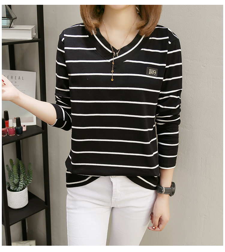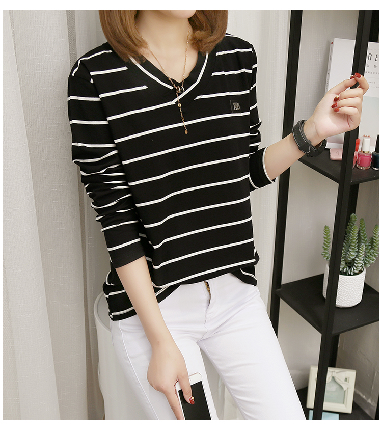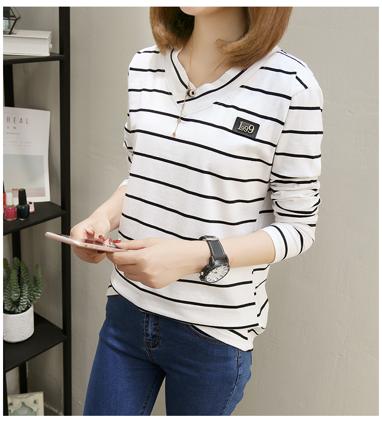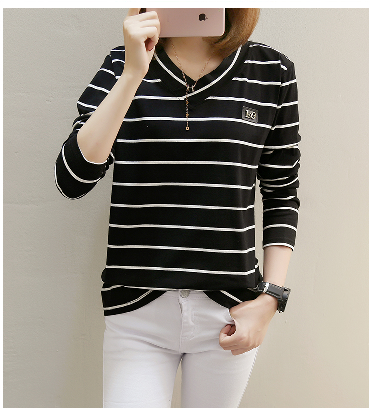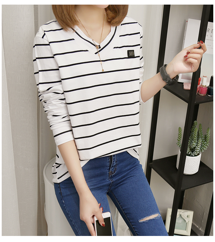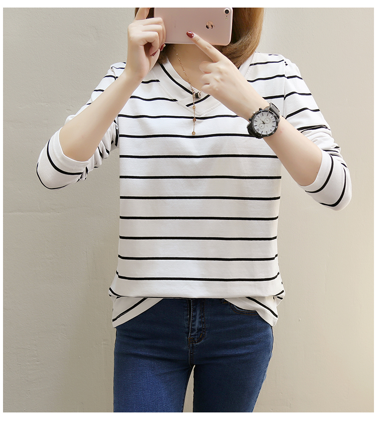 2019春裝新款條紋寬松長袖T恤女裝韓版秋衣外穿上衣打底衫??潮