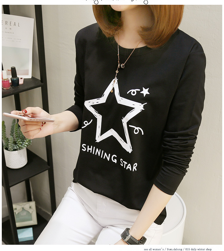 2019春裝新款秋衣女外穿長袖t恤女士寬松打底衫?潮女秋季上衣服