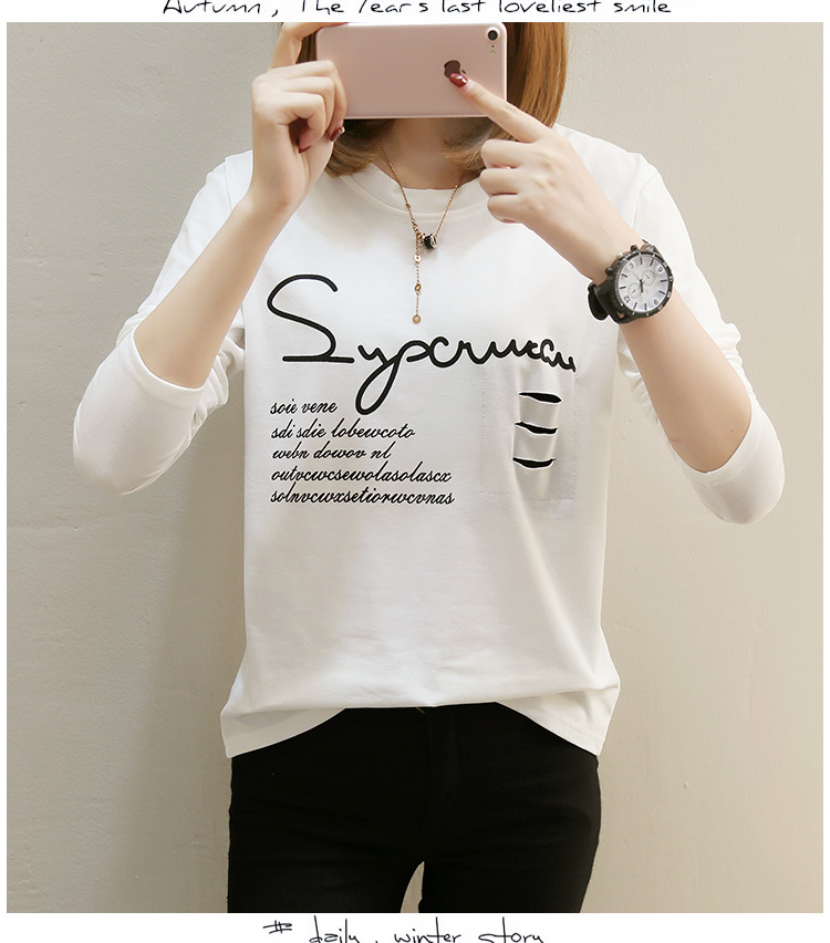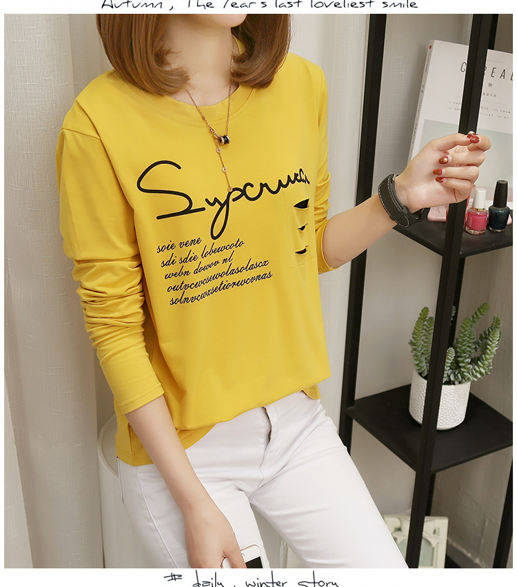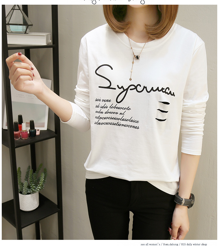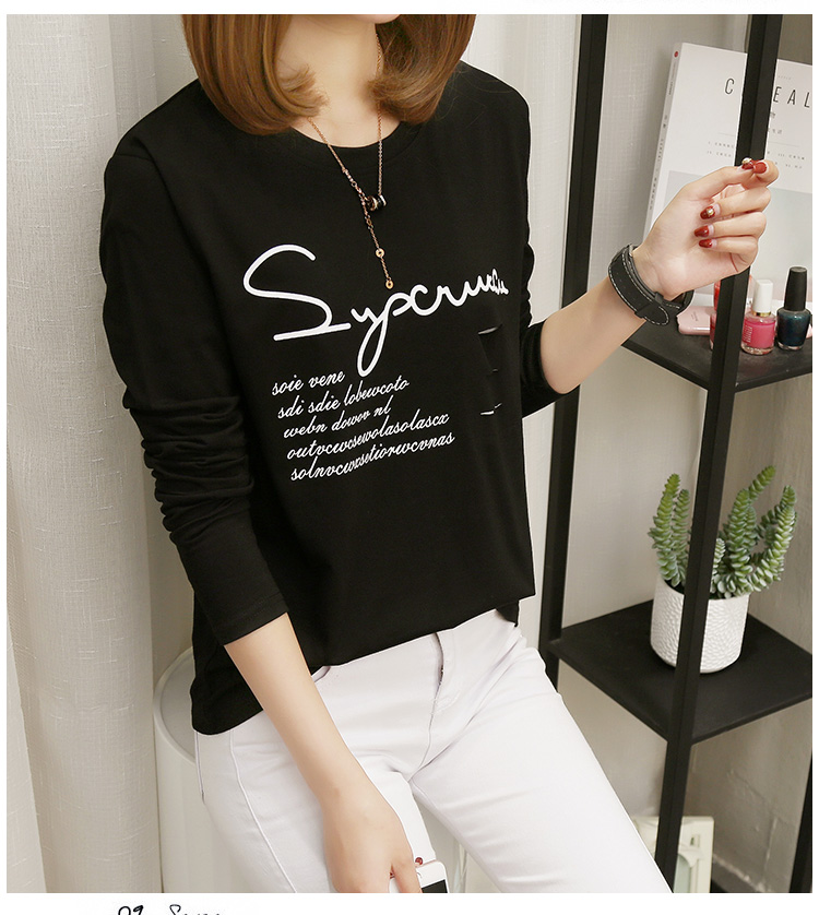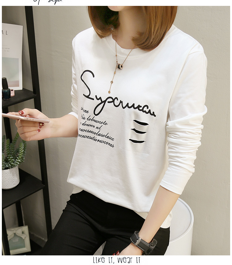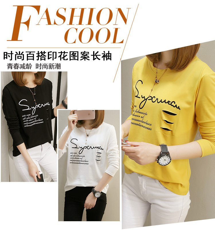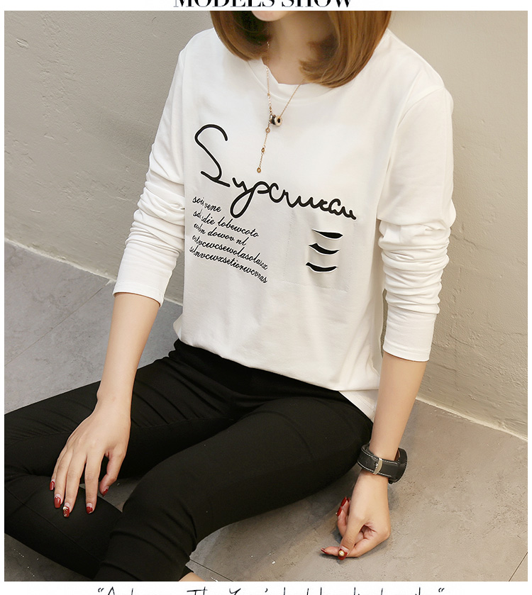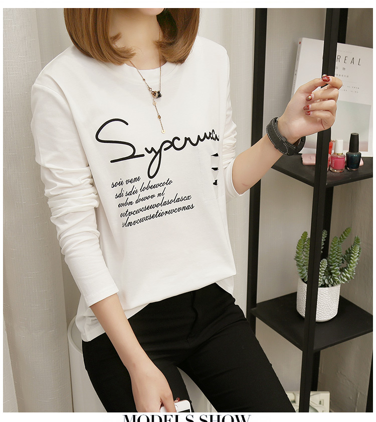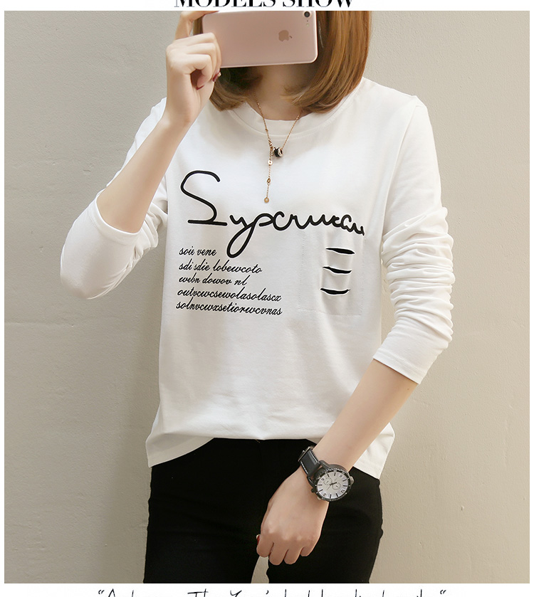 2019春裝新款秋衣外穿t恤女長袖寬松韓版大碼百搭上衣打底衫??