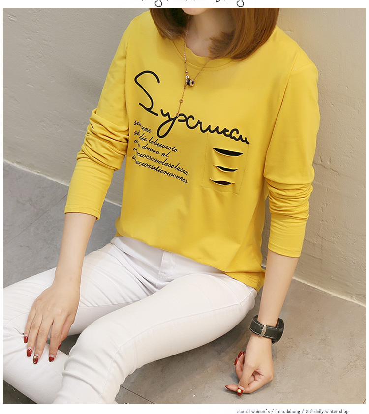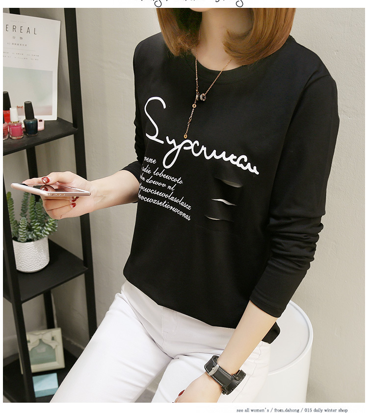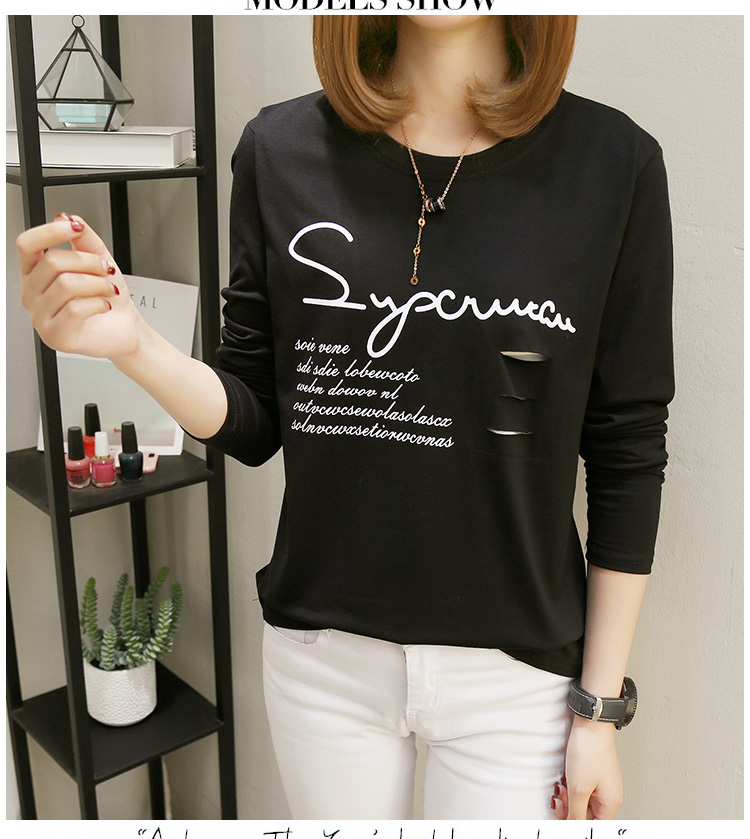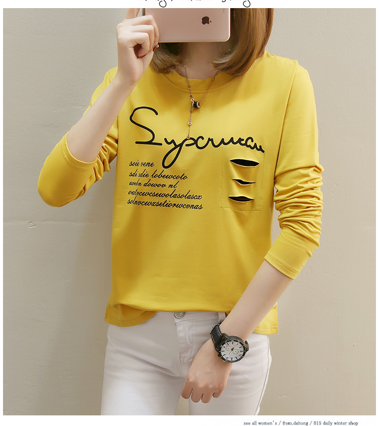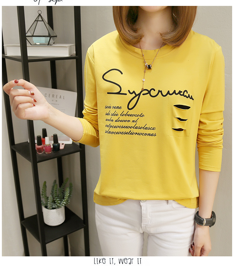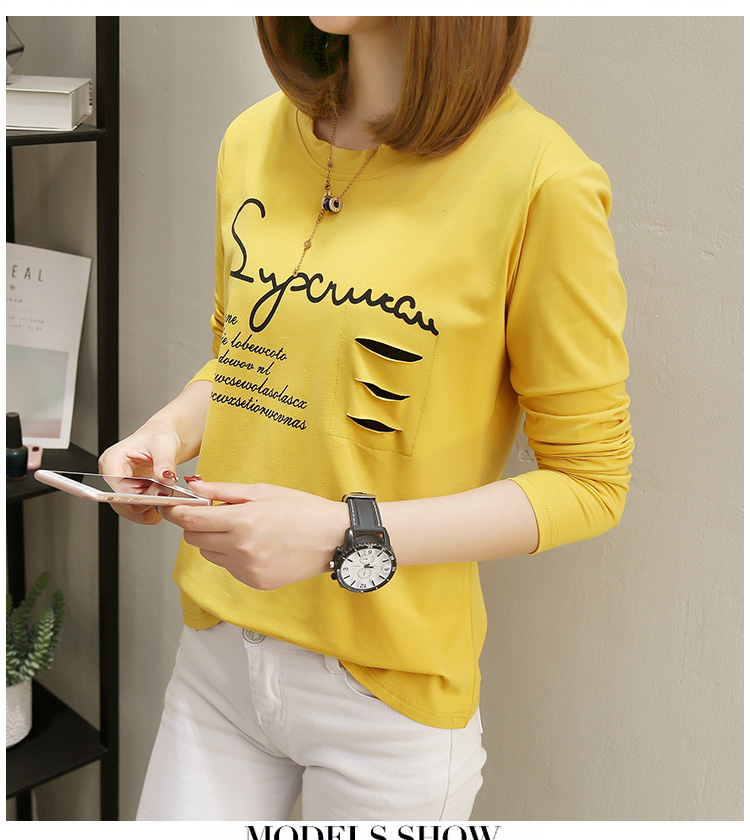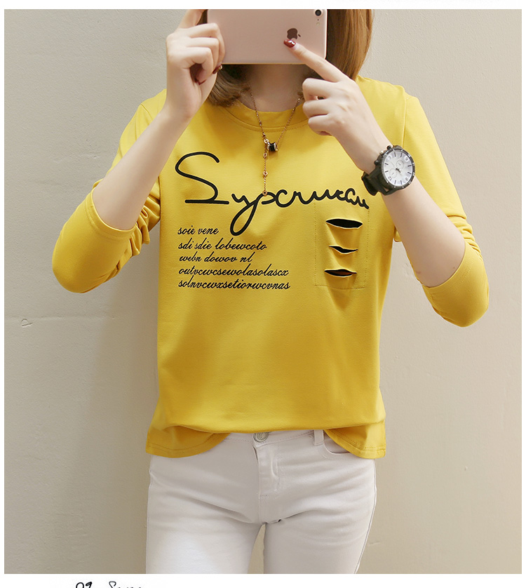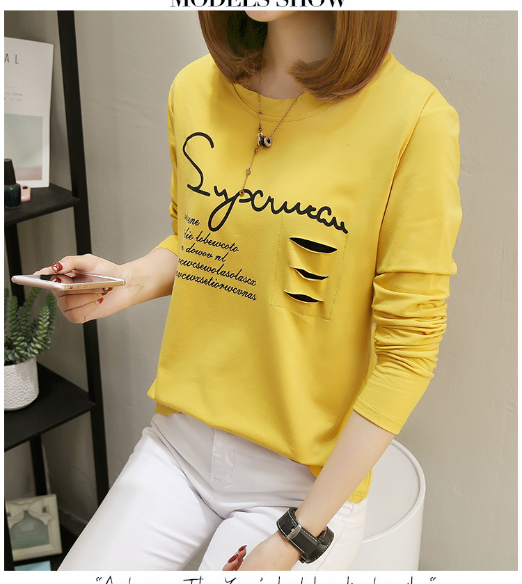 2019春裝新款秋衣外穿t恤女長袖寬松韓版大碼百搭上衣打底衫??
