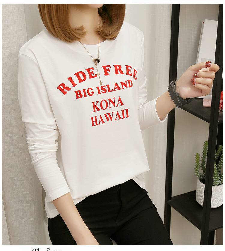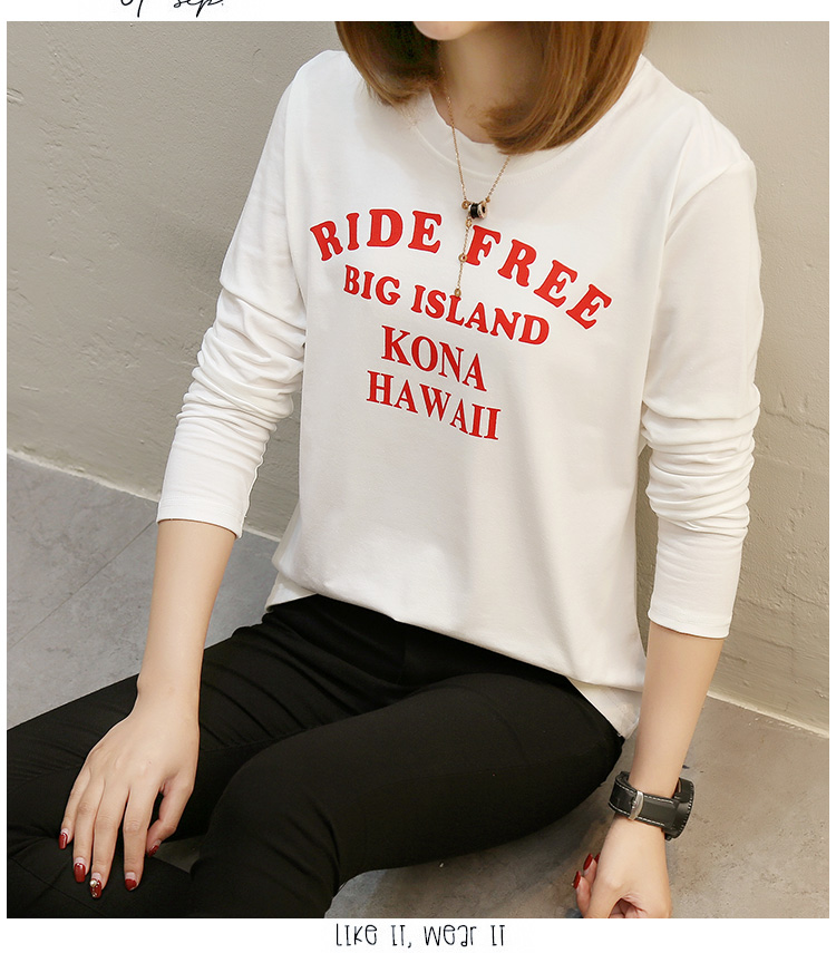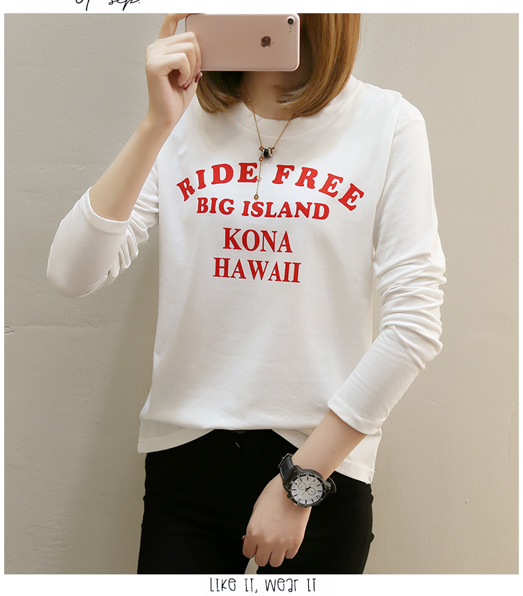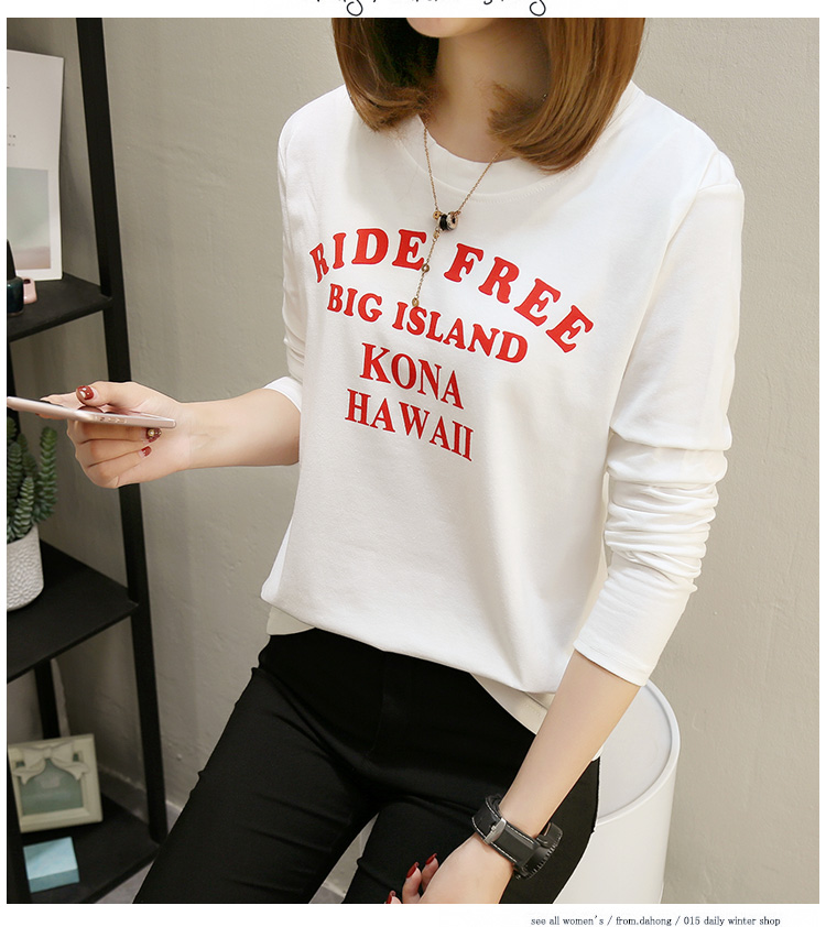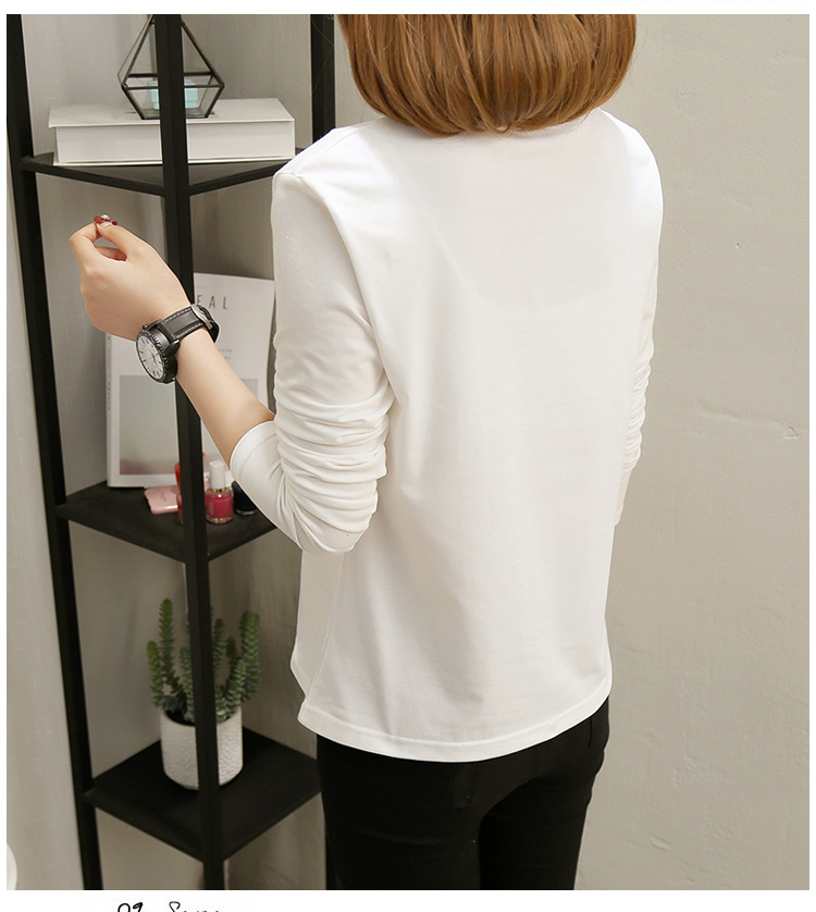 2019春裝新款白色長袖t恤女寬松大碼韓版??上衣秋衣外穿打底衫
