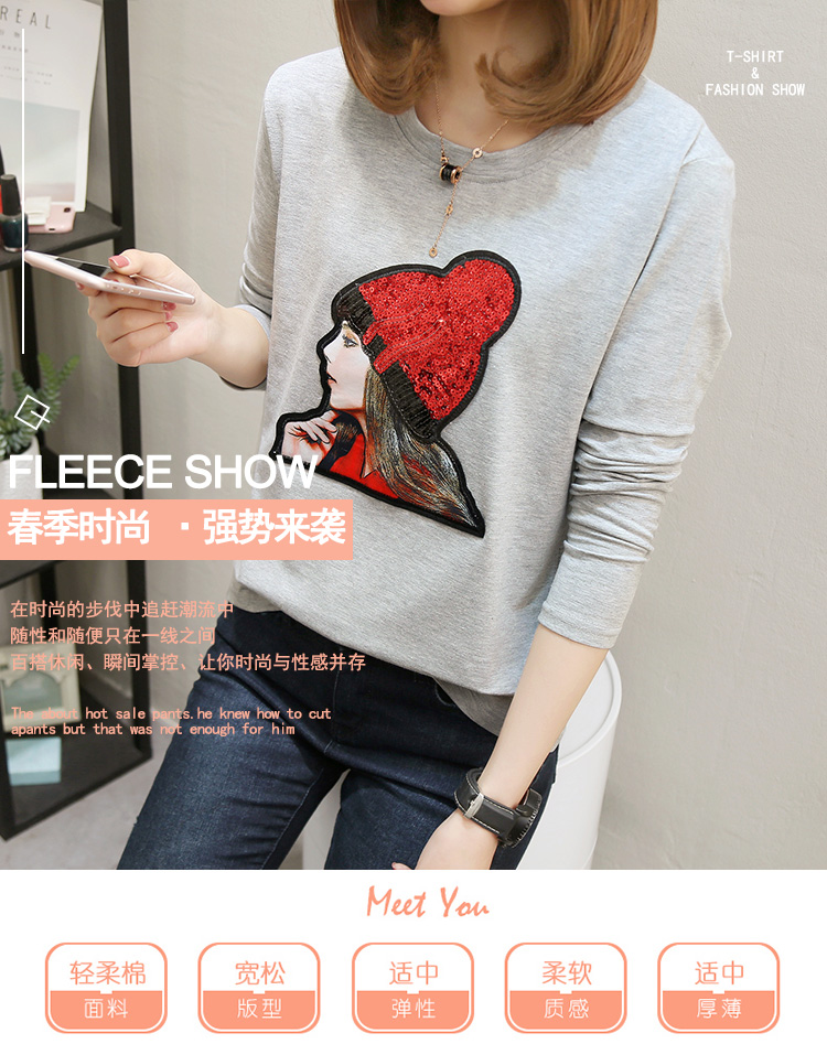 2019新款女裝春裝200斤打底衫韓版百搭加肥大碼?胖mm寬松長袖t恤