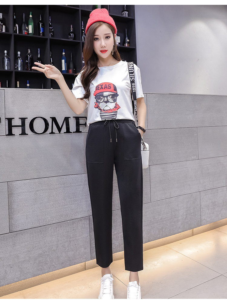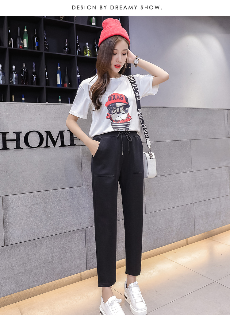 2019胖mm春裝新款韓版大碼200斤闊腳褲子女夏學生寬松ulzzang百搭