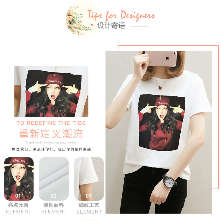 2019夏裝新款加肥加大碼胖mm?白色t恤女短袖學生寬松上衣韓版潮