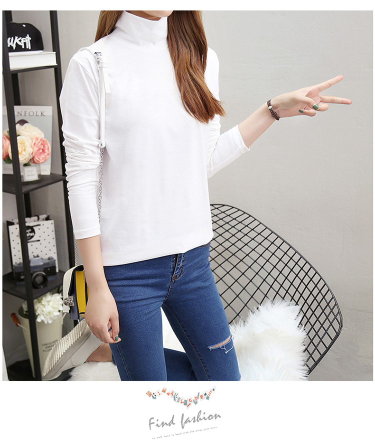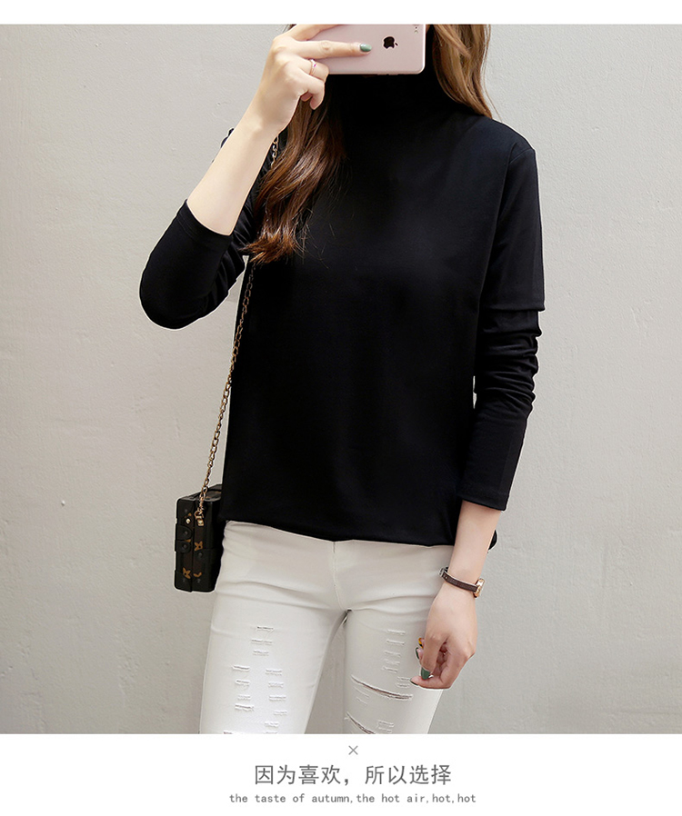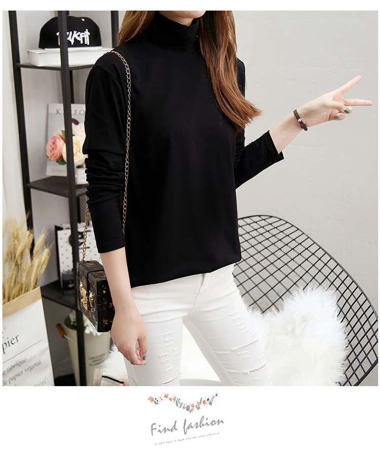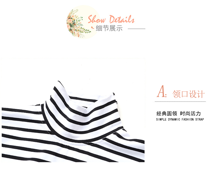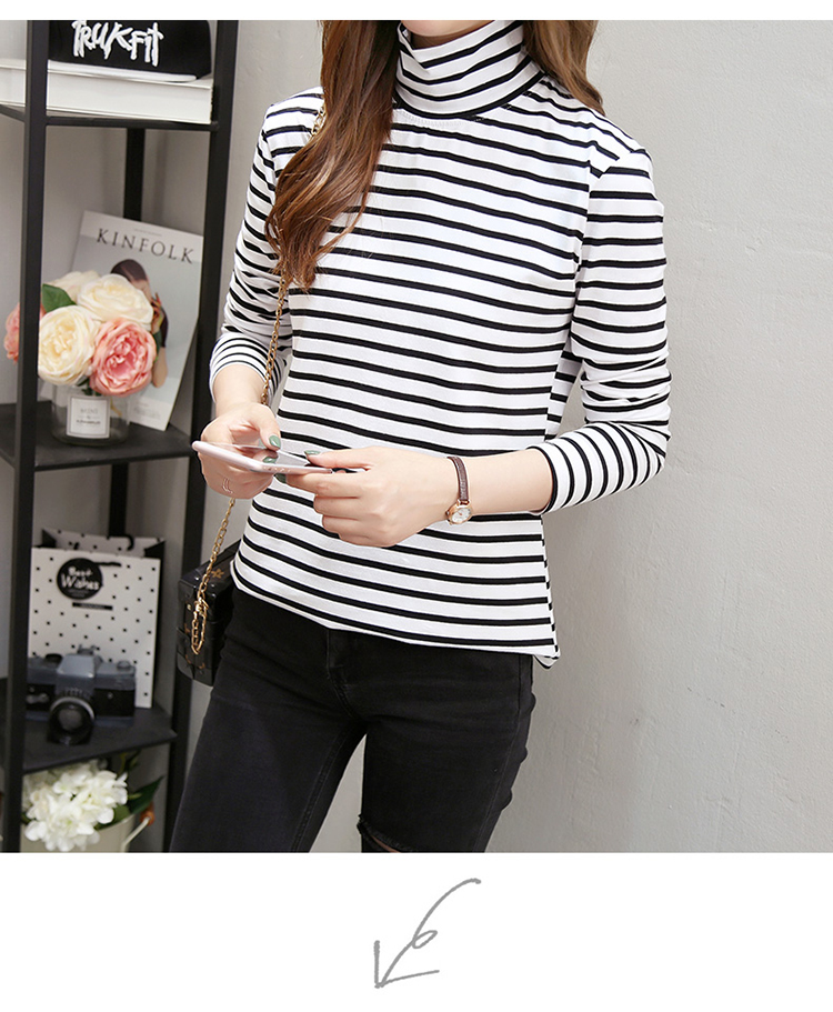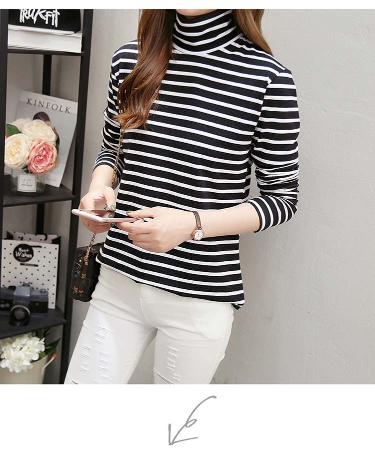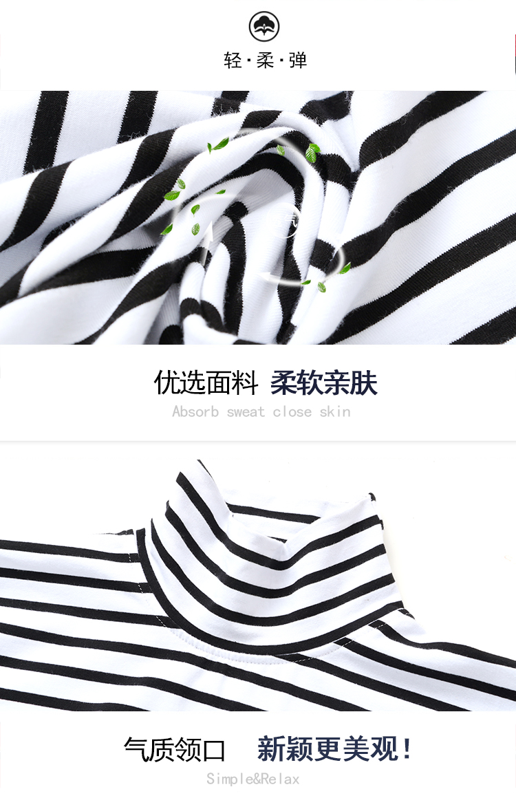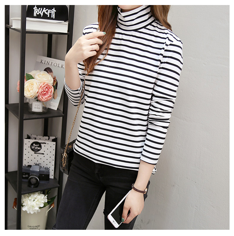 2019春季新款條紋高領打底衫女長袖T恤寬松韓版?加肥大碼上衣服