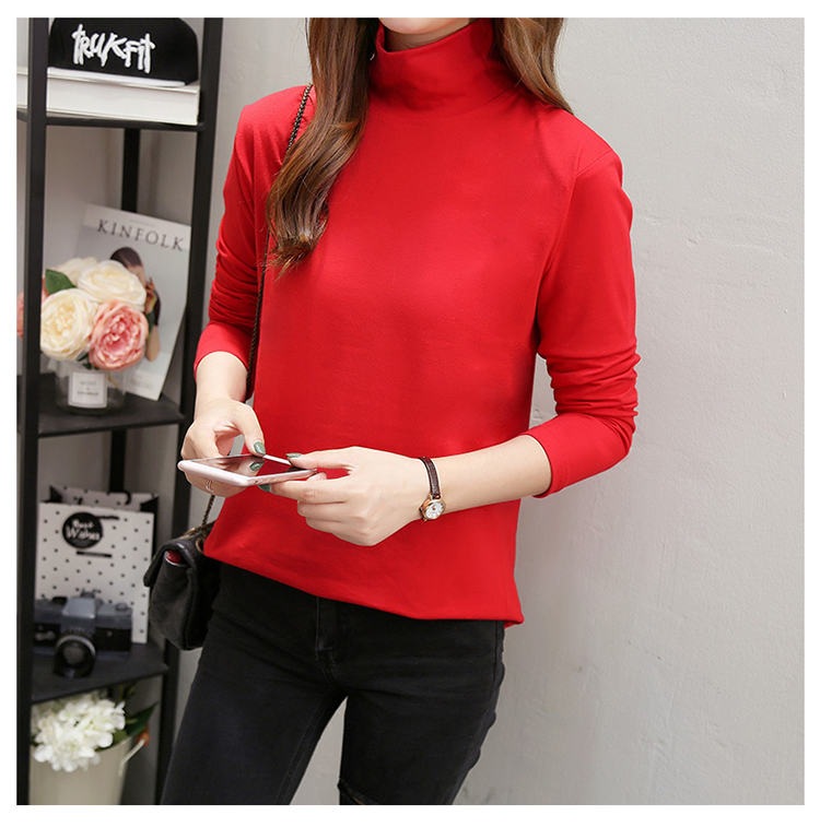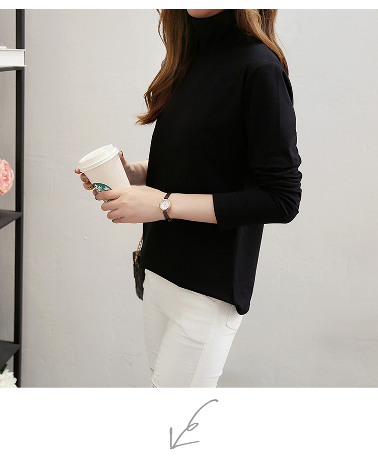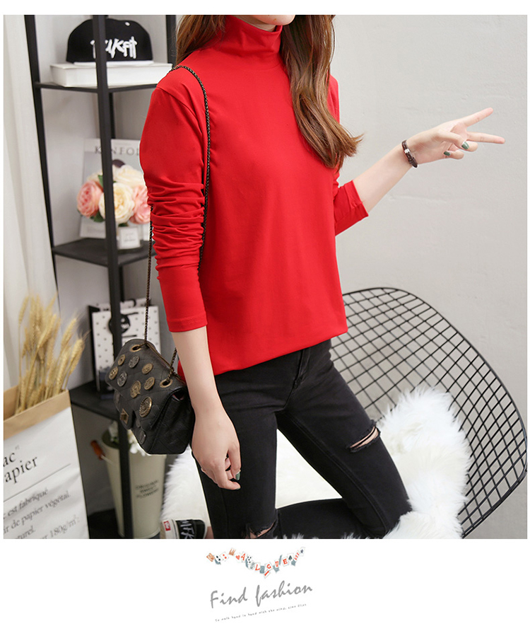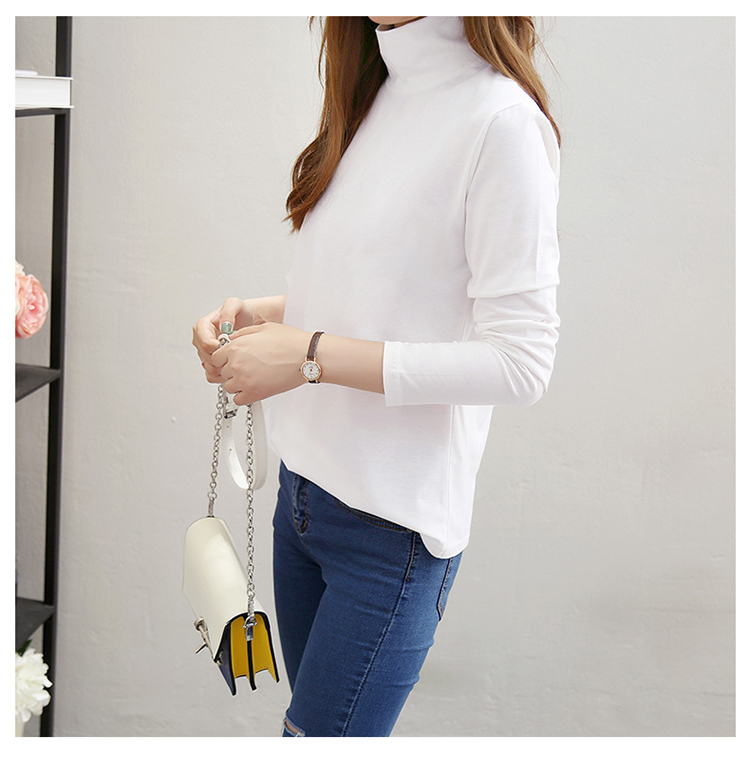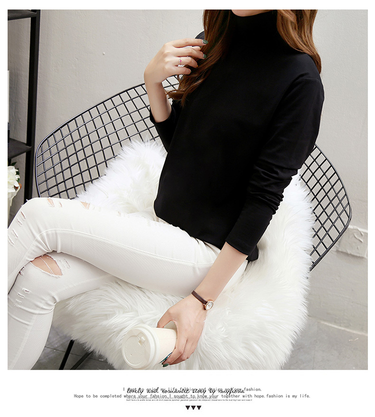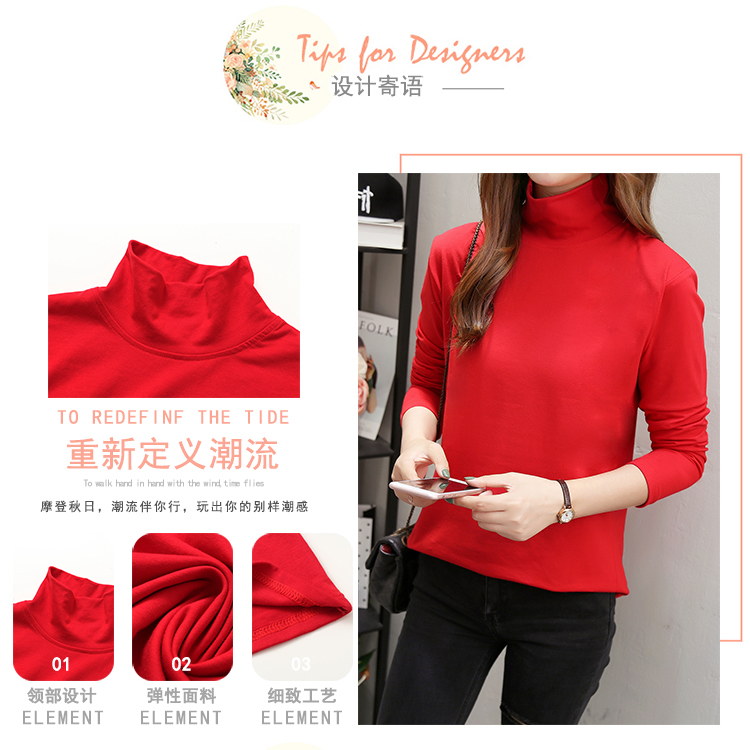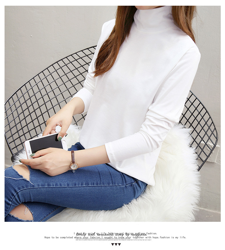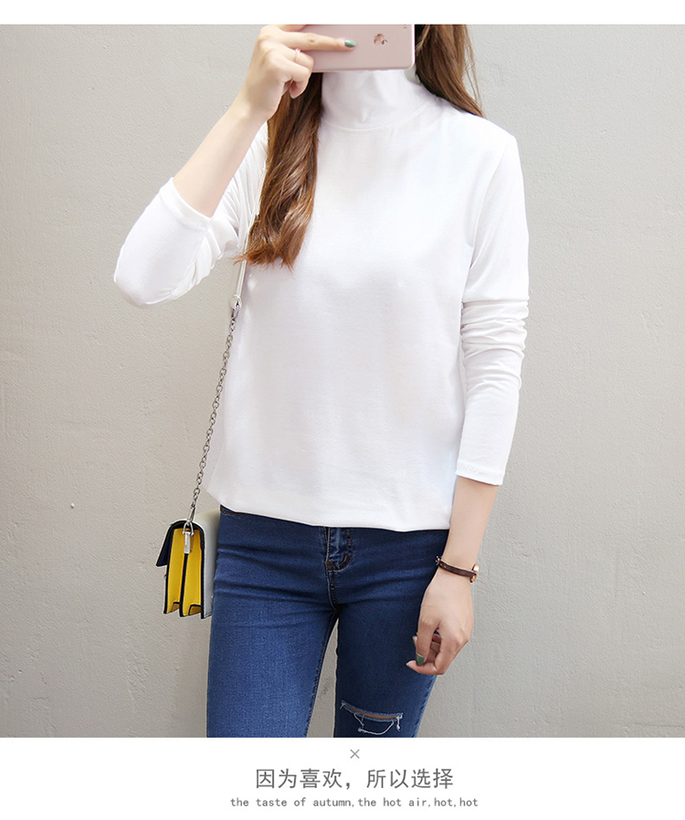 2019春季新款條紋高領打底衫女長袖T恤寬松韓版?加肥大碼上衣服