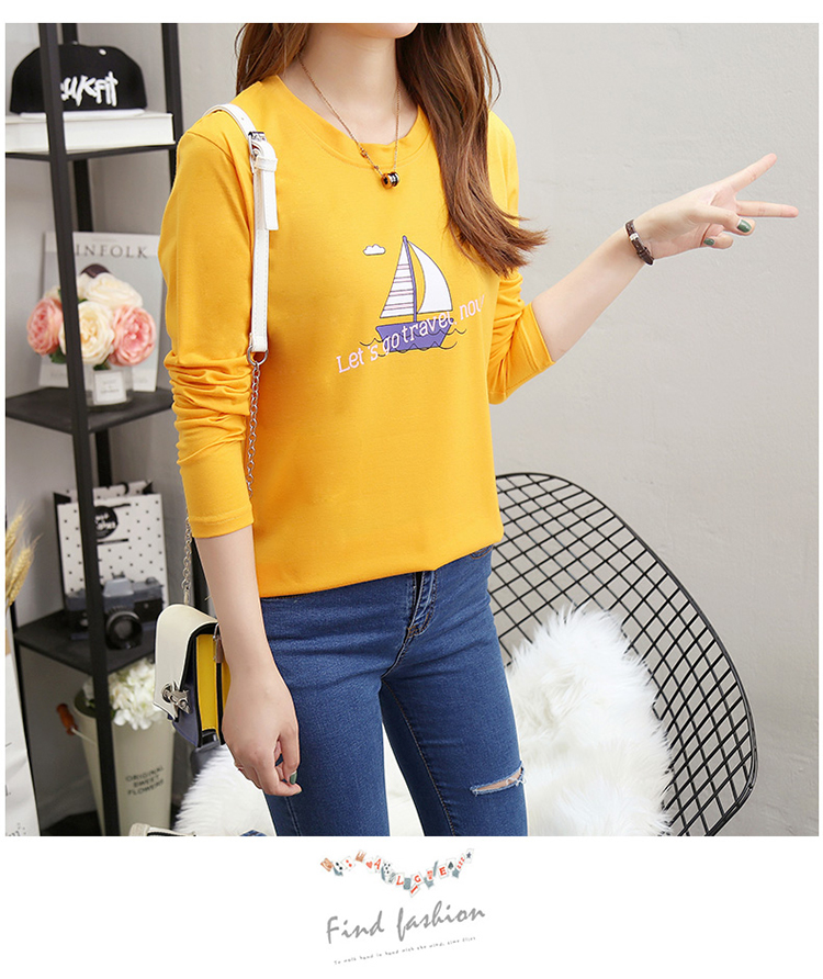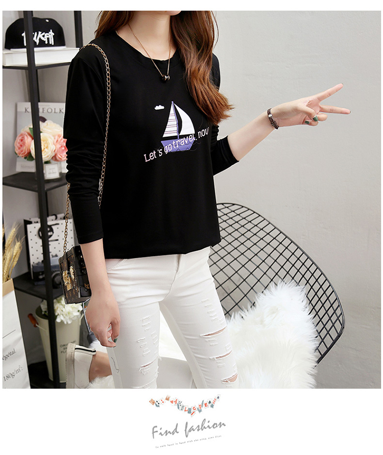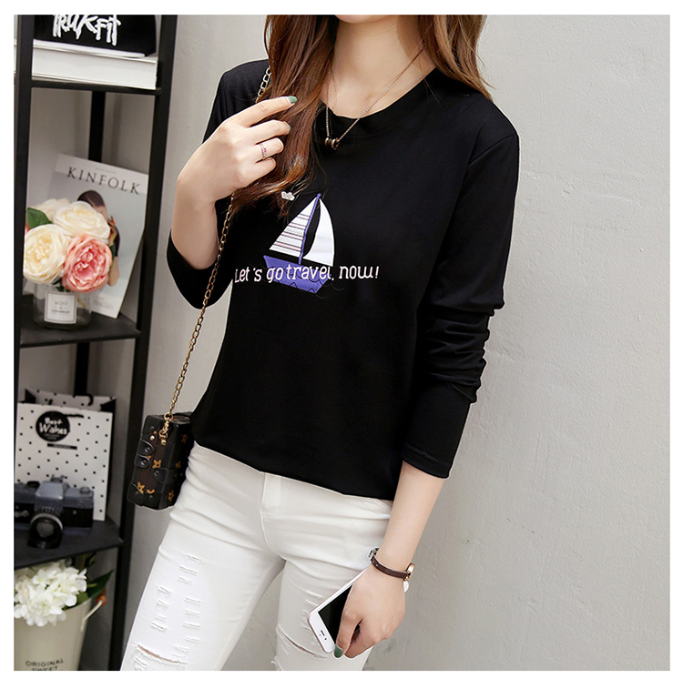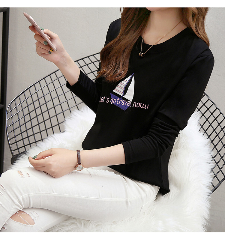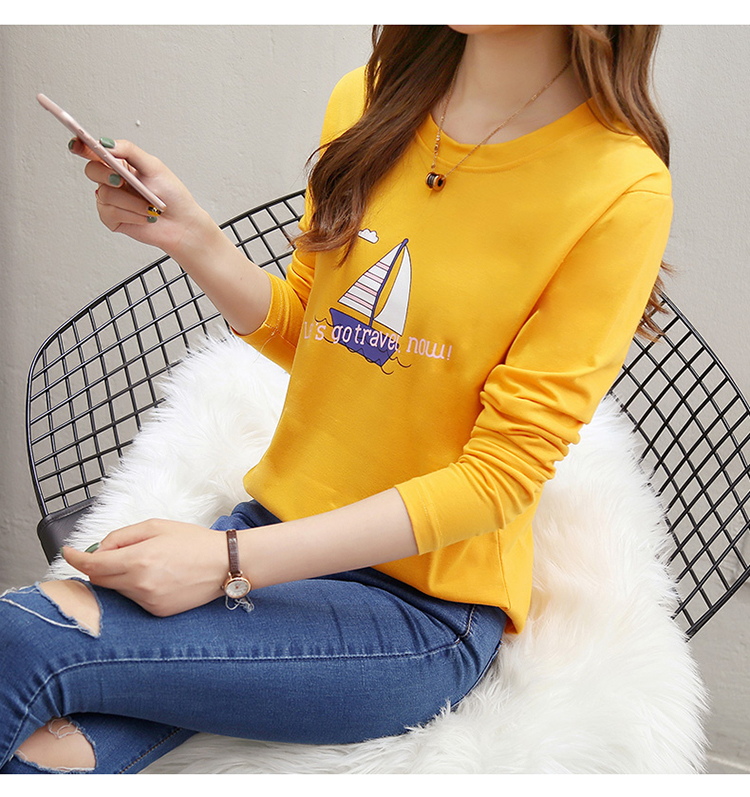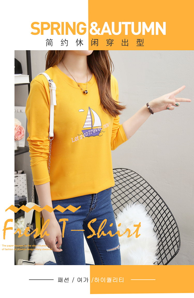 2019春裝新款長袖t恤女學生寬松韓版百搭打底衫??很仙的上衣服
