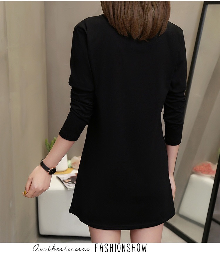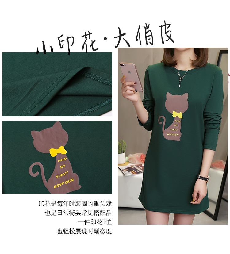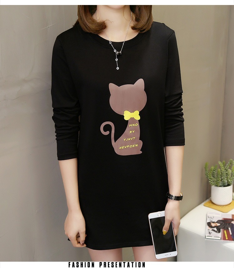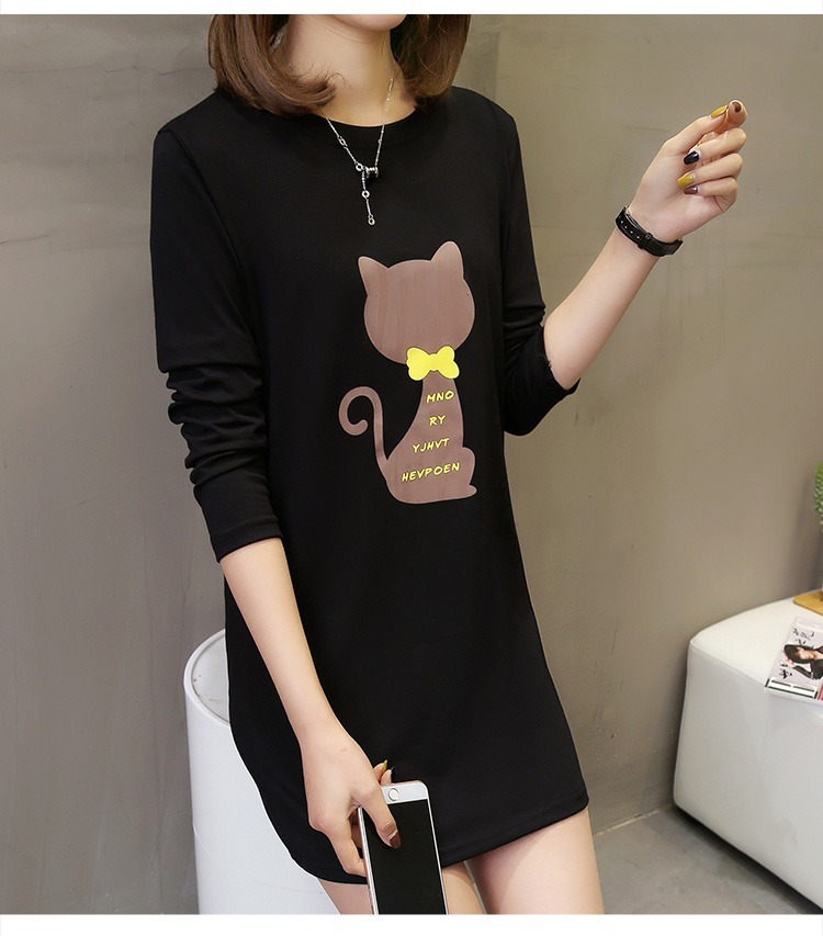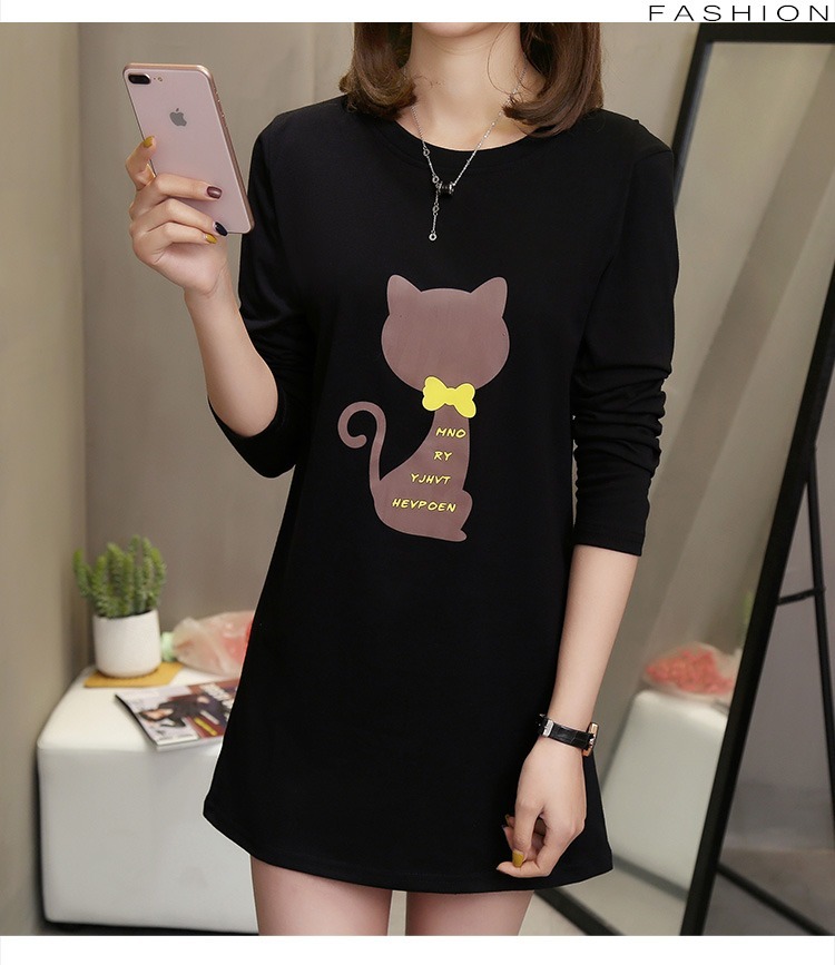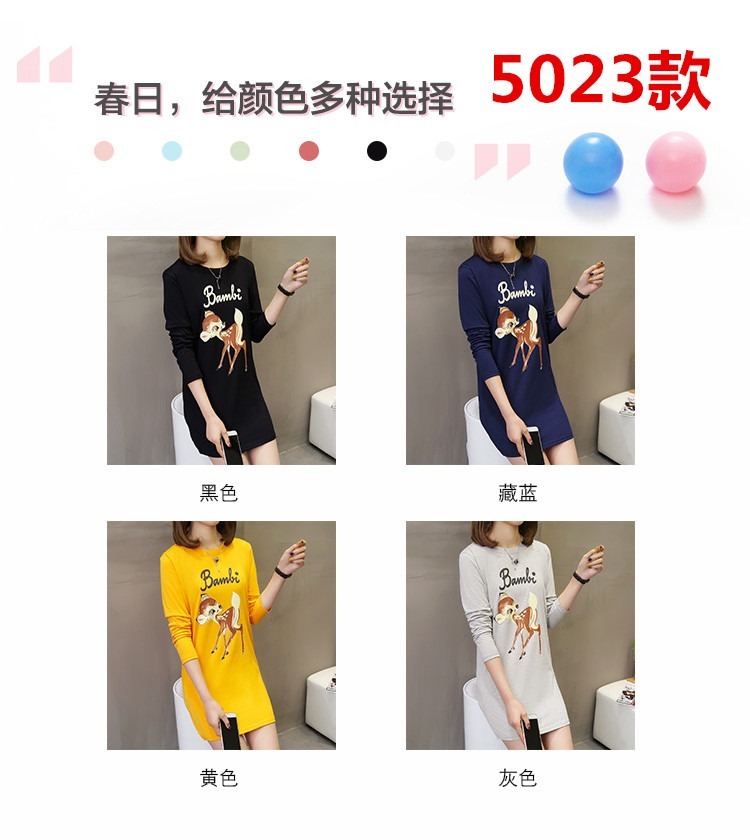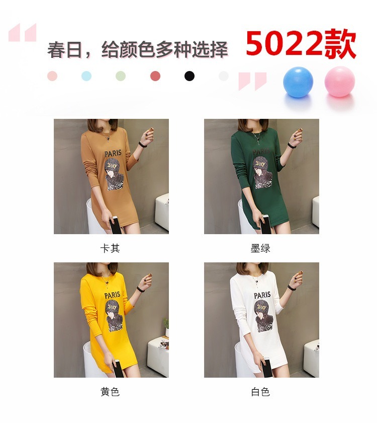 2019春裝新款韓版大碼女裝中長款t恤女長袖寬松內搭打底衫上衣?