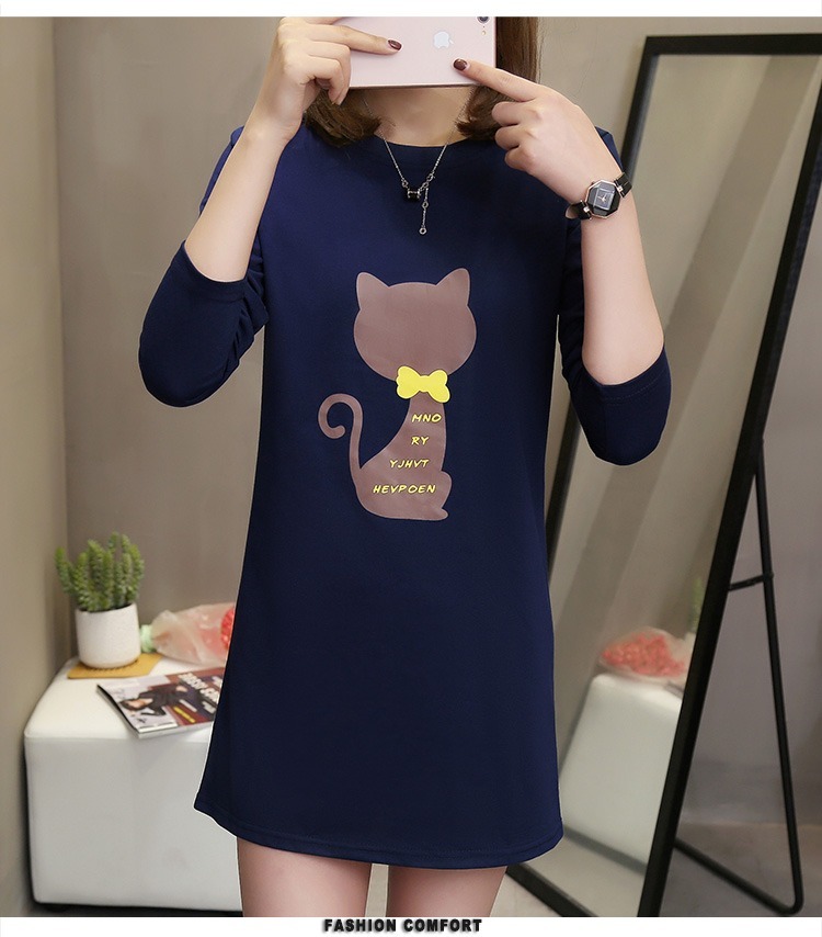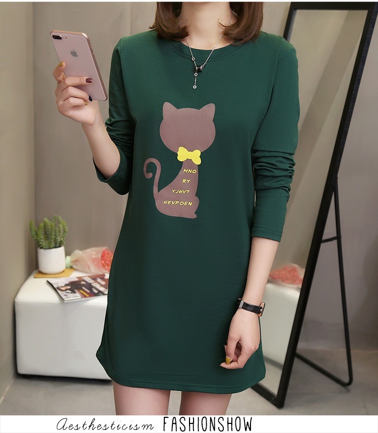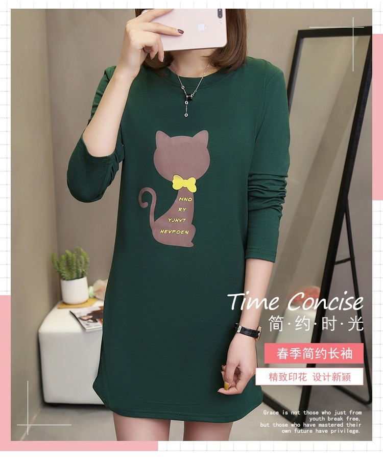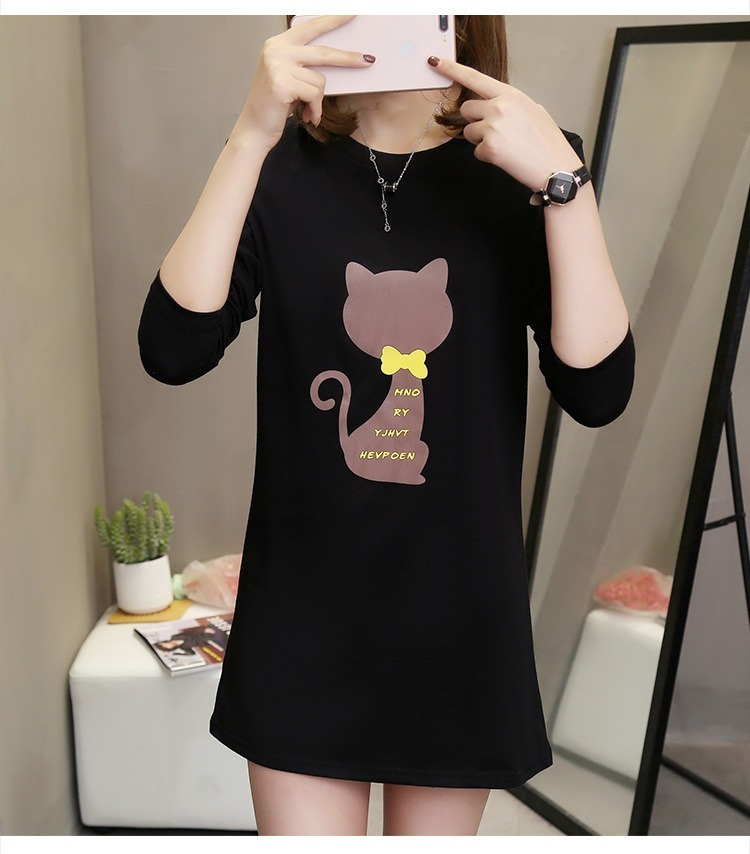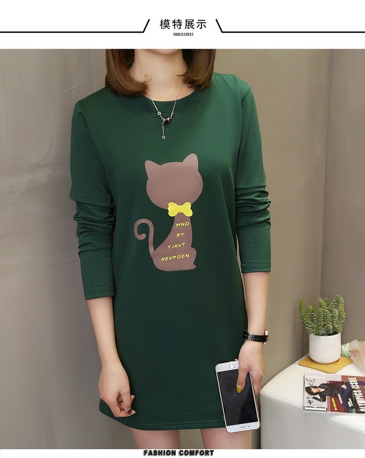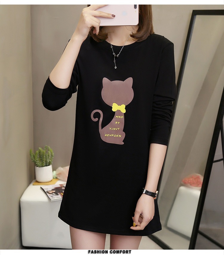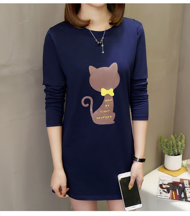 2019春裝新款韓版大碼女裝中長款t恤女長袖寬松內搭打底衫上衣?