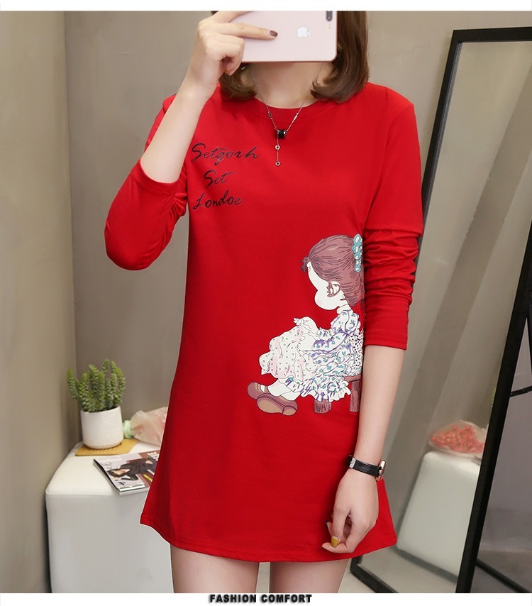 2019春裝新款女裝韓版中長款打底衫女?潮大碼胖mm寬松長袖t恤女