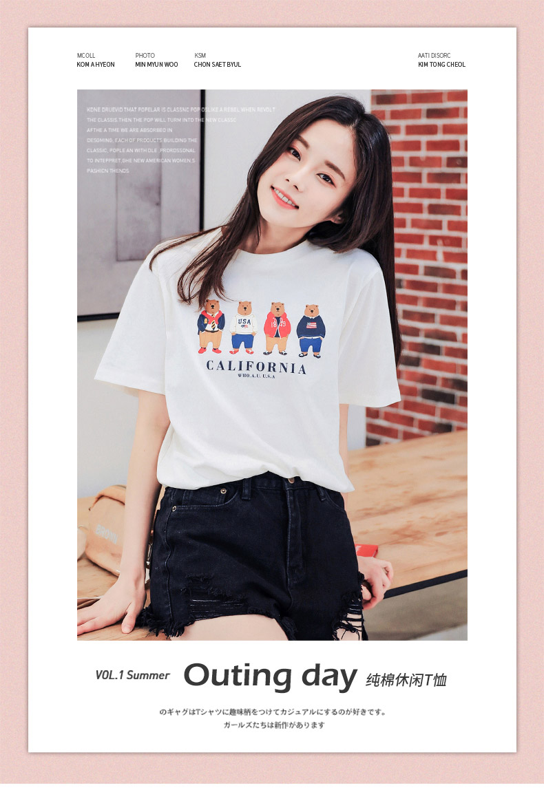 2019新款短袖T恤女寬松簡約夏季超火cec白色純棉圓領半袖體恤上衣