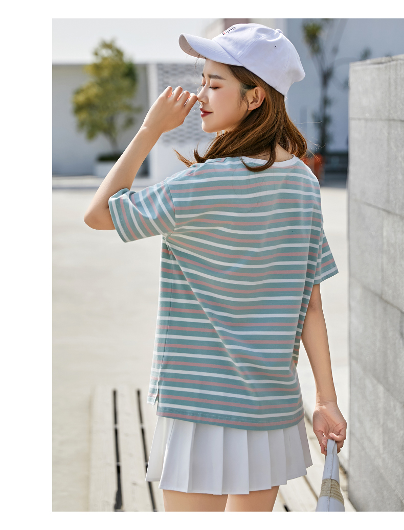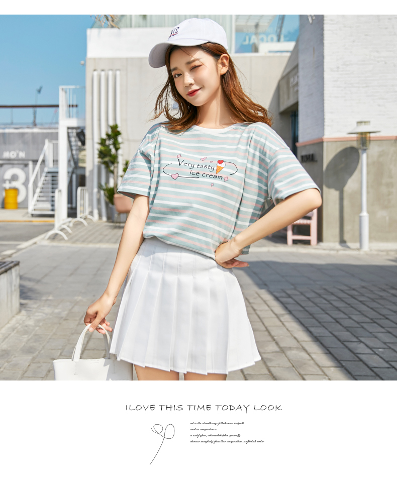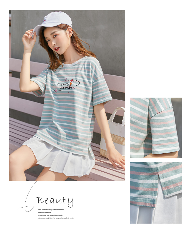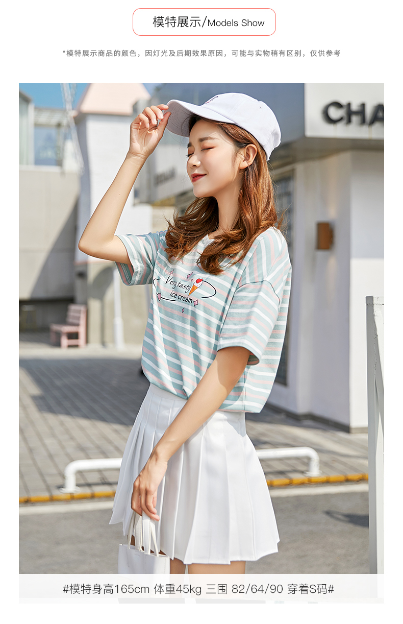 2019新款白色t恤女短袖體恤打底衫春夏裝半袖寬松條紋上衣服情侶