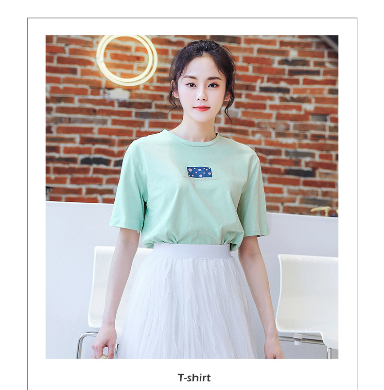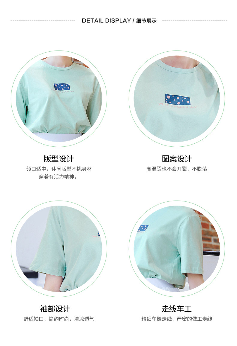 2019新款純棉短袖女上衣夏季韓版ins潮網紅綠色寬松港風打底t恤女