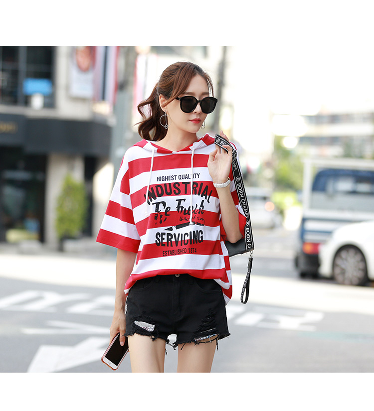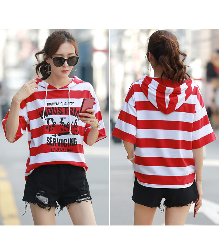 [2]短袖t恤女士時尚半袖寬松韓版百搭純棉連帽衫上衣服夏裝2019新款