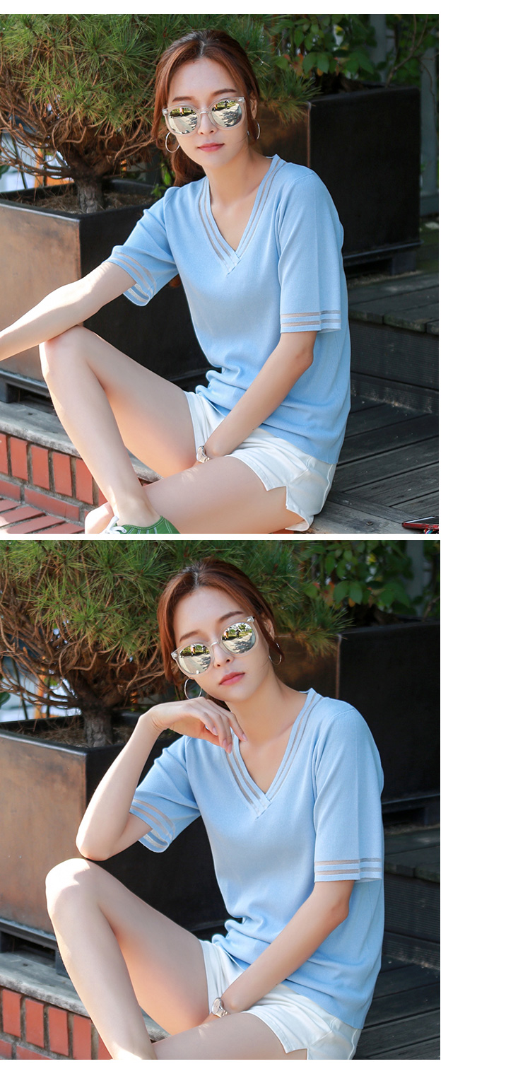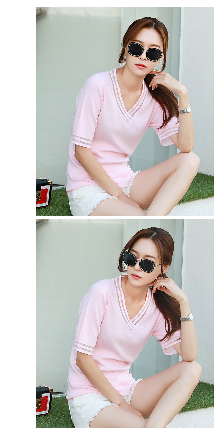 [2]夏裝V領寬松短袖t恤女韓版時尚百搭半袖體恤2019新款針織衫上衣服