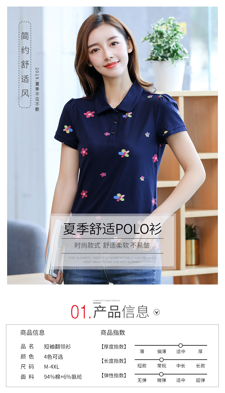 2019夏季t恤女短袖新款大碼寬松運動休閑翻領POLO衫女裝上衣體恤