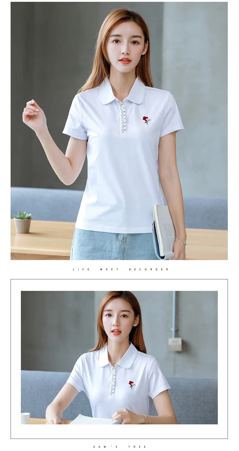 2019夏季新款大碼女純棉短袖T恤寬松體恤韓版運動上衣翻領polo衫