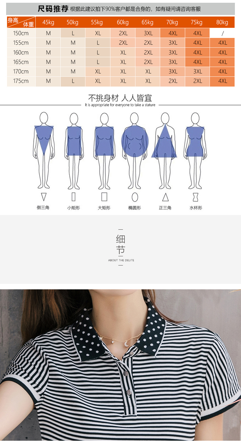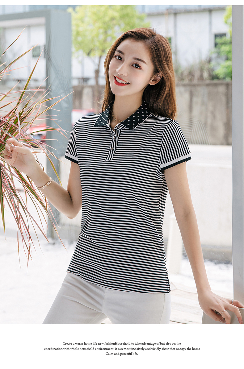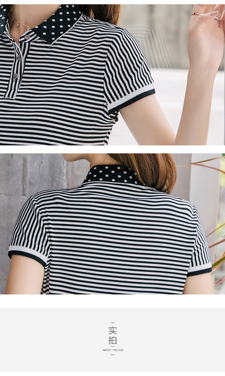 2019夏裝新款莫代爾t恤女短袖條紋韓版大碼寬松上衣翻領polo衫潮