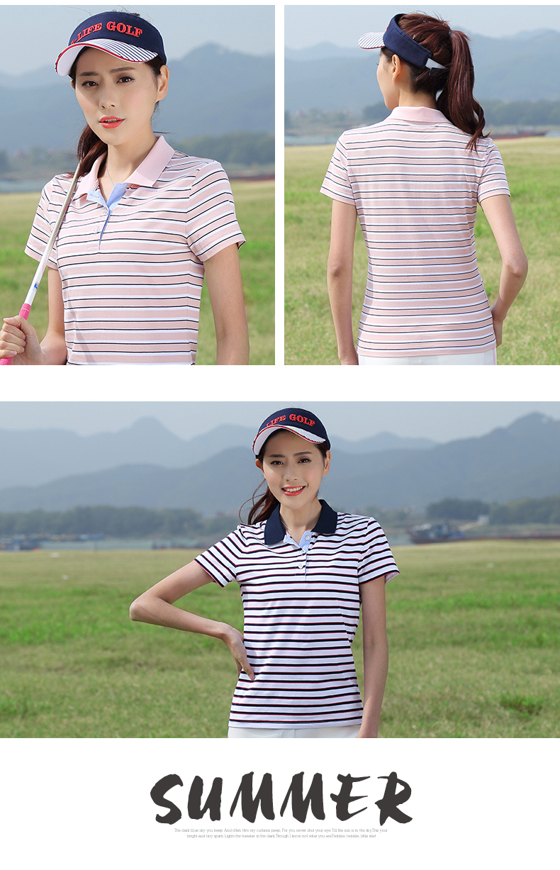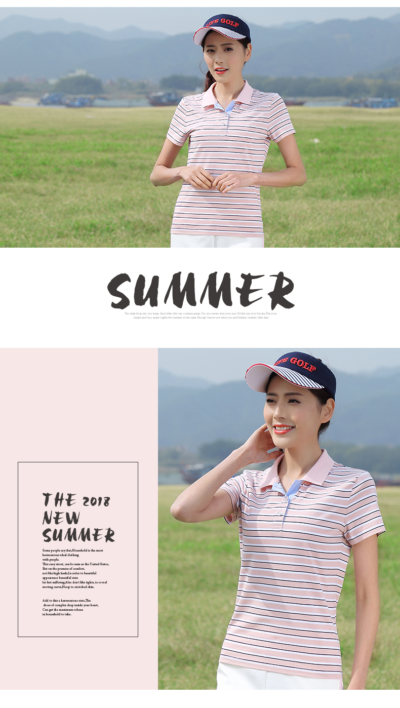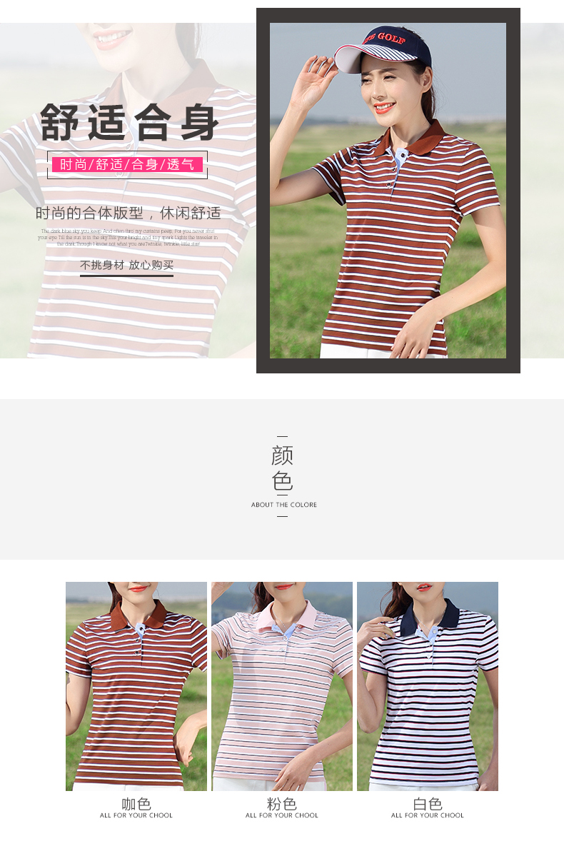 2019夏裝新款短袖t恤女純棉寬松大碼條紋帶領上衣運動翻領polo衫
