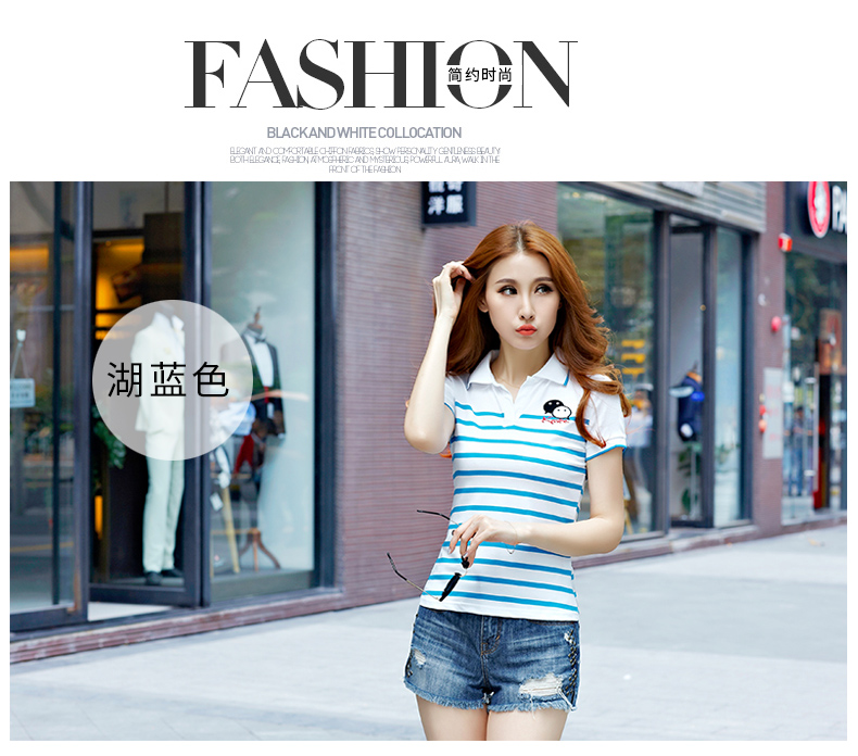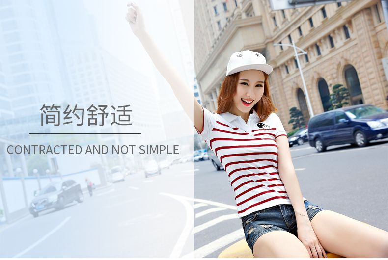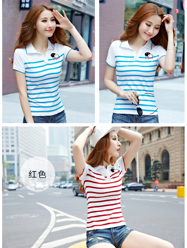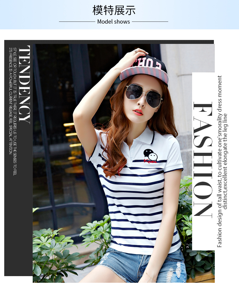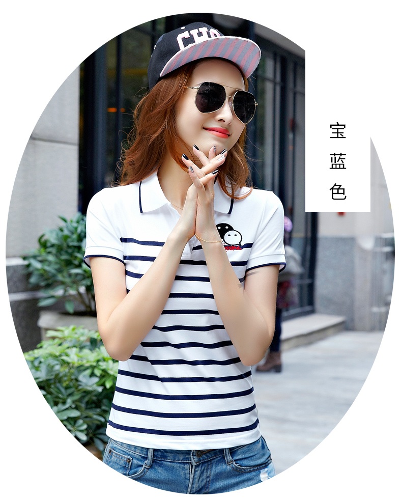 2019夏季新款純棉半袖運動上衣大碼韓版翻領條紋短袖T恤女POLO衫