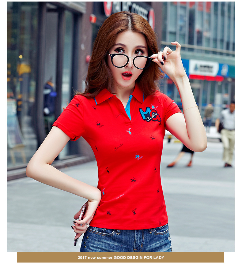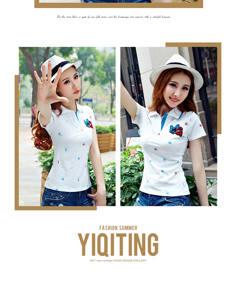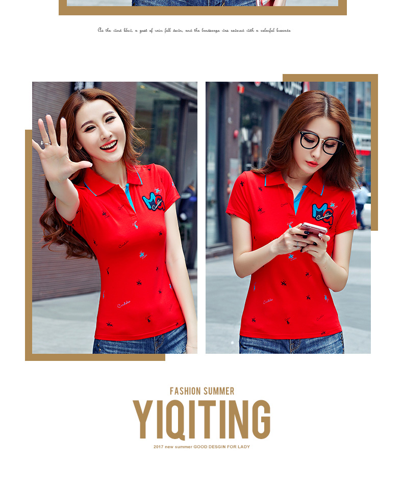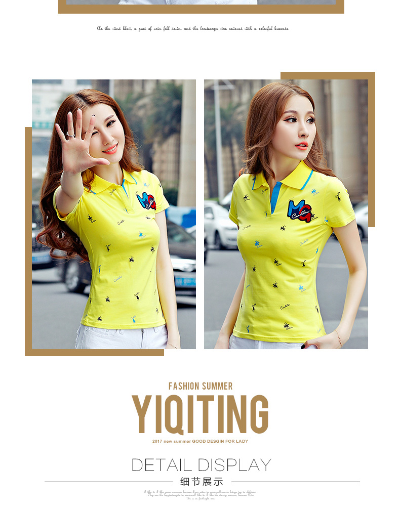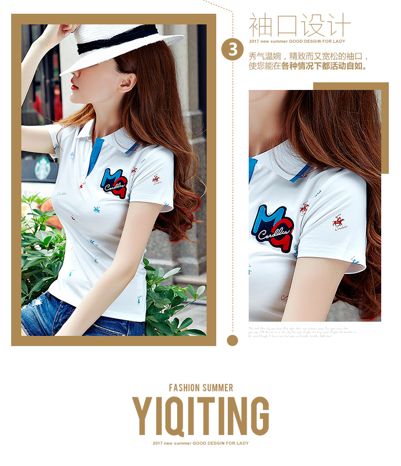 2019夏季新款翻領短袖t恤女純棉修身有領體恤上衣碎花polo打底衫