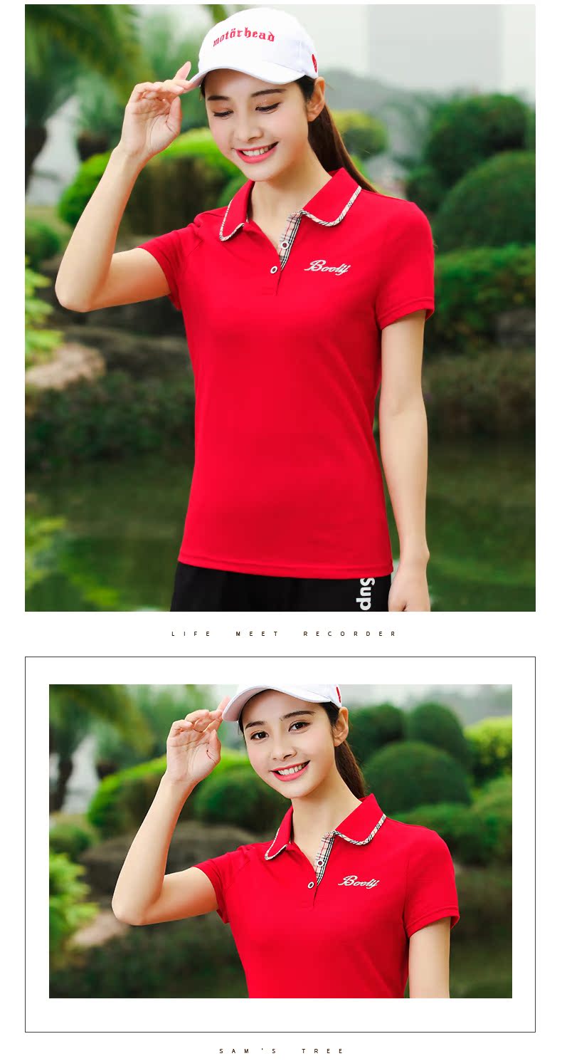 2019夏季新款韓版女裝短袖t恤女翻領polo衫大碼有領運動體恤上衣