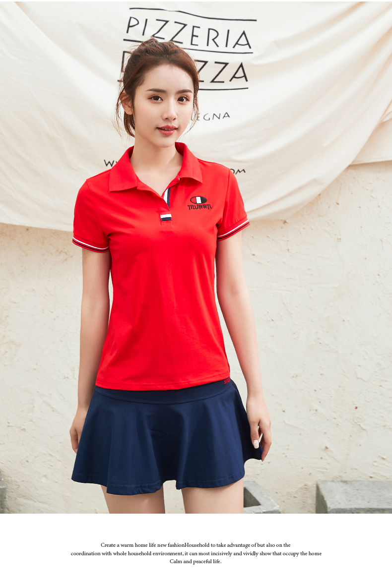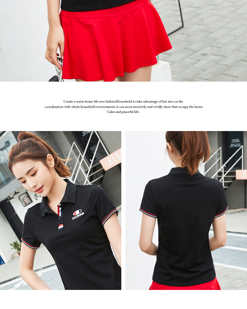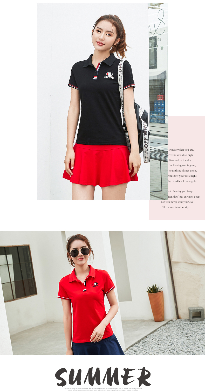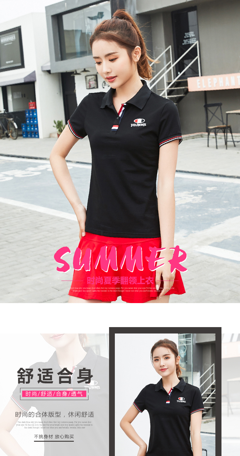 2019新款夏裝polo衫韓版寬松顯瘦運動女裝上衣體恤翻領短袖t恤女