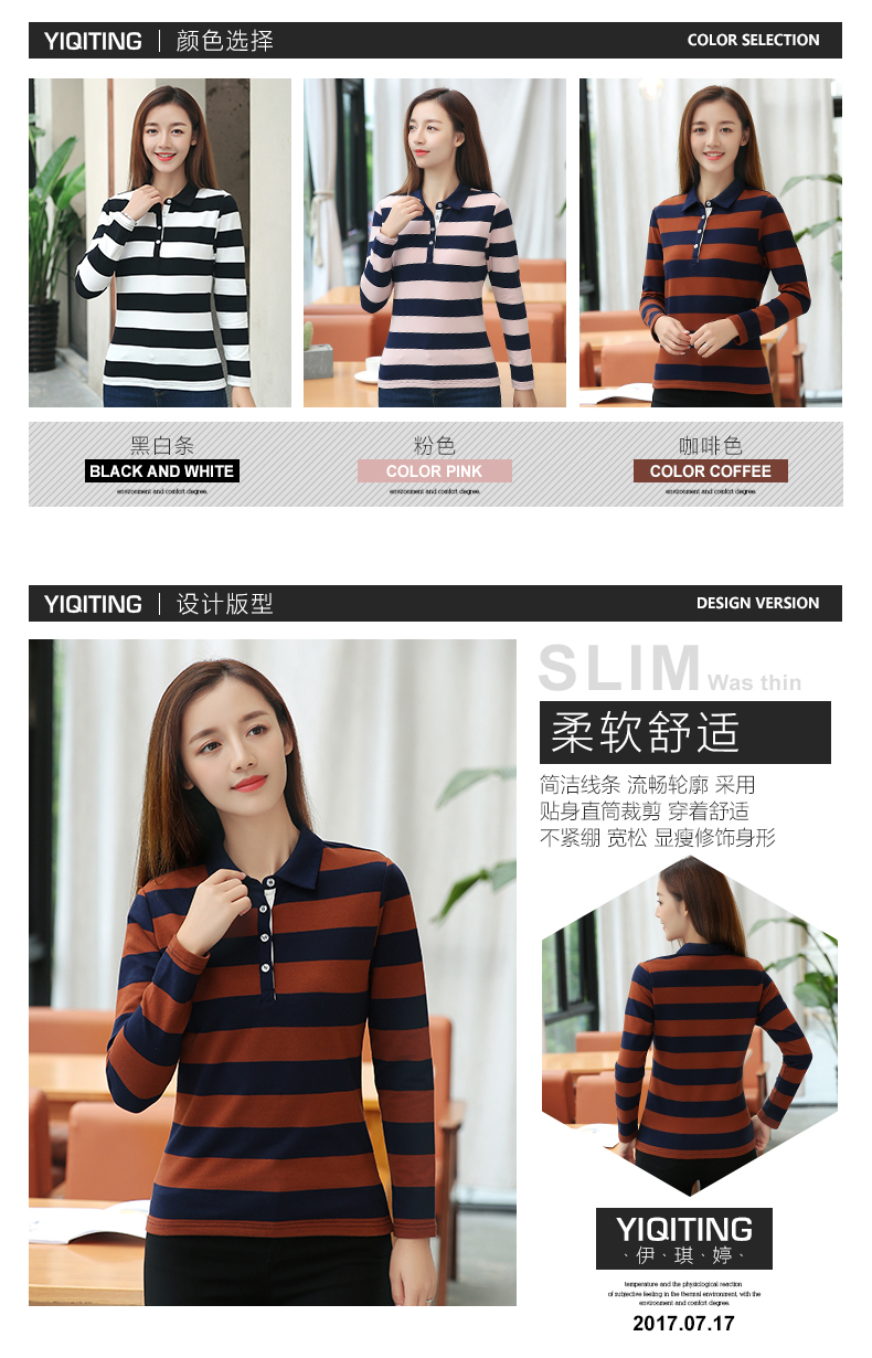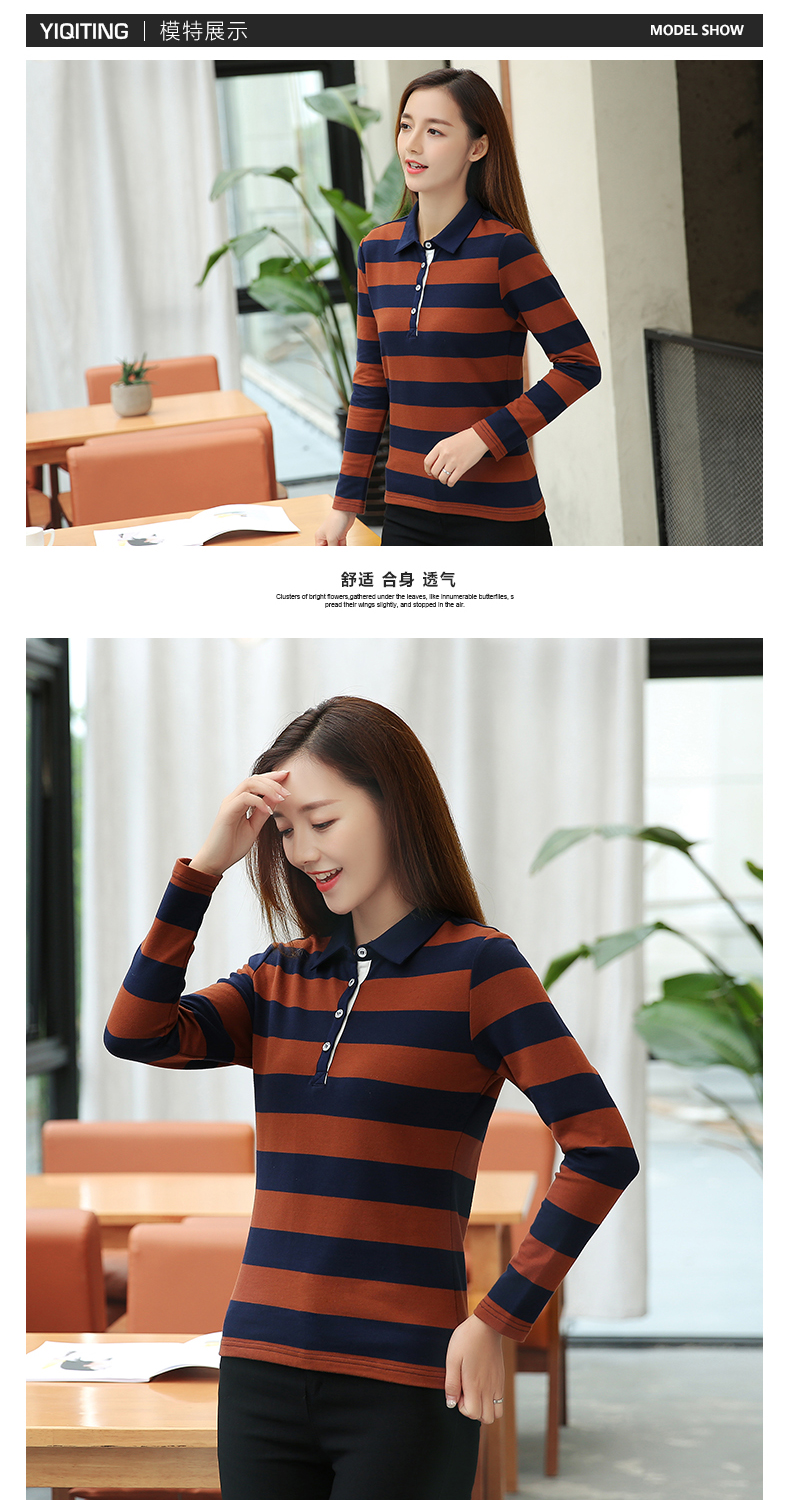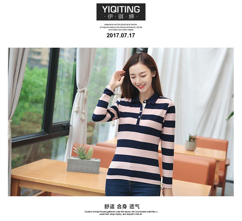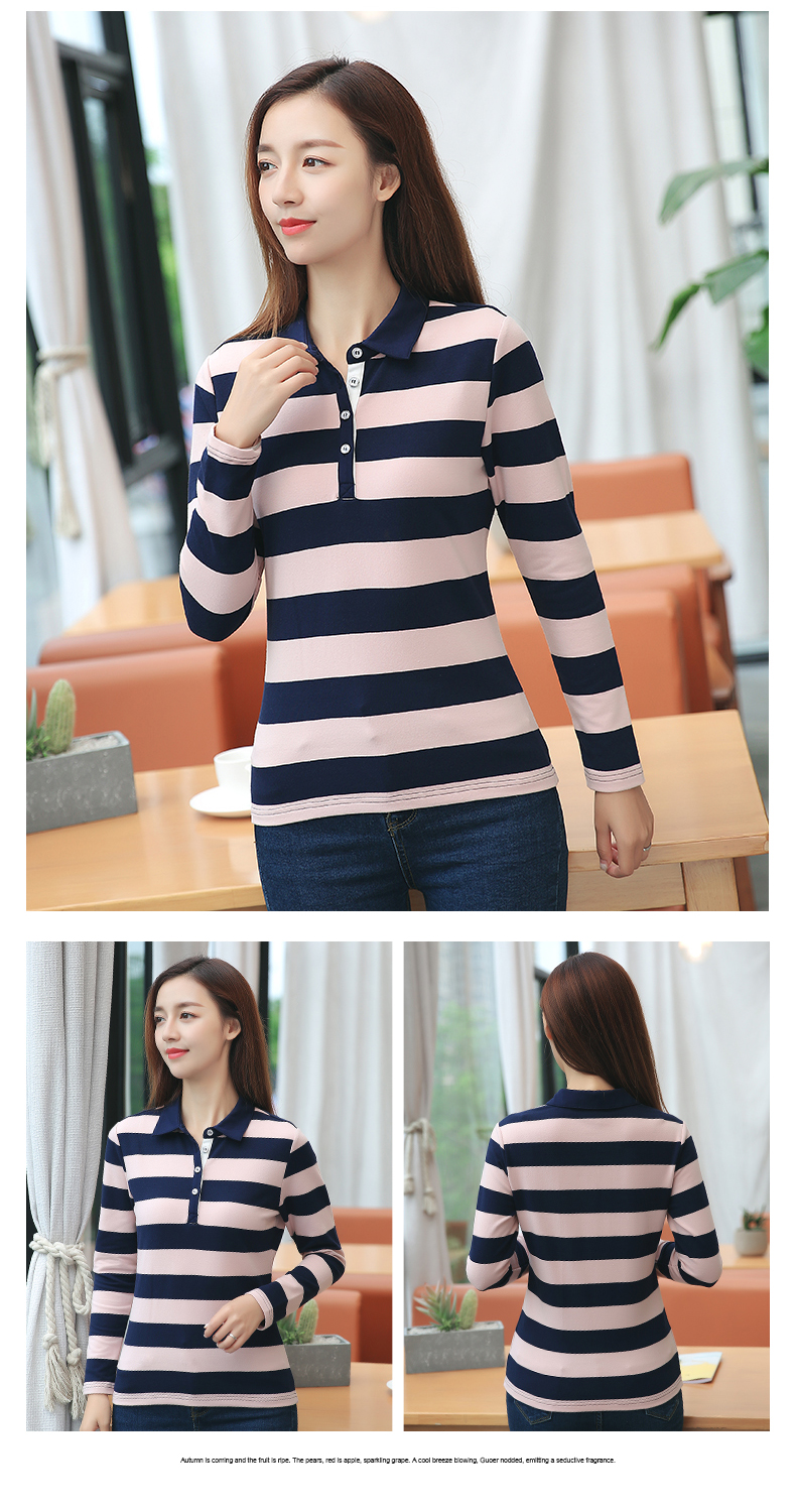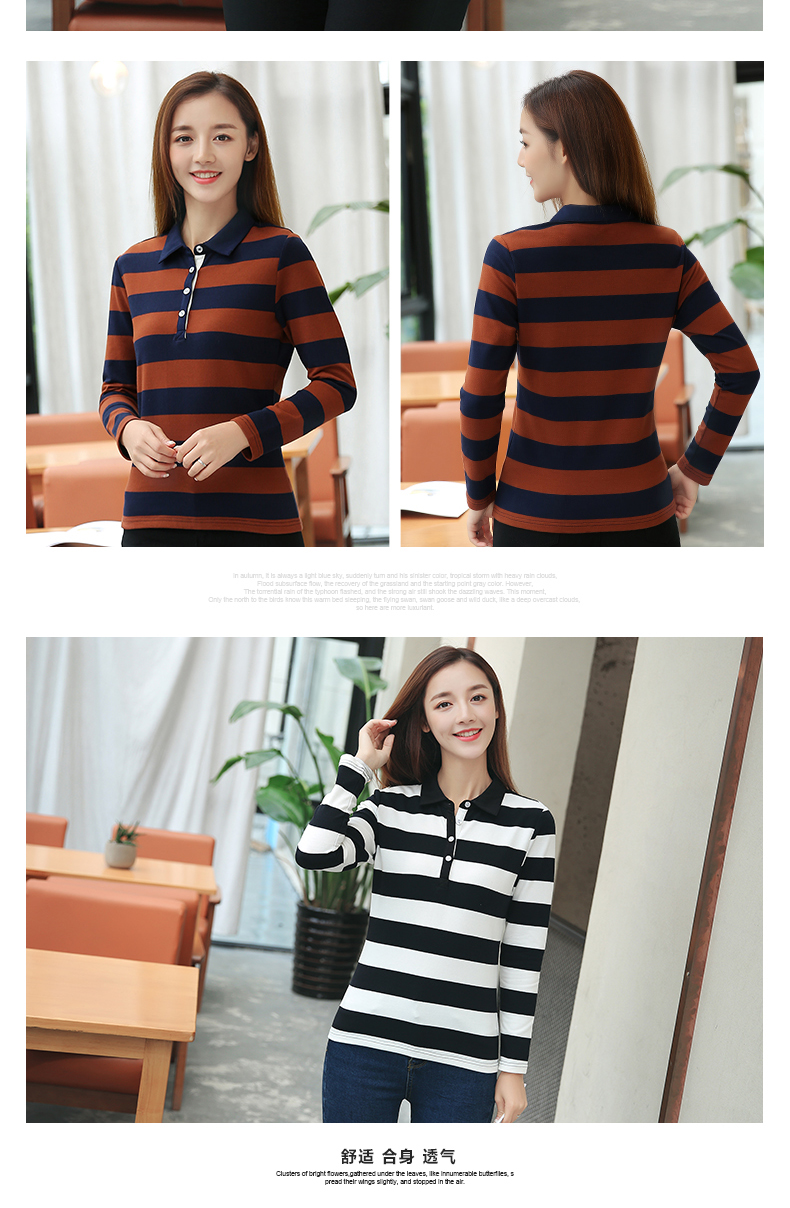 2019長袖翻領t恤女加絨寬松打底衫純棉春裝新款條紋上衣polo衫潮