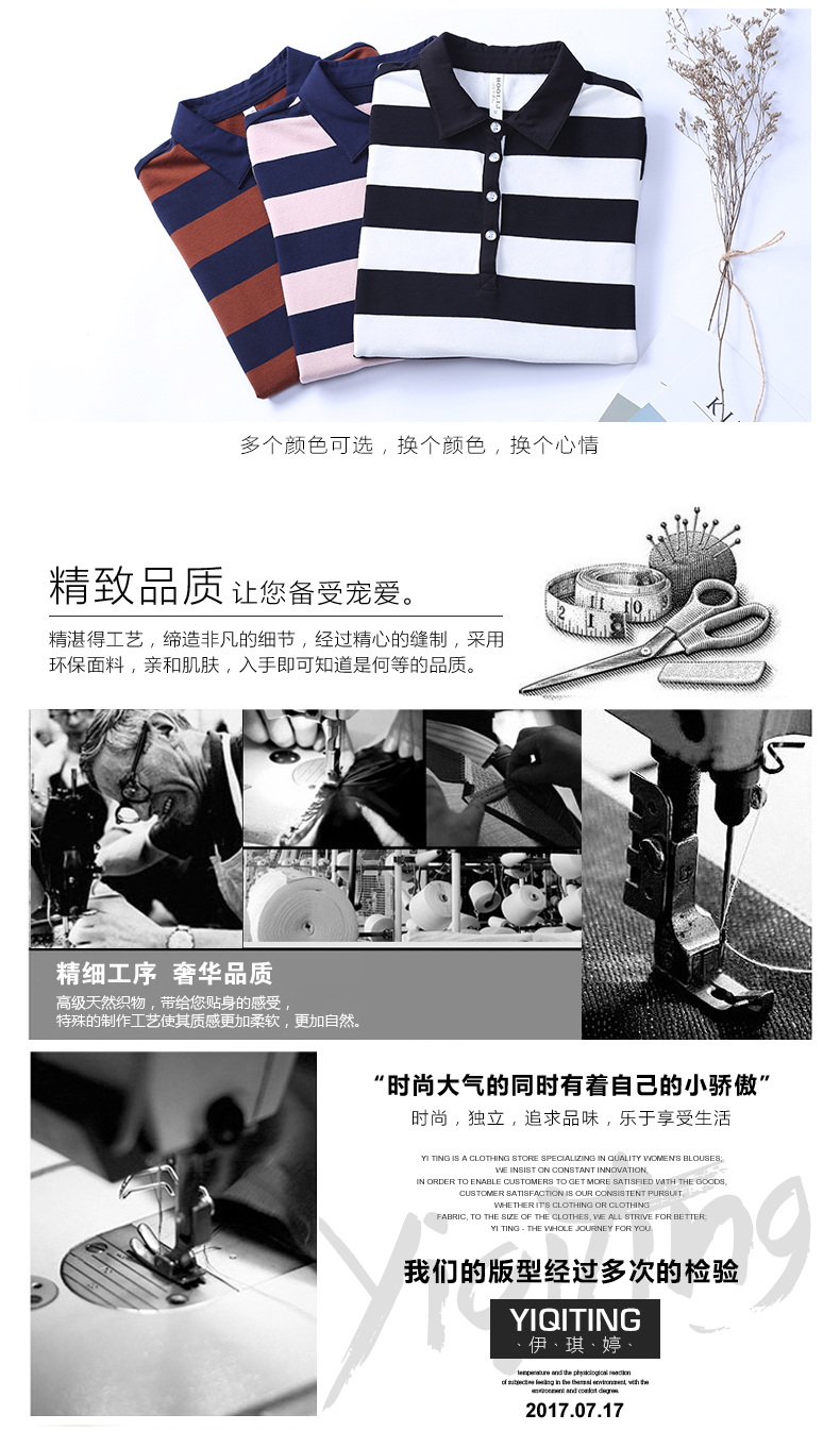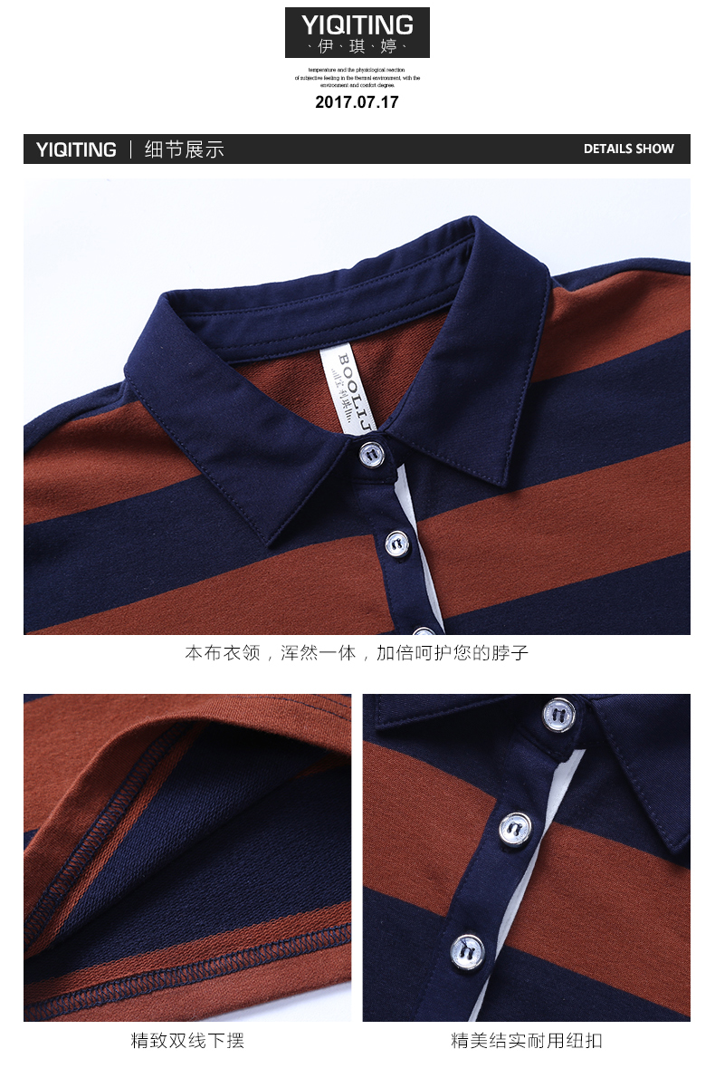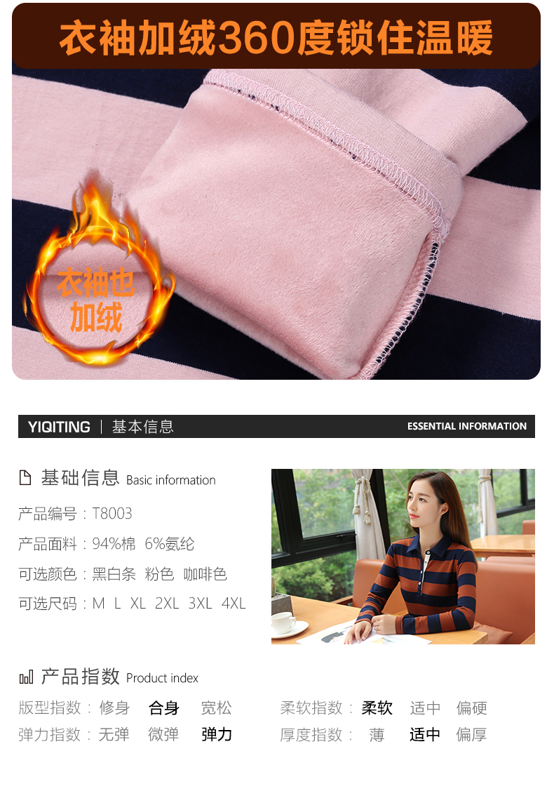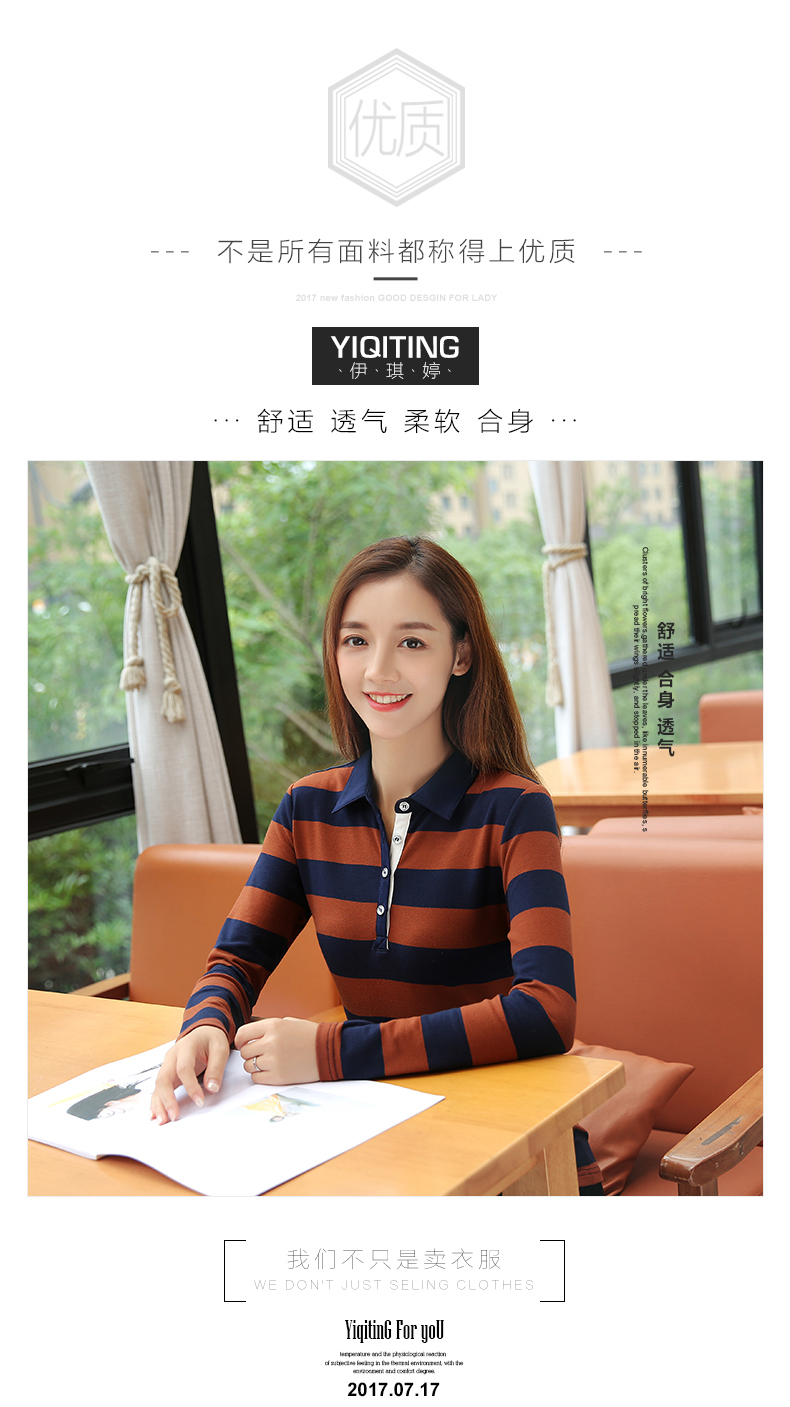 2019長袖翻領t恤女加絨寬松打底衫純棉春裝新款條紋上衣polo衫潮