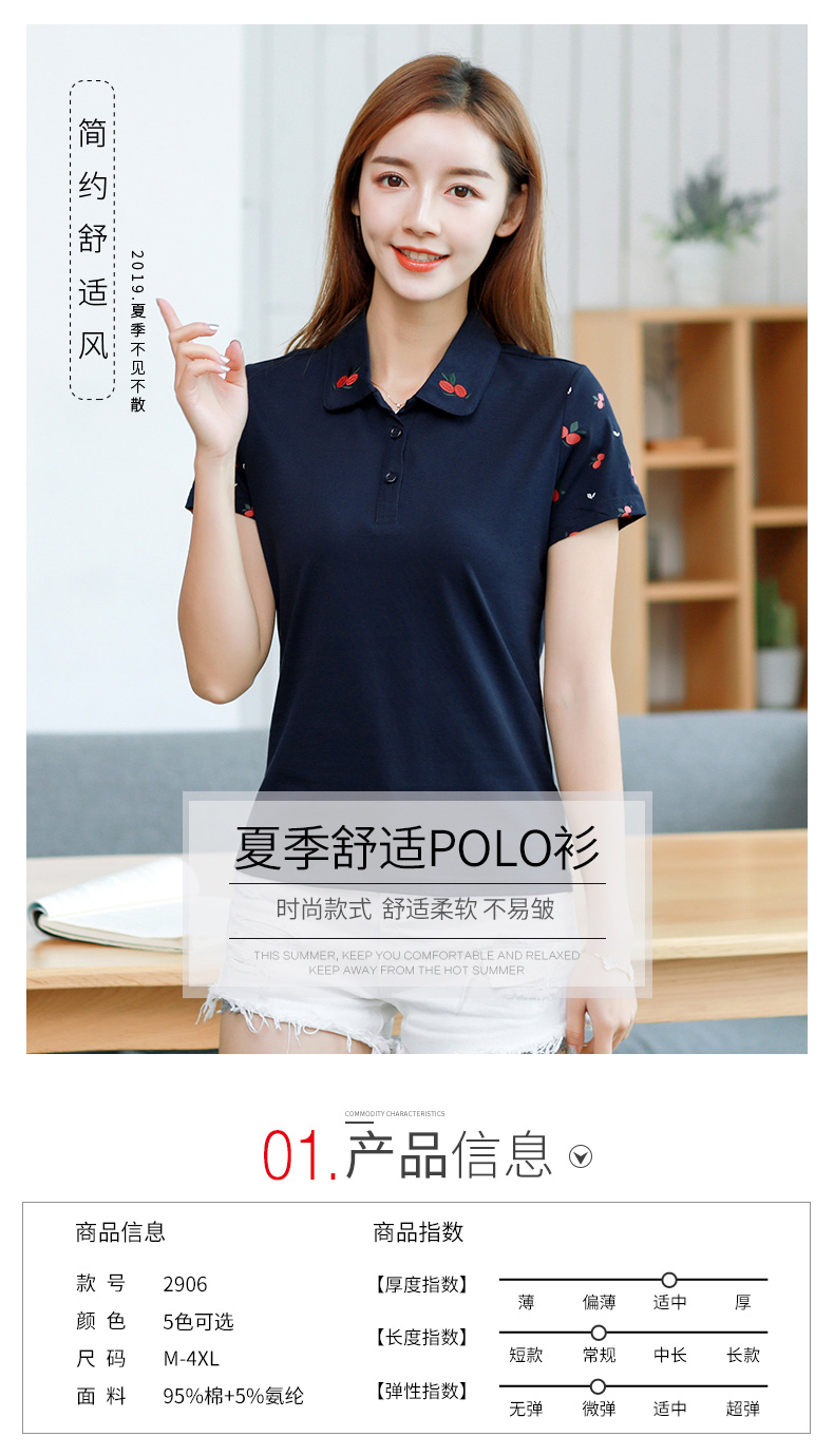 2019新款寬松大碼短袖t恤女韓版夏季休閑女士純棉翻領polo衫體恤