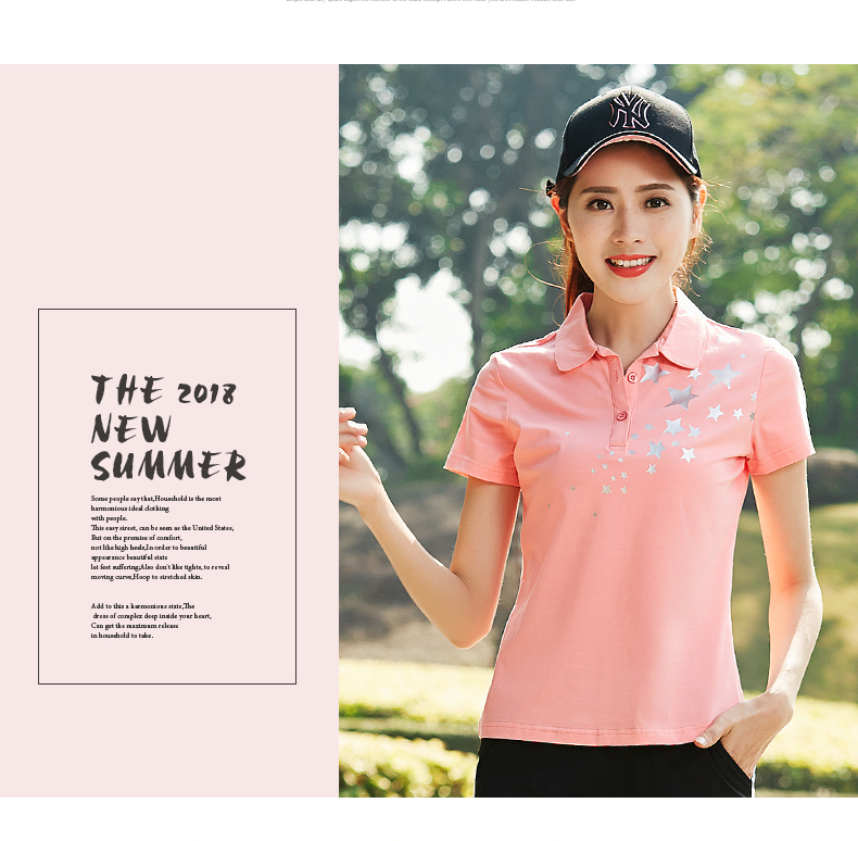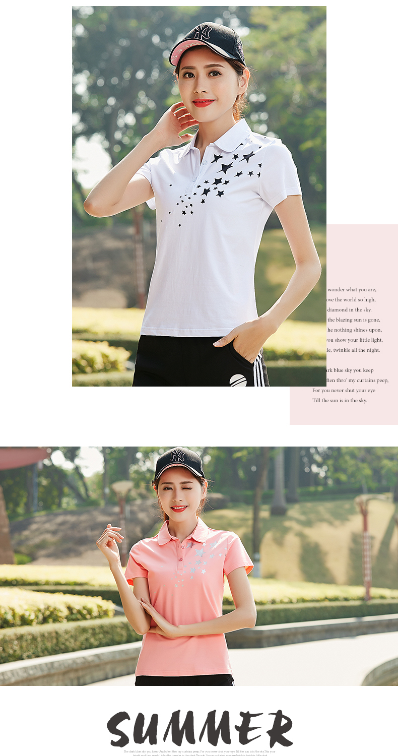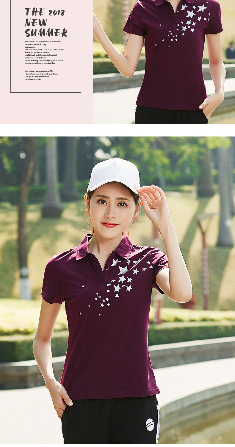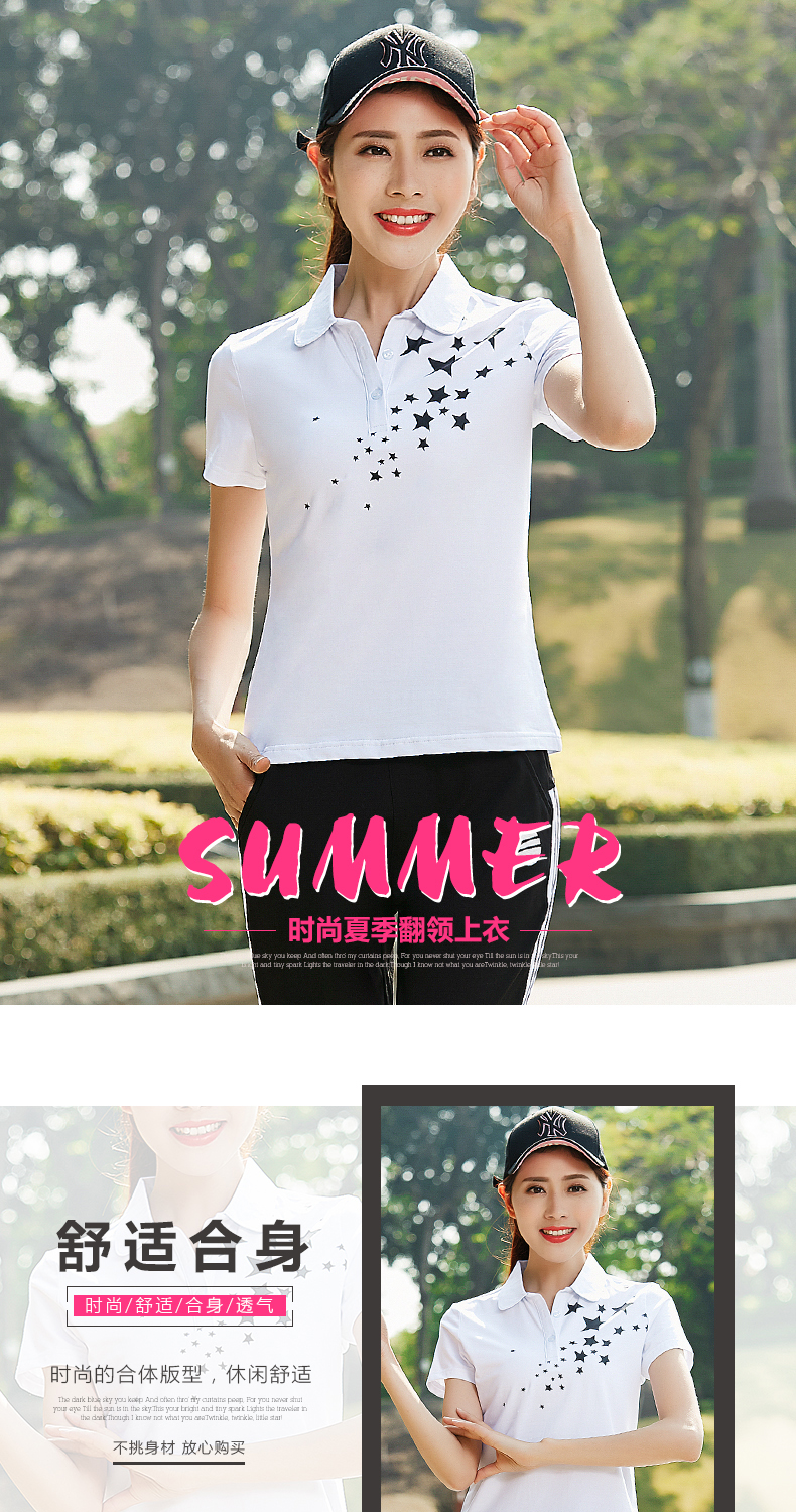 2019夏裝新款短袖女T恤運動休閑體恤大碼上衣純棉寬松翻領POLO衫
