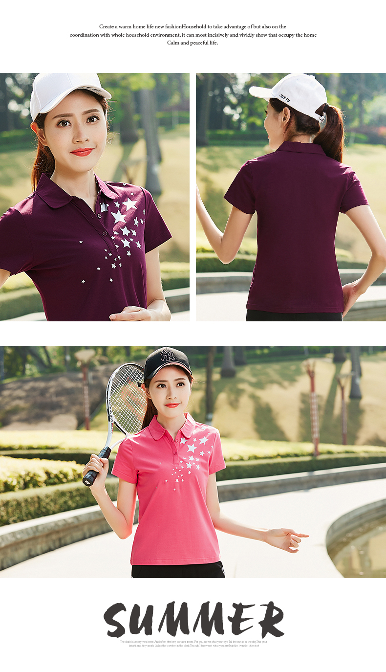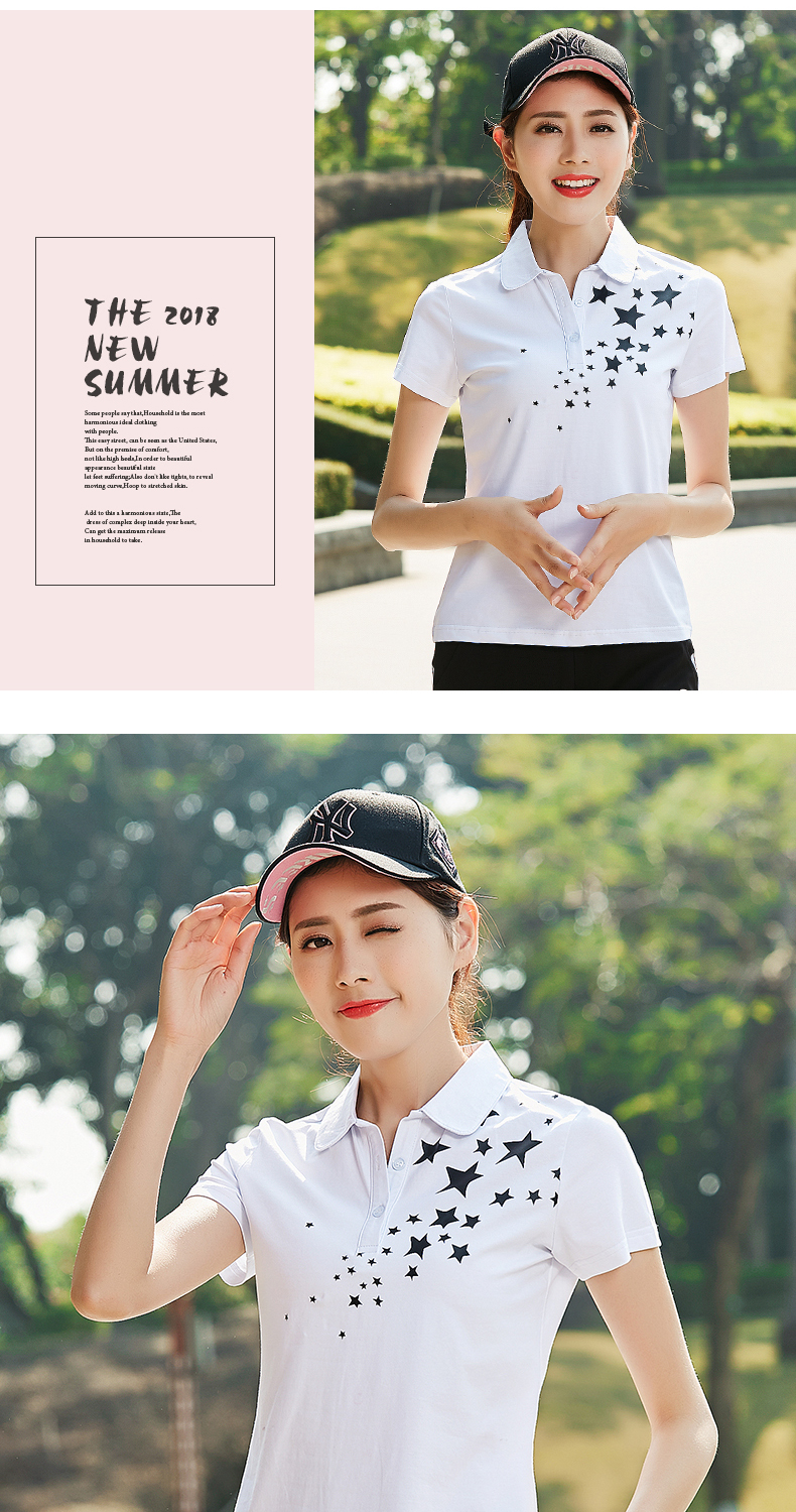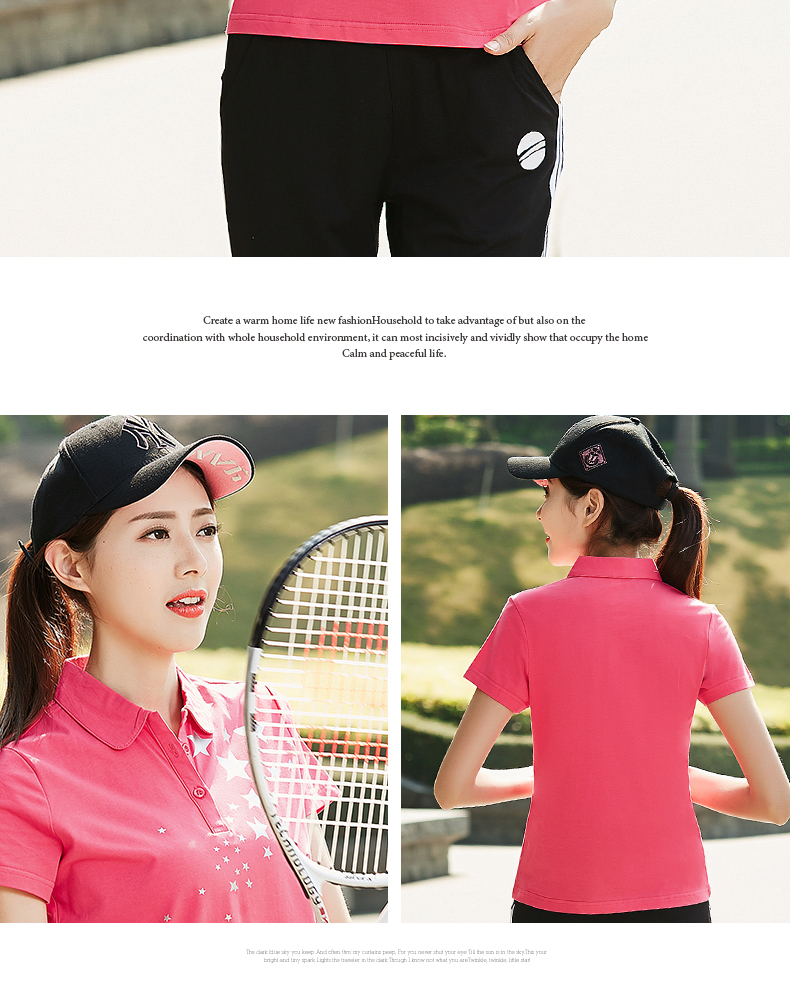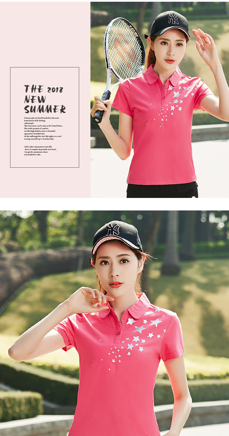 2019夏裝新款短袖女T恤運動休閑體恤大碼上衣純棉寬松翻領POLO衫