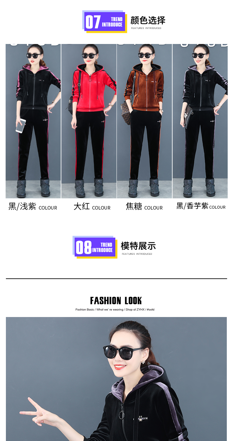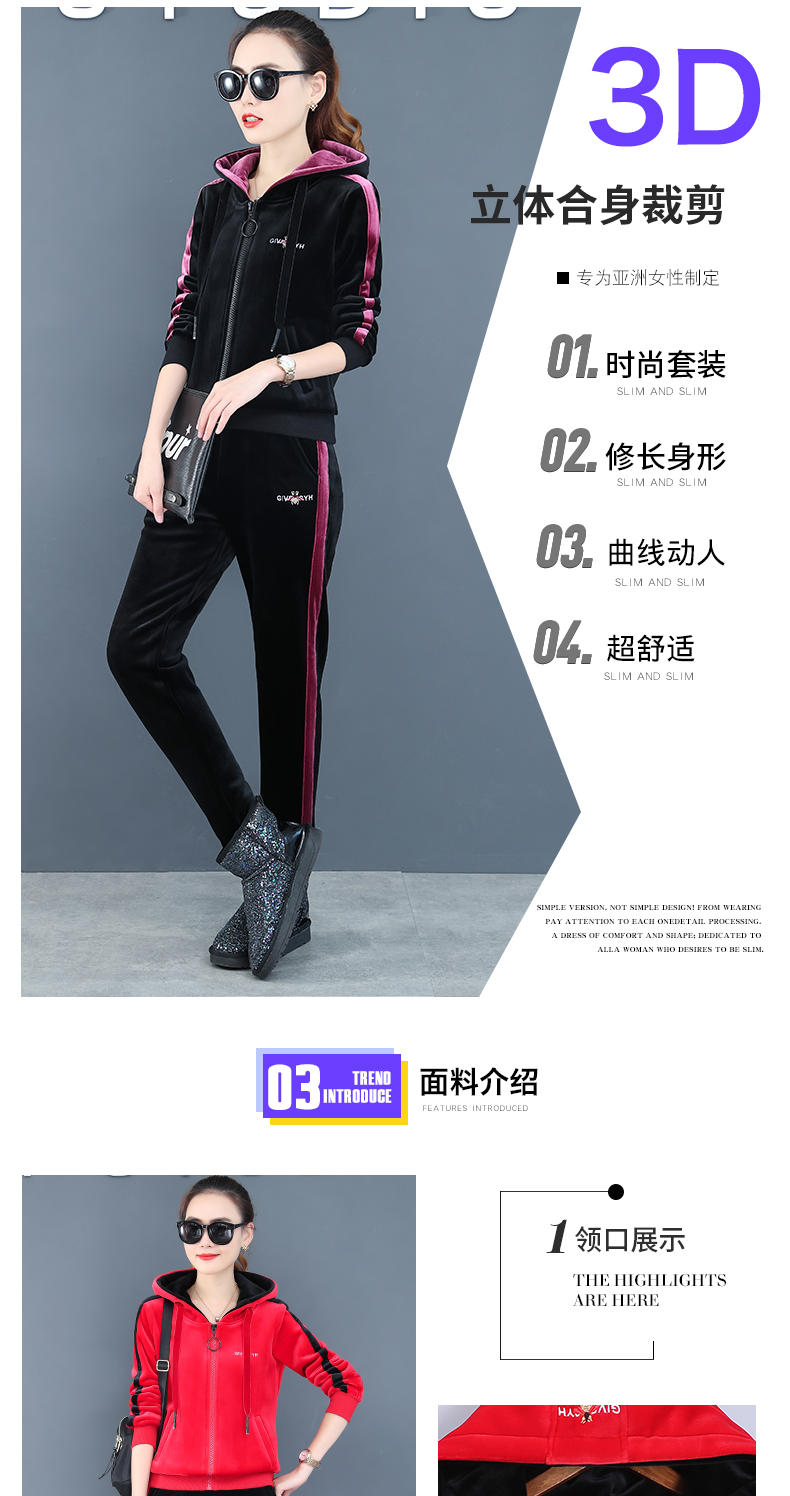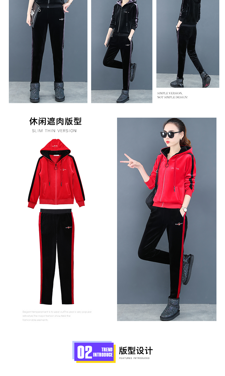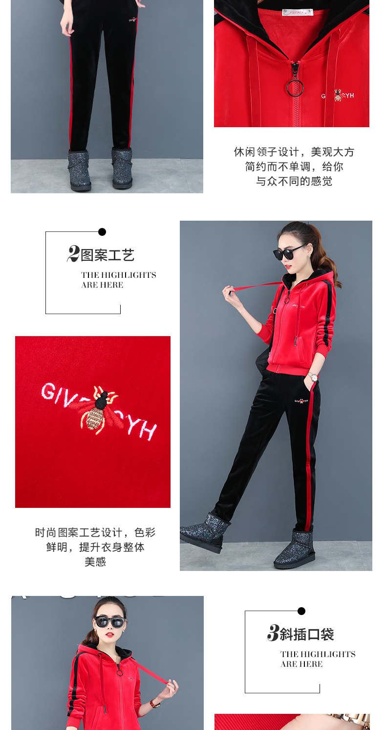 金絲絨套裝女時尚春款2019新款春秋薄款韓版運動衛衣休閑兩件套潮