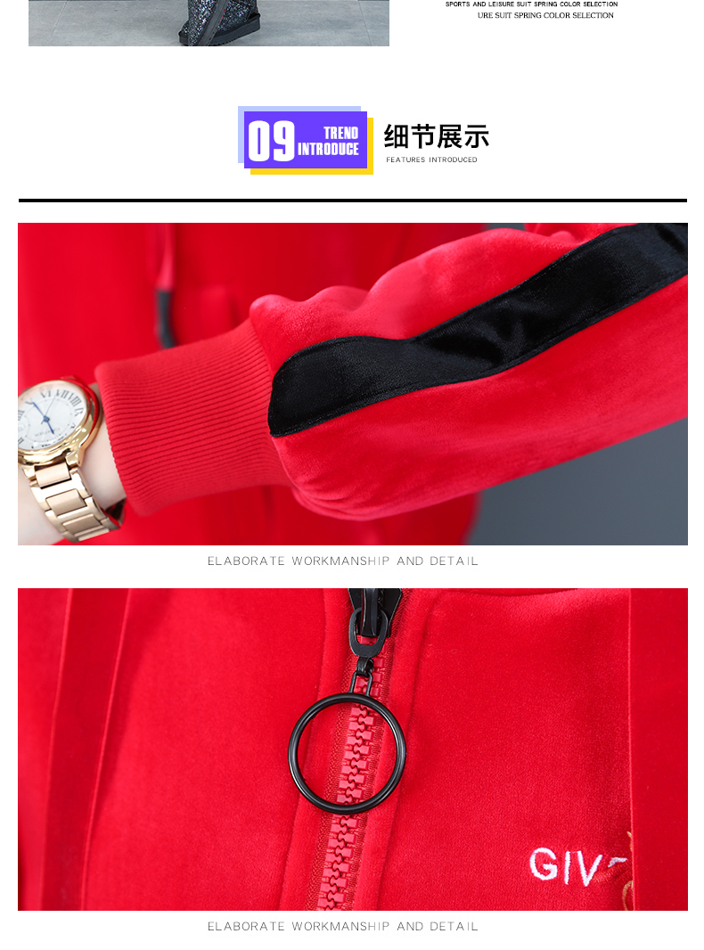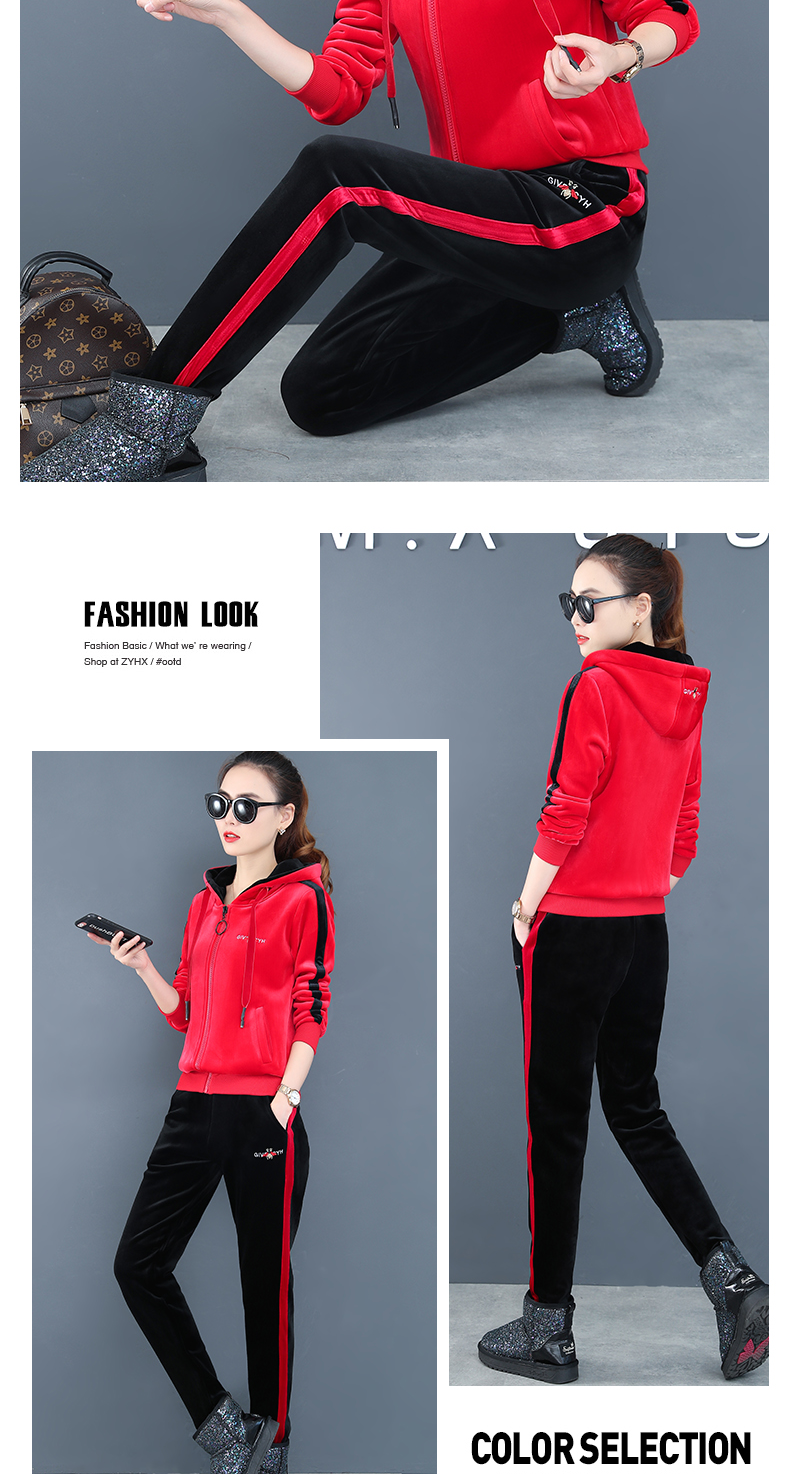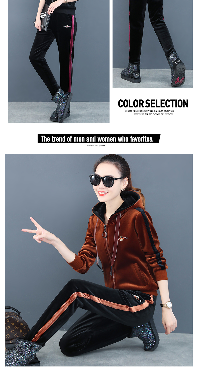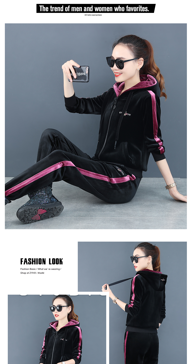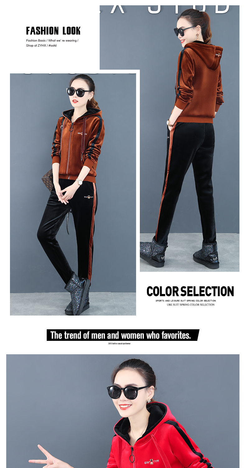 金絲絨套裝女時尚春款2019新款春秋薄款韓版運動衛衣休閑兩件套潮