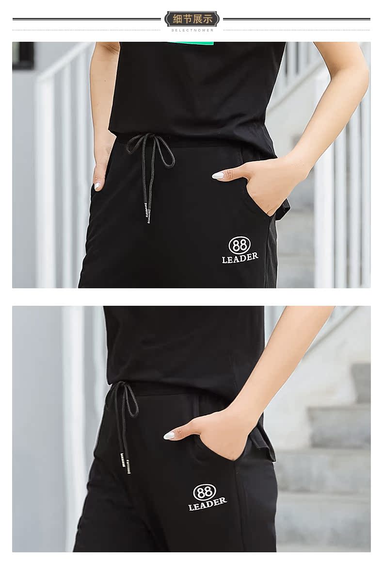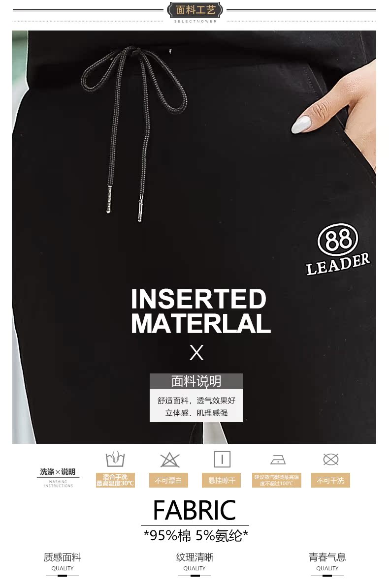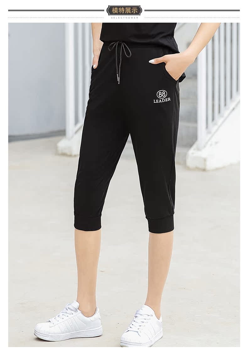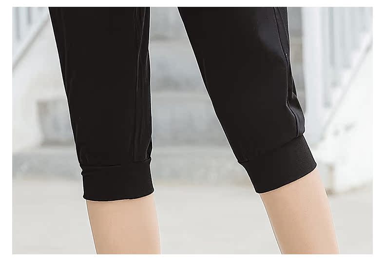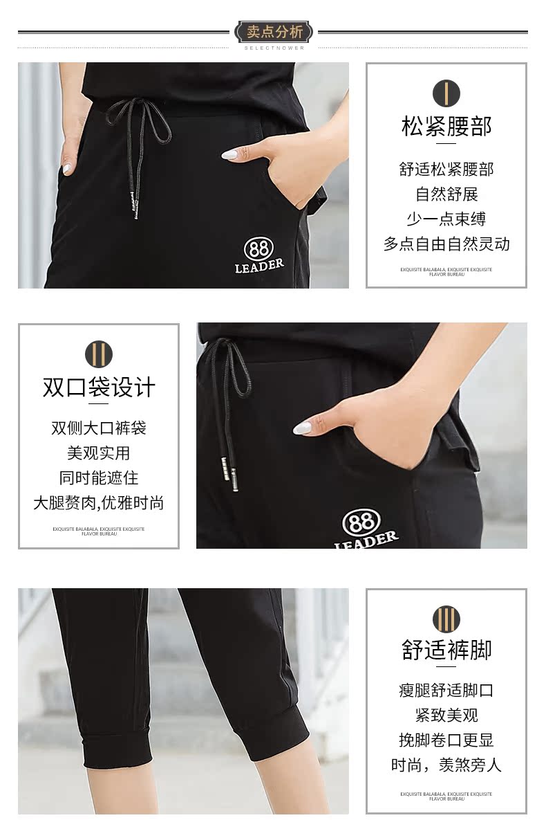 韓版大碼運動褲女新款2019夏裝純棉黑色七分褲小腳休閑褲束腳褲子