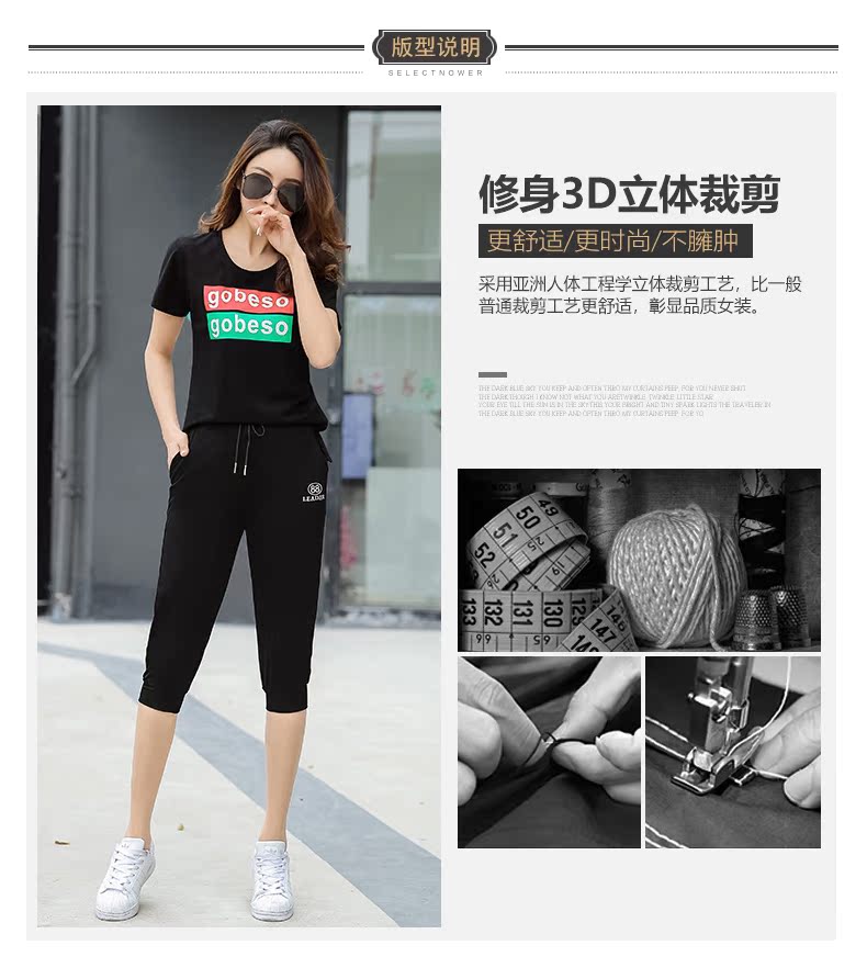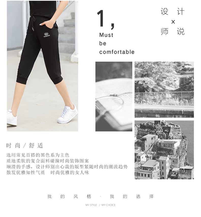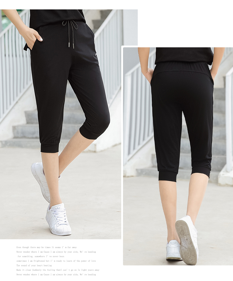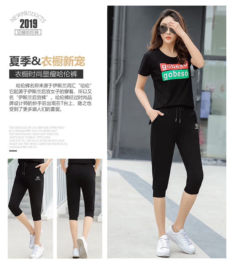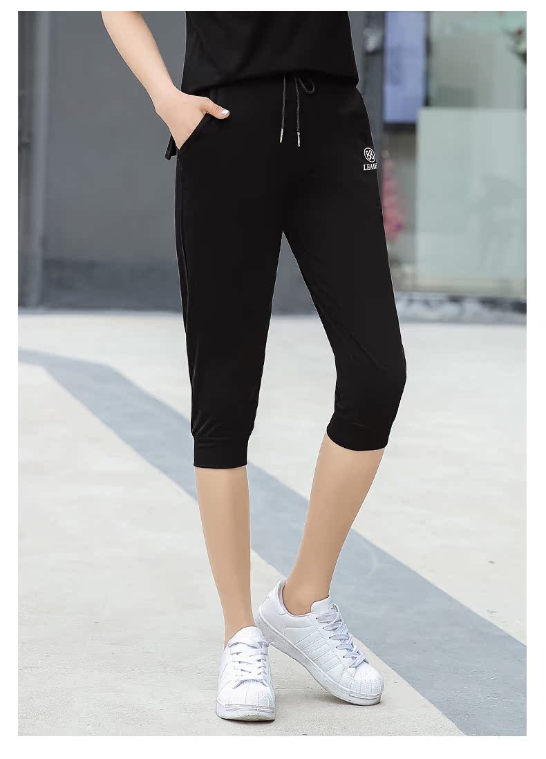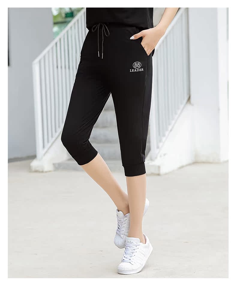 韓版大碼運動褲女新款2019夏裝純棉黑色七分褲小腳休閑褲束腳褲子