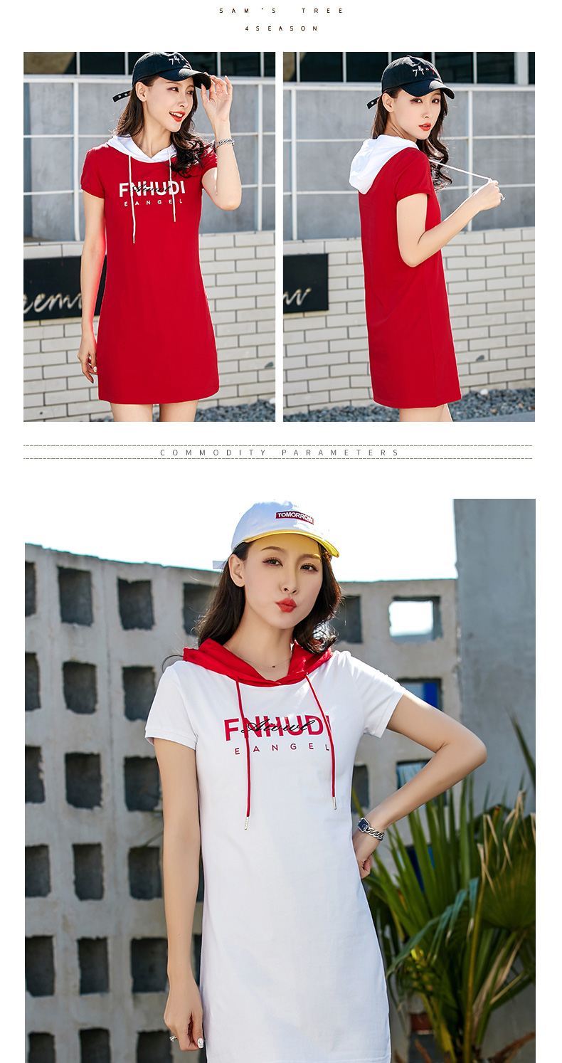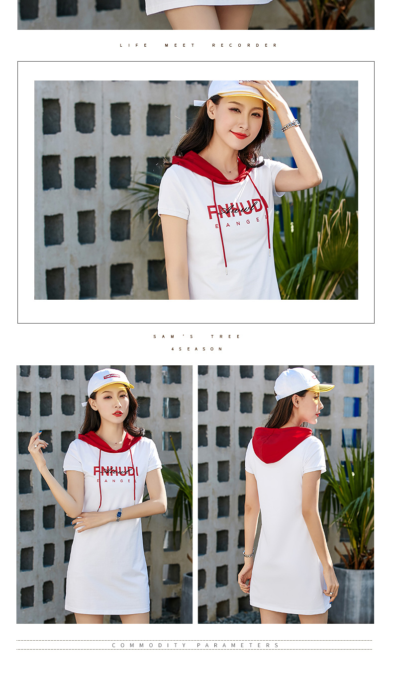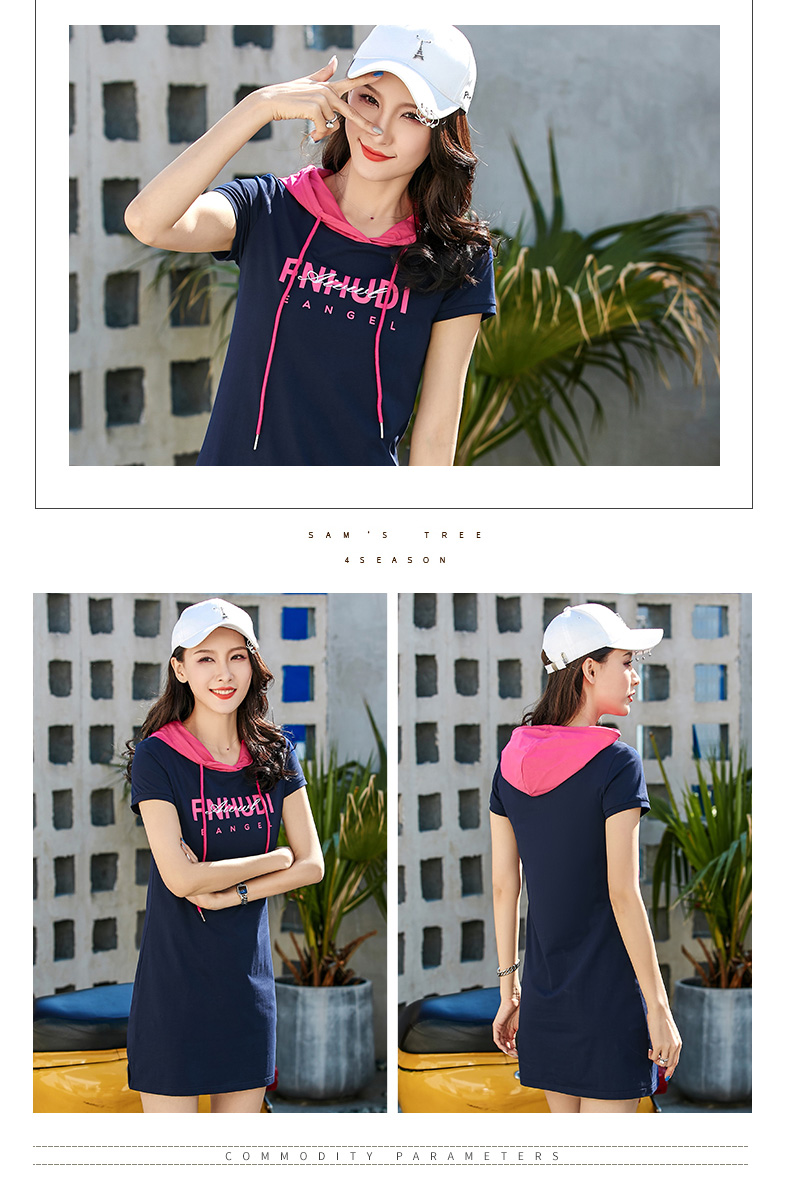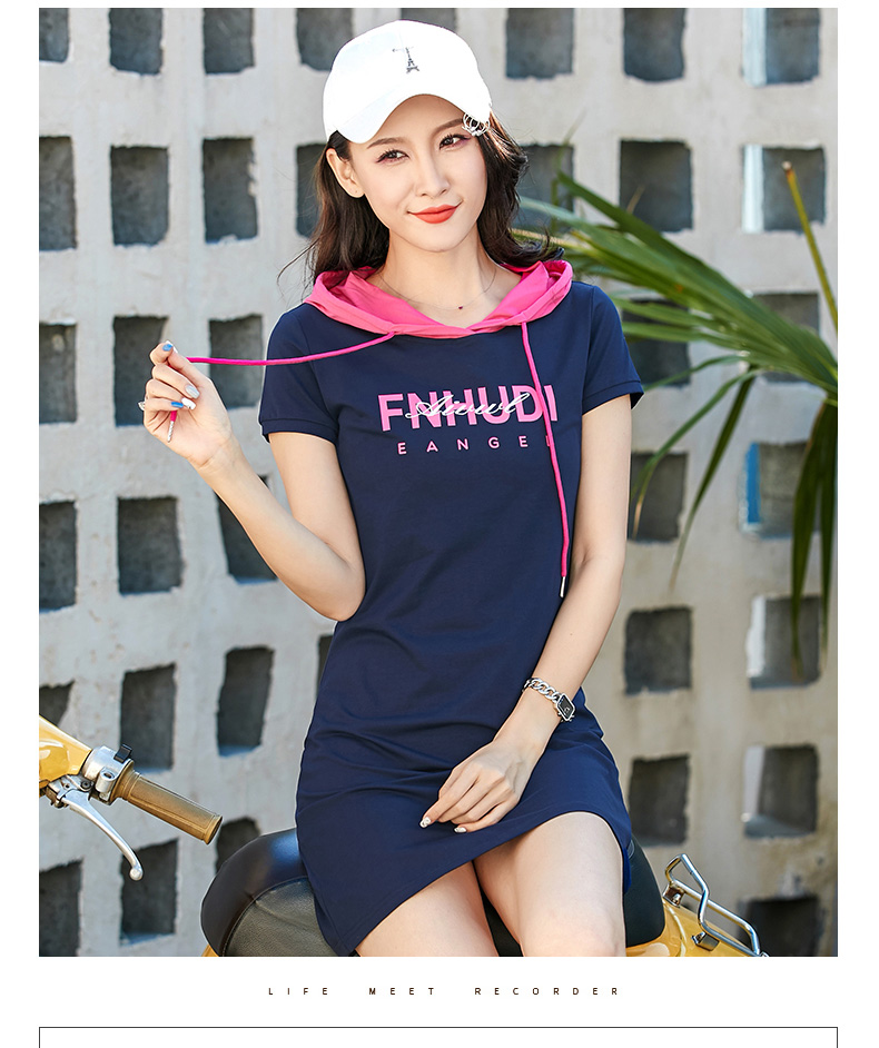 2019新款韓版休閑連帽a字裙大碼顯瘦連衣裙夏裝運動中長款裙子潮