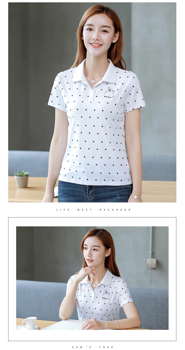 2019韓版新款大碼休閑短袖t恤女夏季運動寬松翻領polo衫體恤上衣