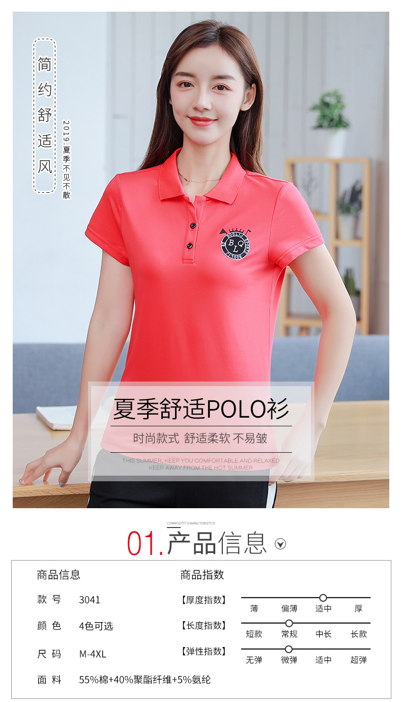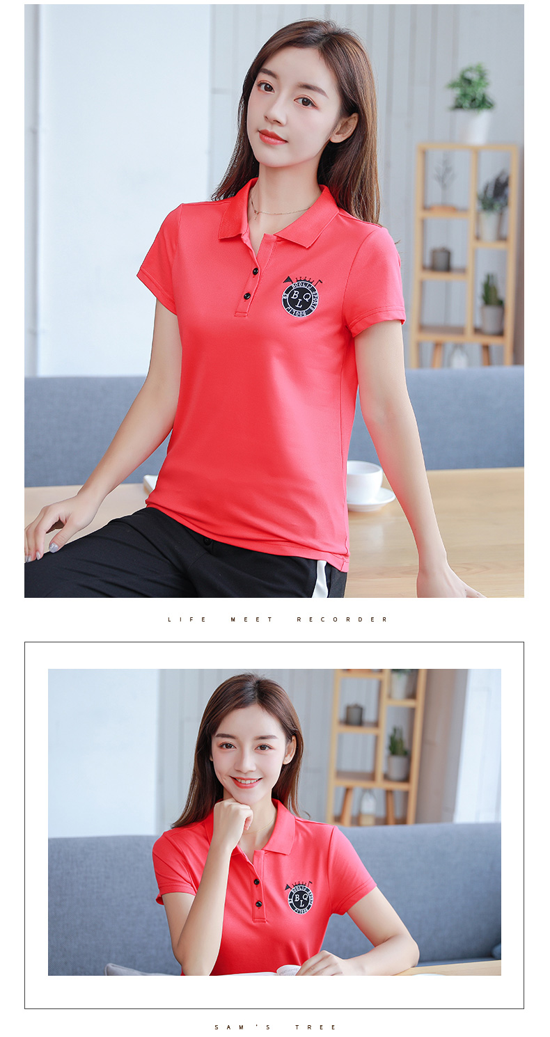 2019新款夏裝純色polo衫短袖翻領T恤女韓版大碼運動上衣有領體恤