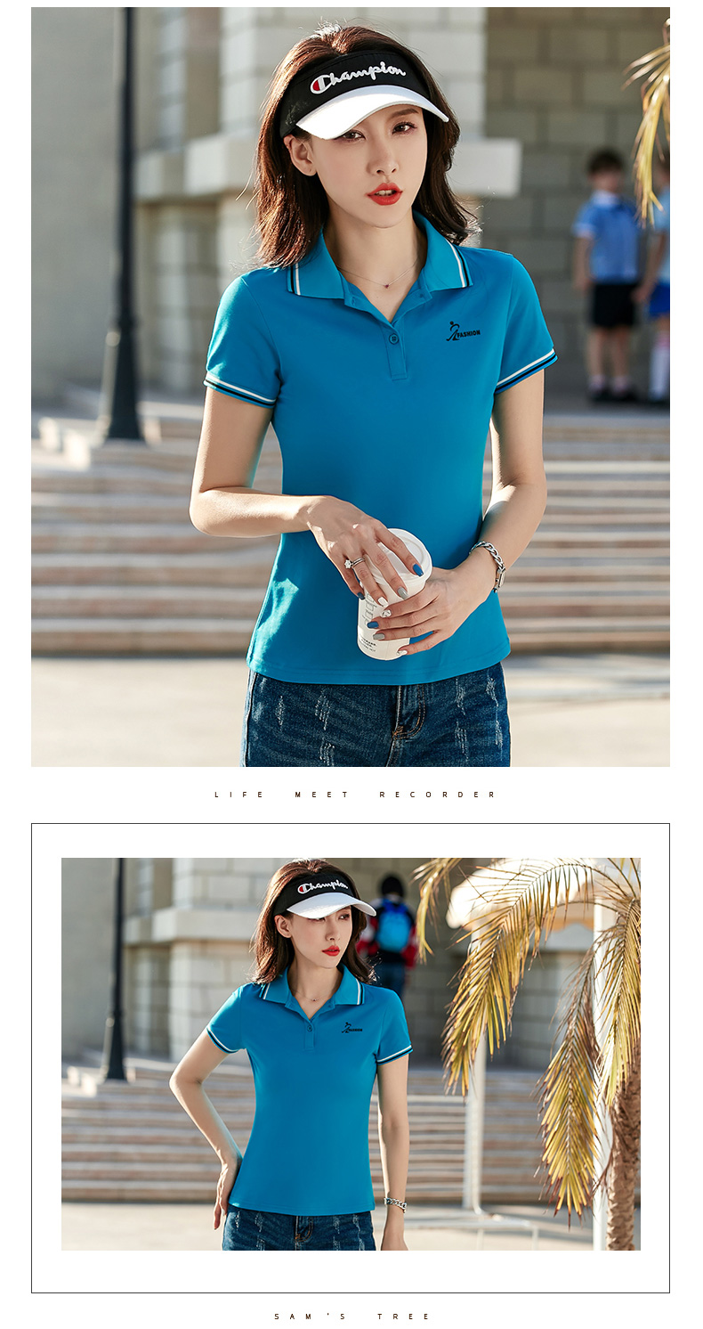2019新款夏裝寬松大碼運動體恤翻領polo衫半袖上衣有領短袖t恤女