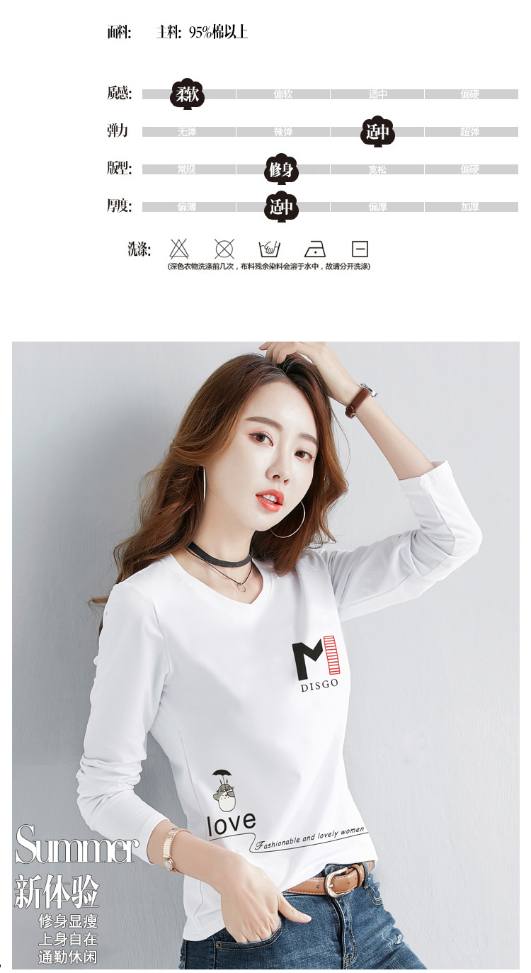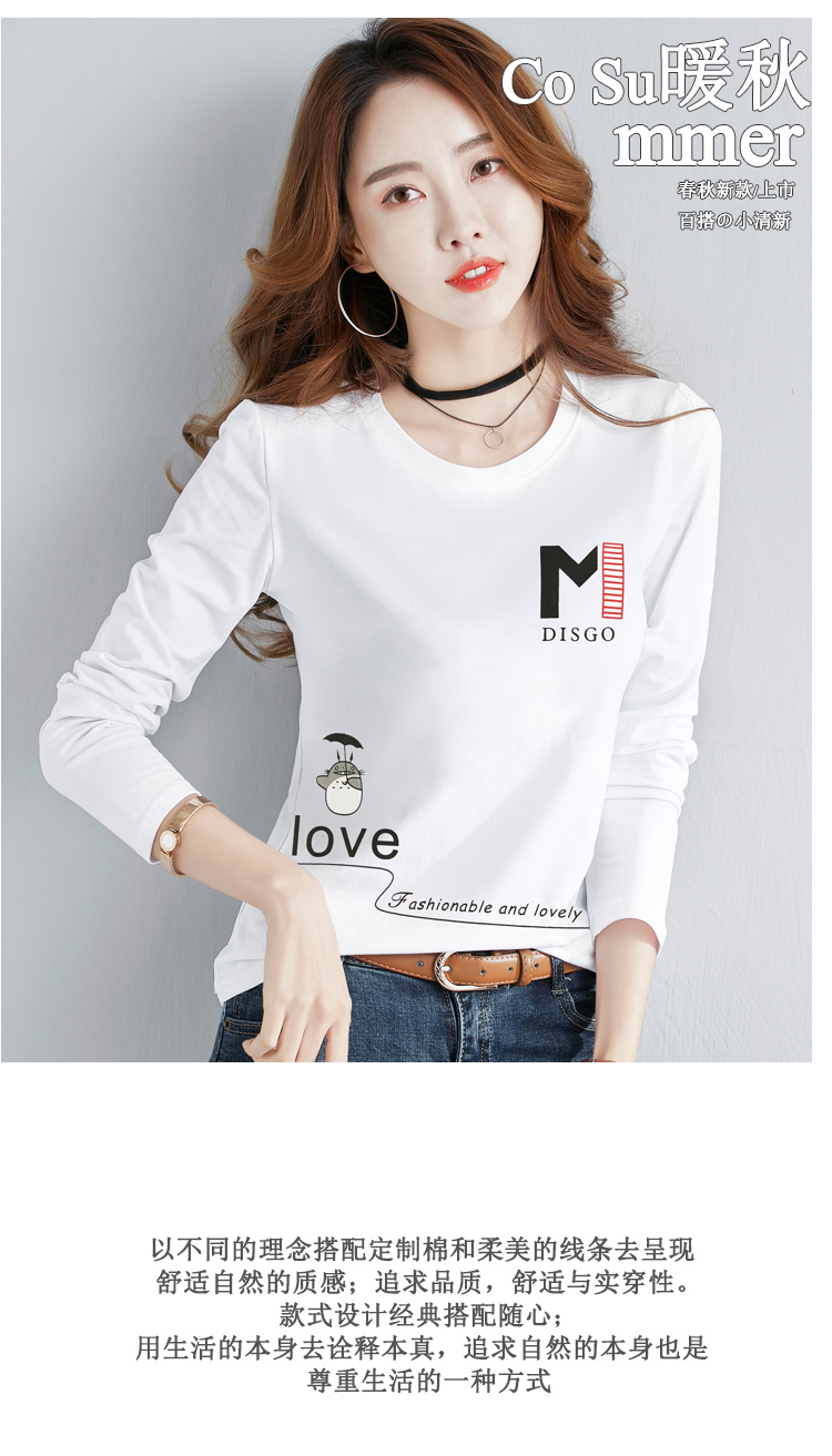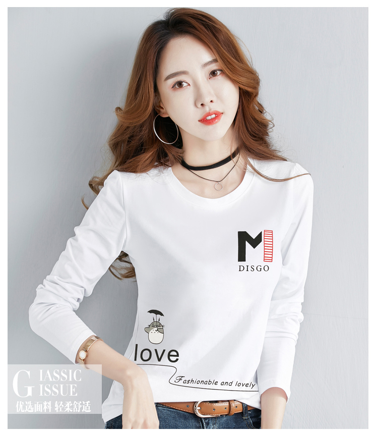 2019春秋新款修身顯瘦打底衫女長袖白色t恤純棉百搭體恤上衣小衫